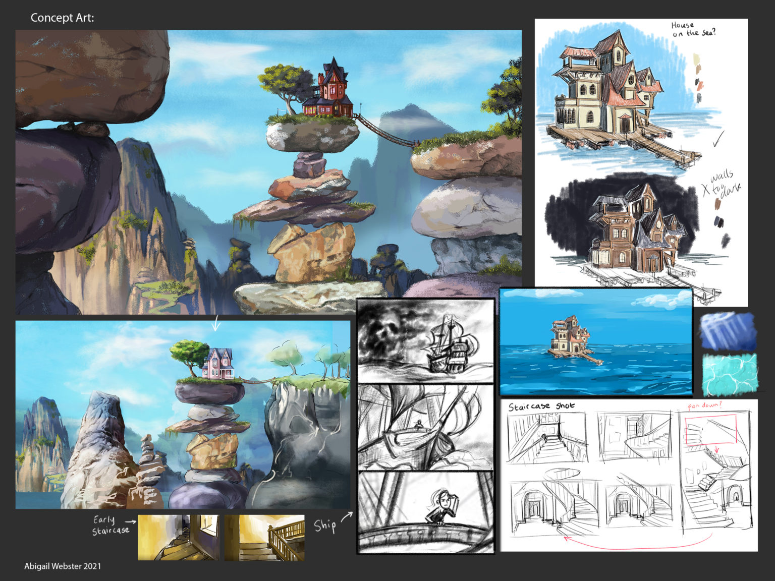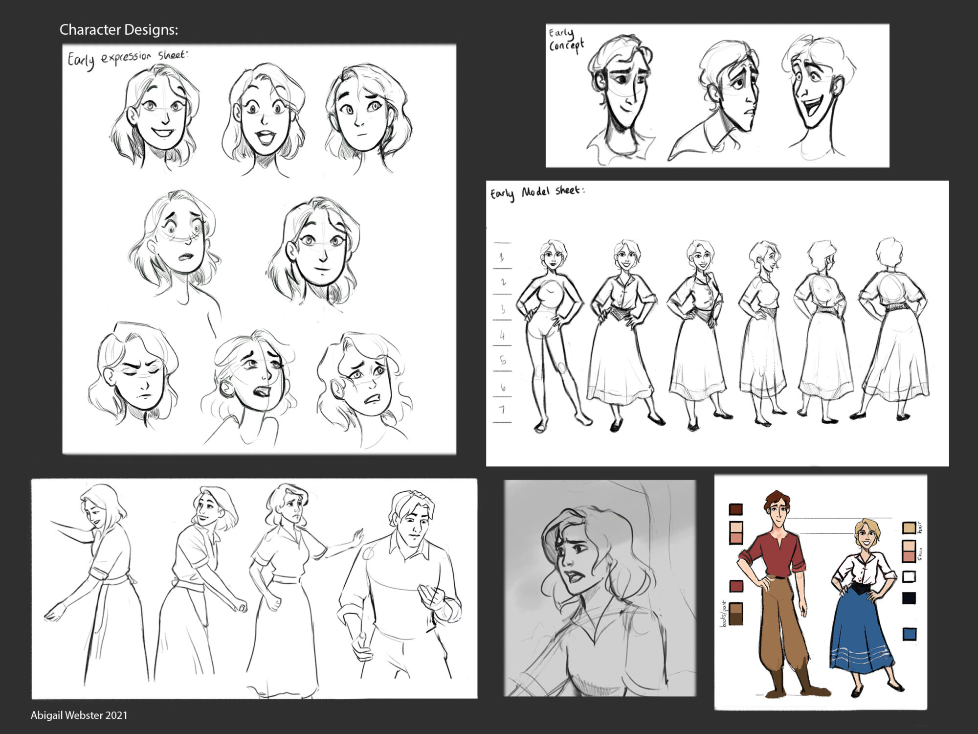 I'm Abbey, I have a keen interest in animation and design! I was excited to direct my own short film, "A Pearl of Great Price," during my fourth year at IADT Dun Laoghaire. As a director, I was involved in all stages of production such as storyboarding, design, animation, ink & paint and comp. Here, I am displaying some of my backgrounds, prop sheets and concept work for the film. As well my showreel for "A Pearl of Great Price."