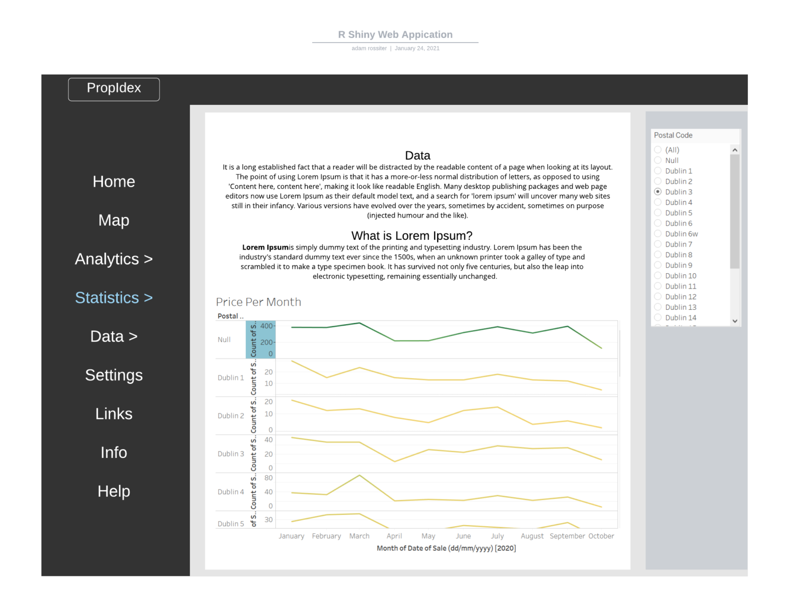 The project is a functioning web application that allows users to view the price of property sold in Dublin. The app contains a map of Dublin categorised by postal code allowing users to filter on different housing related variables and compare the prices across different areas.
