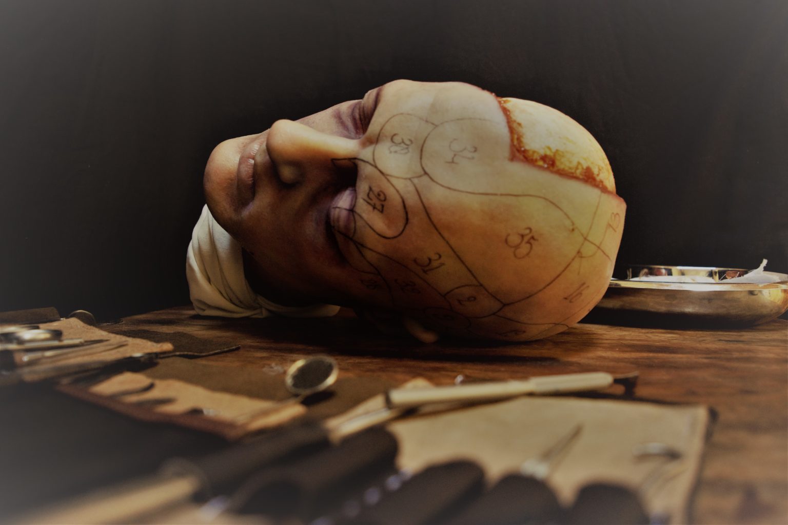 The man is beheaded publicly and his head is taken for examination by a Phrenologist, a fellow anatomist colleague and students surgeons. The public gather in the surgical theatre to spectate while a section of the man's skull is removed and the phrenologist and surgeons explain what they think they see.