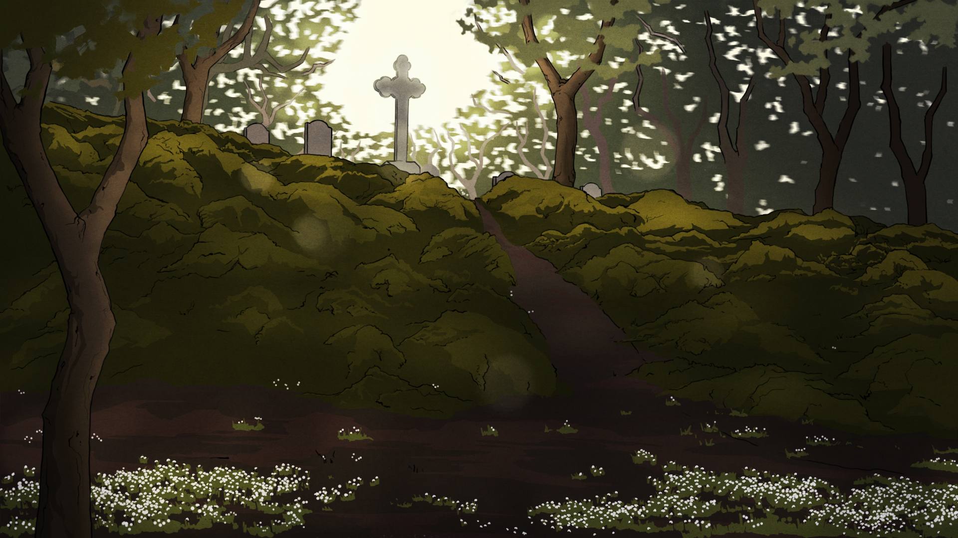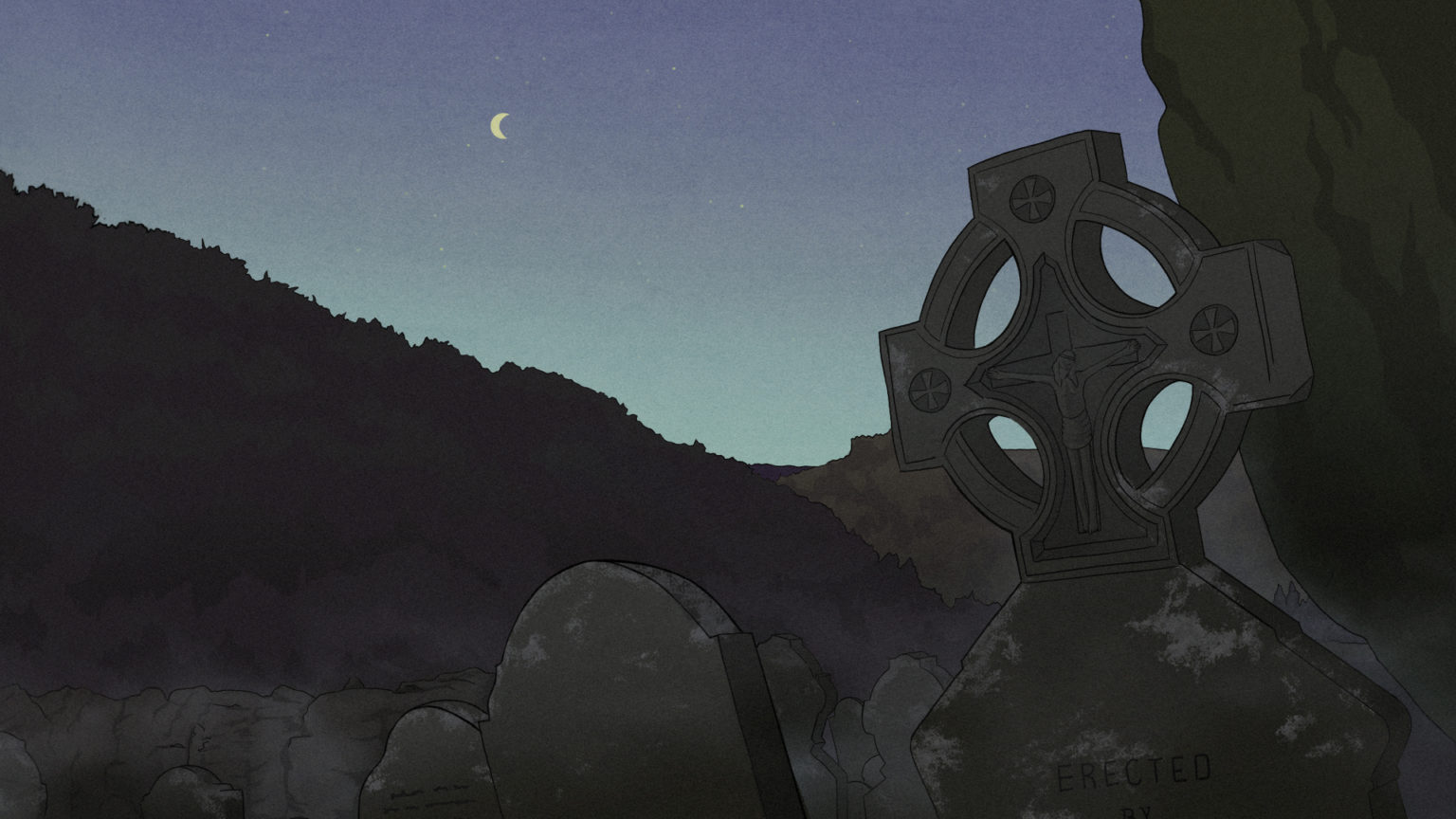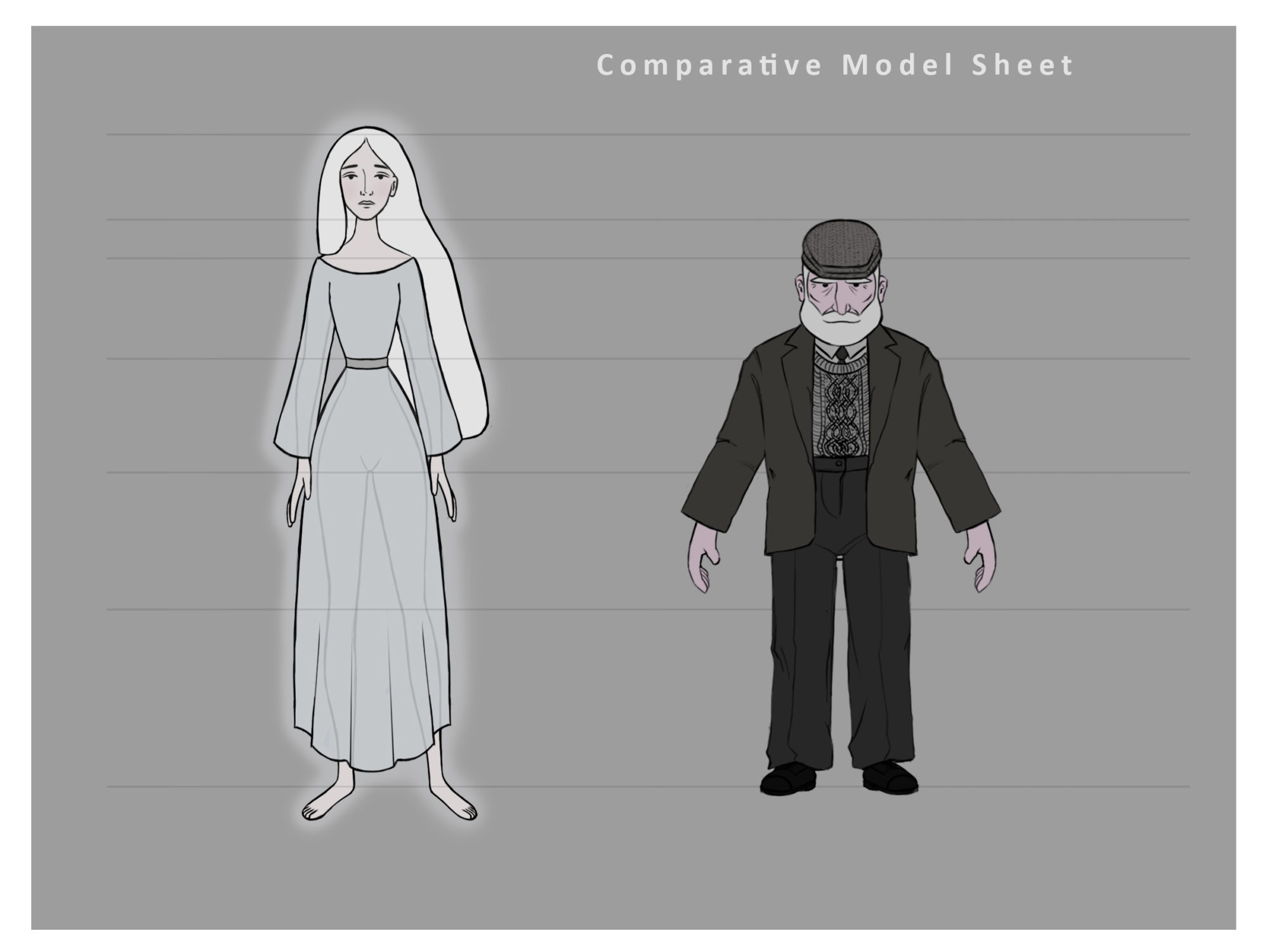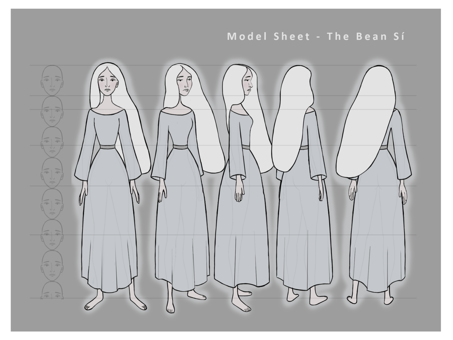 In contrast to many popular depictions of the Bean Sí presenting an evil spirit bringing death to the unlucky souls who cross her path, I wanted to create a more sympathetic telling of her story, truer to the original folk tale. The ghostly woman's endless wandering of the Irish countryside is interrupted by her compulsion to warn an old man of his impending death, connected by an eternal bond to his family. Her comforting presence helps him come to terms with his unalterable fate and brings him peace in his final moments - while she remains suspended in her timeless reality.