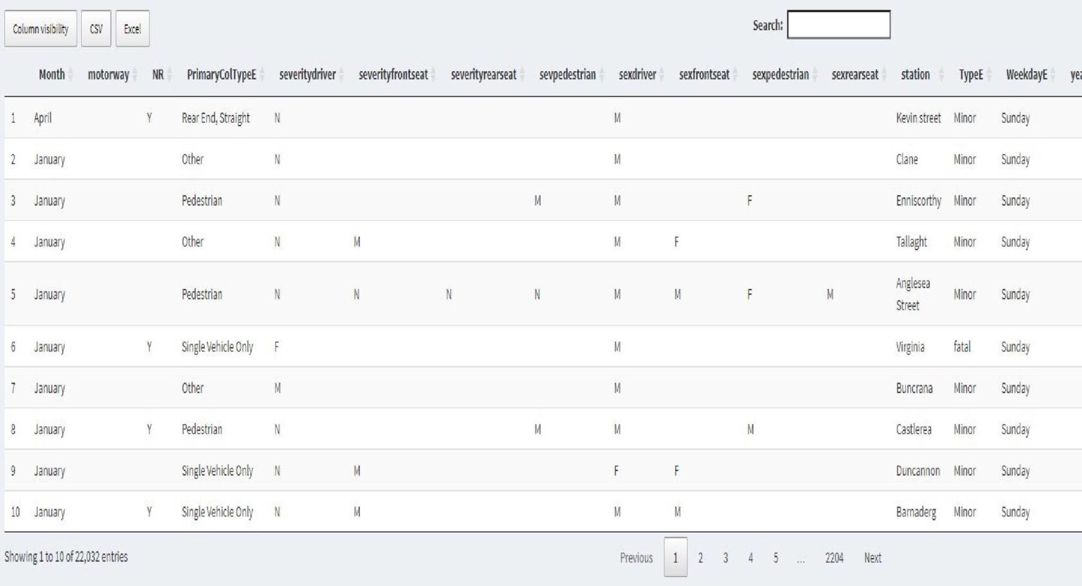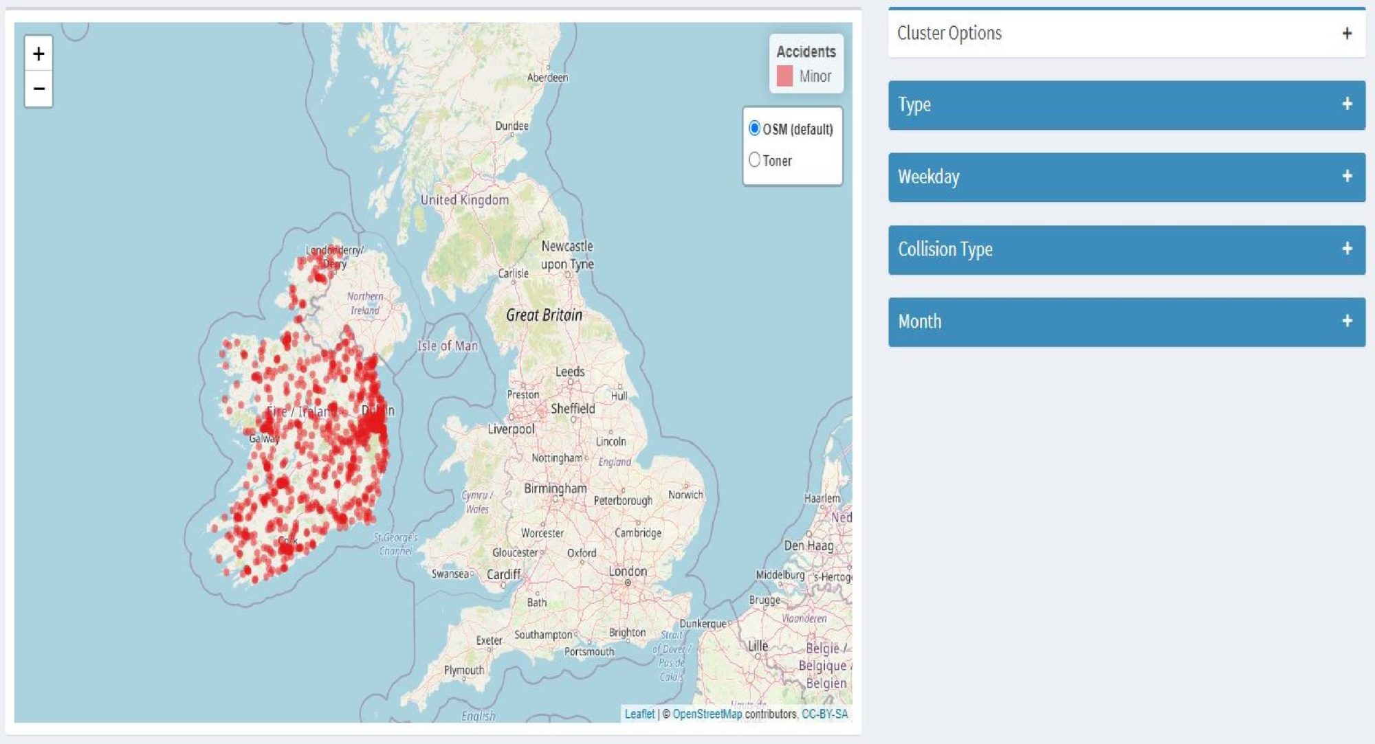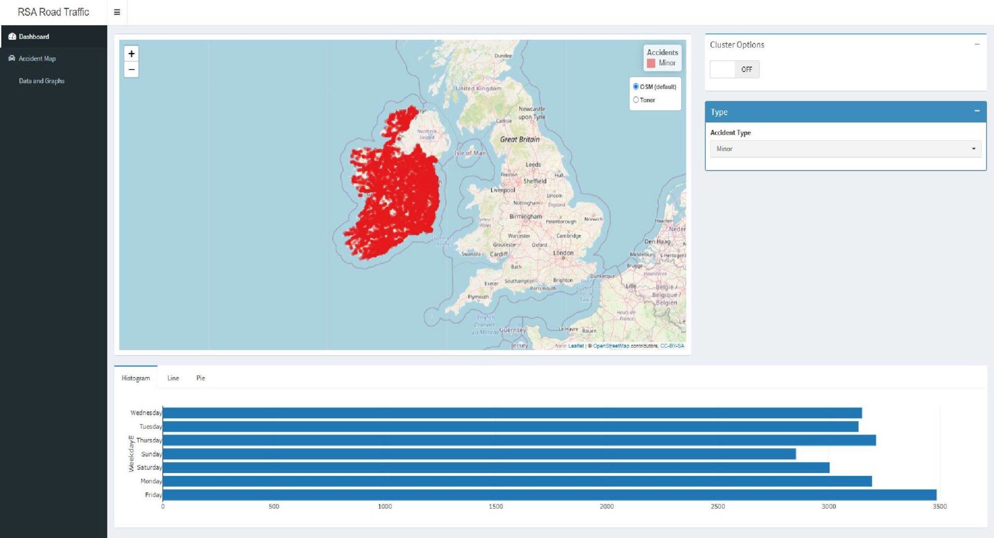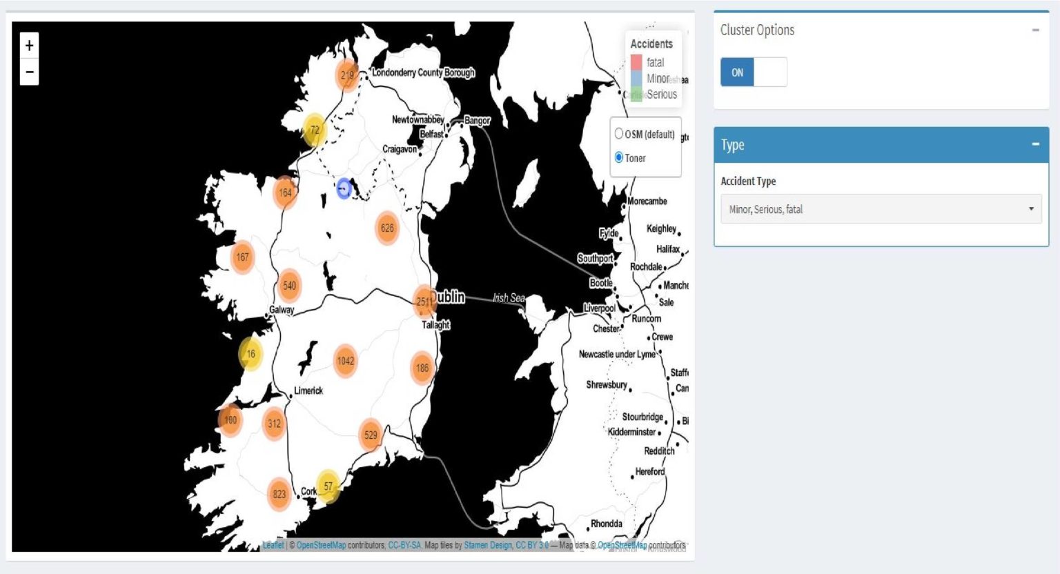 This application is an interactive data visualization web application created using the software environment R to visualize data using interactive graphics. Road accident visualisation was chosen as research showed that they are a major cause of deaths and injuries in Ireland. The aim of this work was to produce an application which would inform users of the characteristics of road traffic accidents and also to promote safer driving.