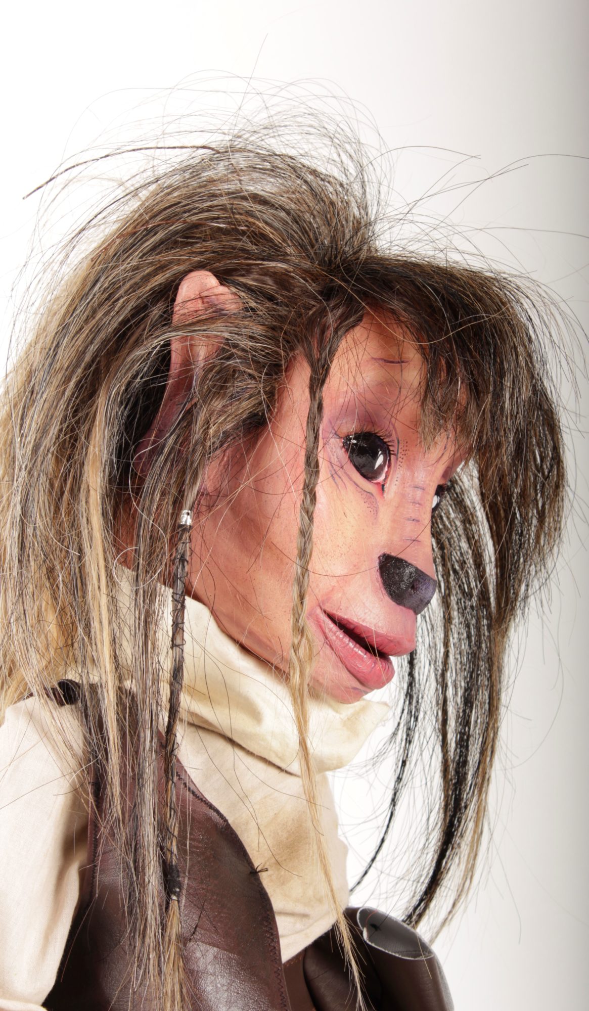 This project was definitely a huge learning curve, learning lots of different skills. The best skill I've learned this year was how to make a wig. It is honestly something I never would have thought I would be able to do, but I found it to be quite therapeutic in a strange way. There was something about just sitting adding horse hair to a lace wig cap using a ventilation hook and a method similar to those used in crocheting. It took me a full week to create this wig along with giving it a hair cut and styling it with braids and dreadlocks. I used horse hair from 4 different coloured horses to create a varied look. It is a skill that I am glad to have learned and will come in handy in the future if I end up making a career out of puppet making.