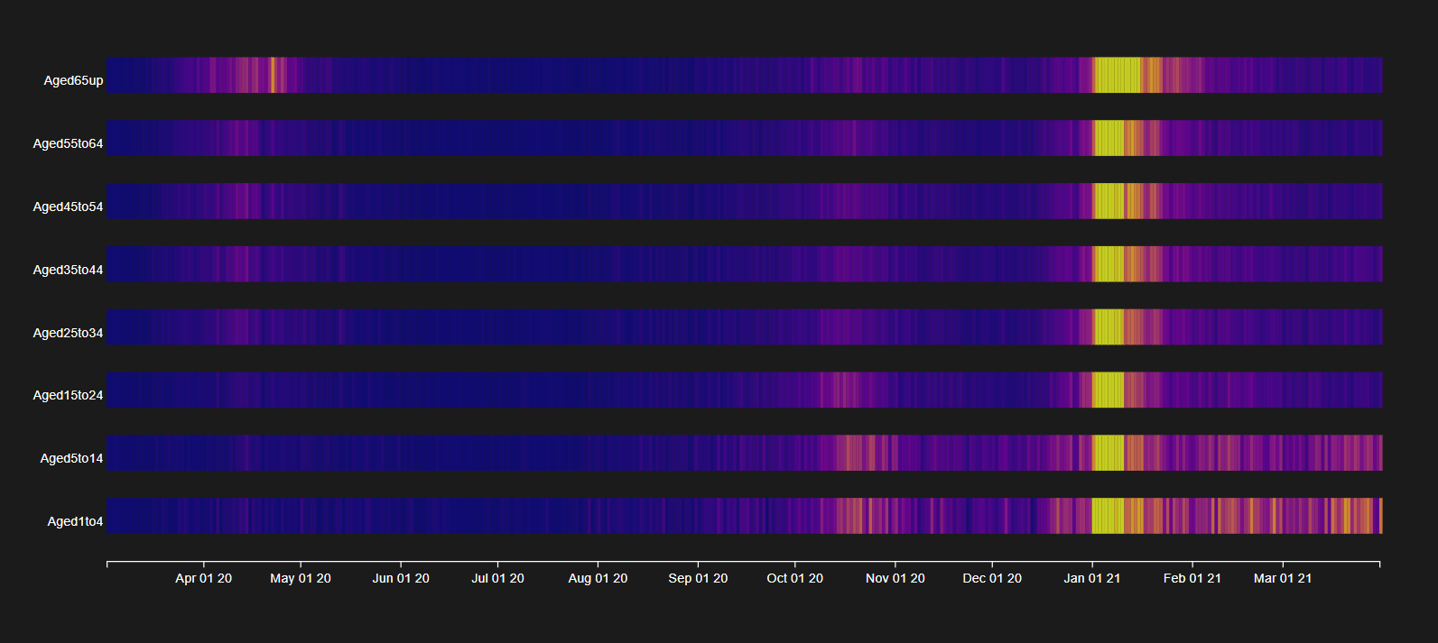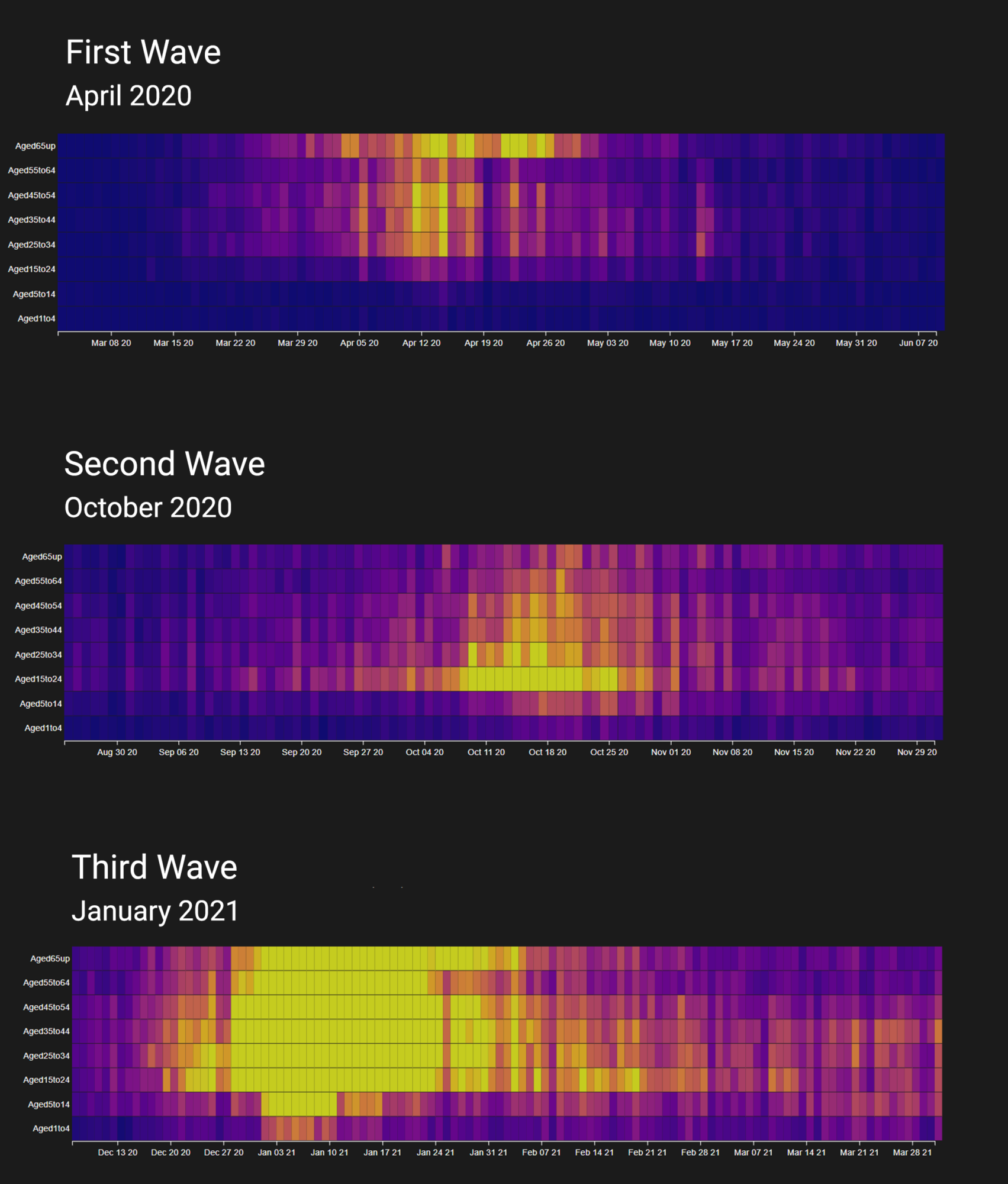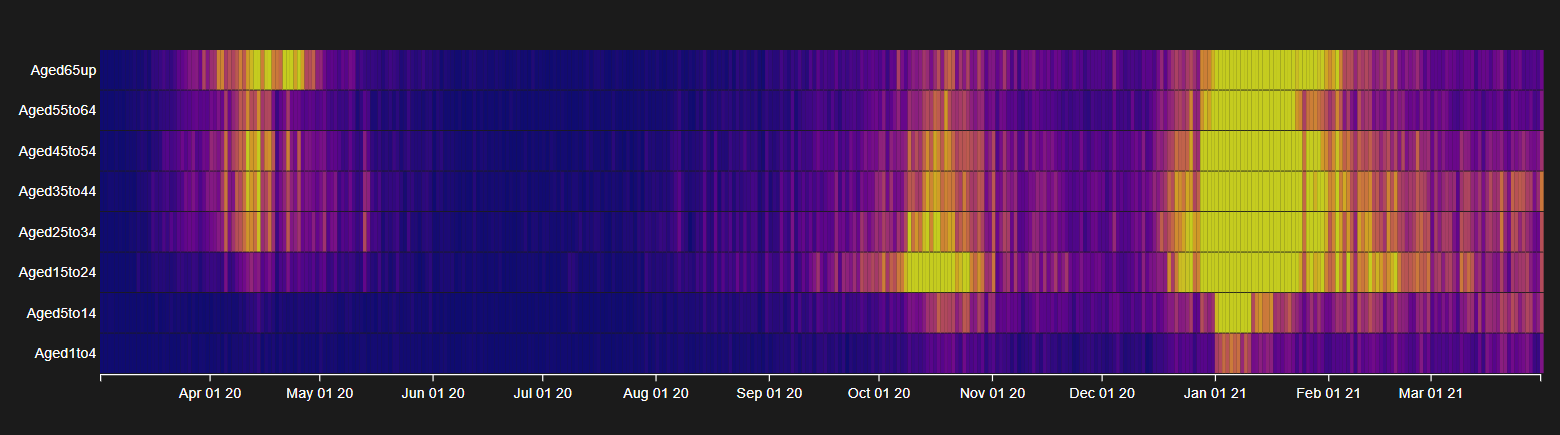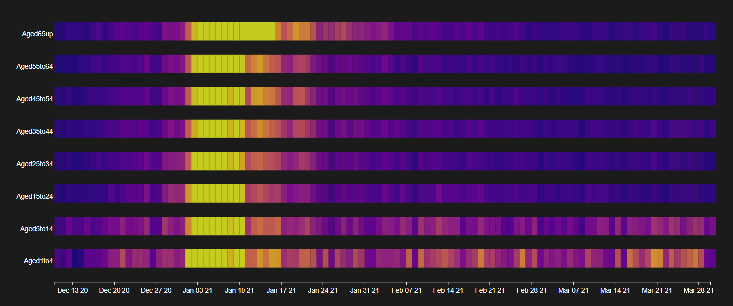 This project is an interactive visualisation of the Irish Covid-19 case numbers from March 2020 to March 2021. It allows users to look back on the year and see how the pandemic affected the population of Ireland. An application such as this could prove beneficial in the analysis of public health data, as well as aid in educating the public with reliable information.