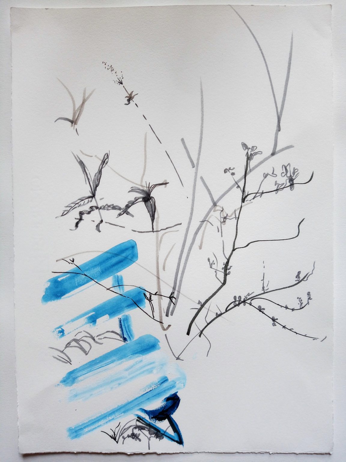 Jane Ellis is a visual artist with a grounding in print making. She works primarily with woodblock print, using observational drawing to develop her imagery. Jane often uses natural objects and cut out woodblock pieces as printing tools. Her work methodology also involves processes of exploration with different media such as inks, acrylics, watercolours and tonal pens. She prefers to work plein air, particularly in the Wicklow mountains, as she finds the experience of being outdoors invigorating. Jane has exhibited at IADT group shows such as Making the Intangible Tangible (United Artists Club, 2019) and High Heart (Pallas Projects/Studios, 2021).