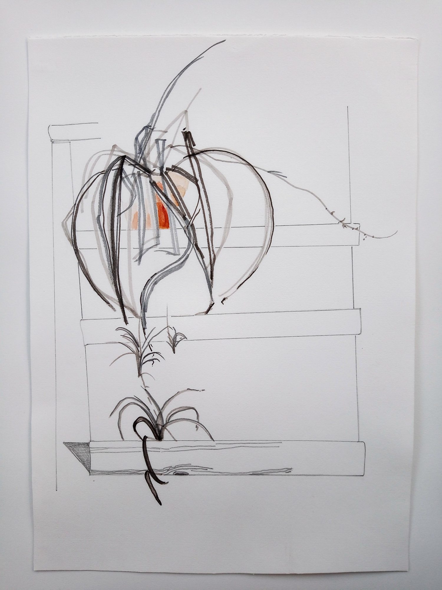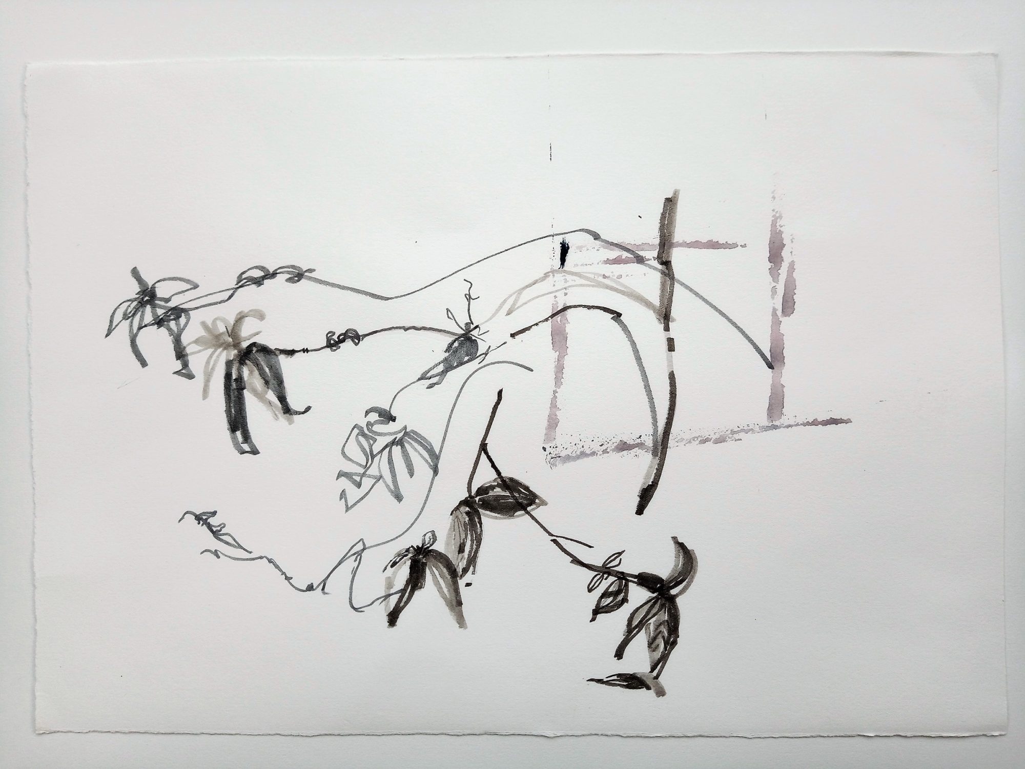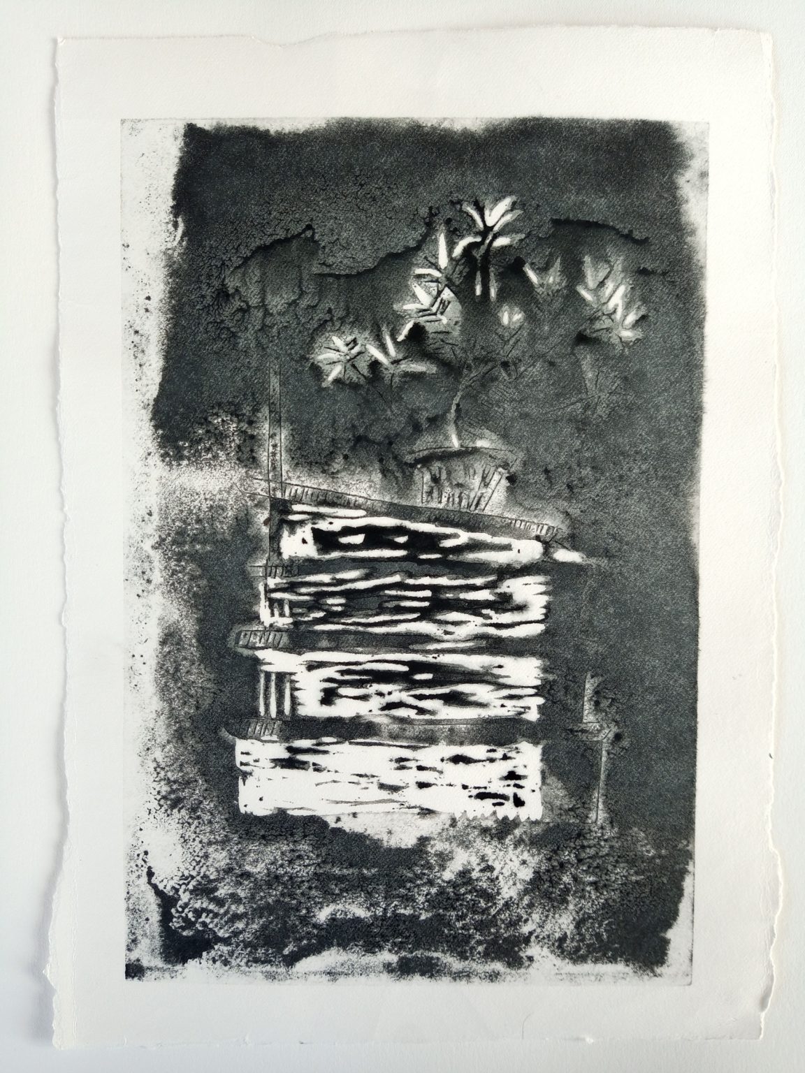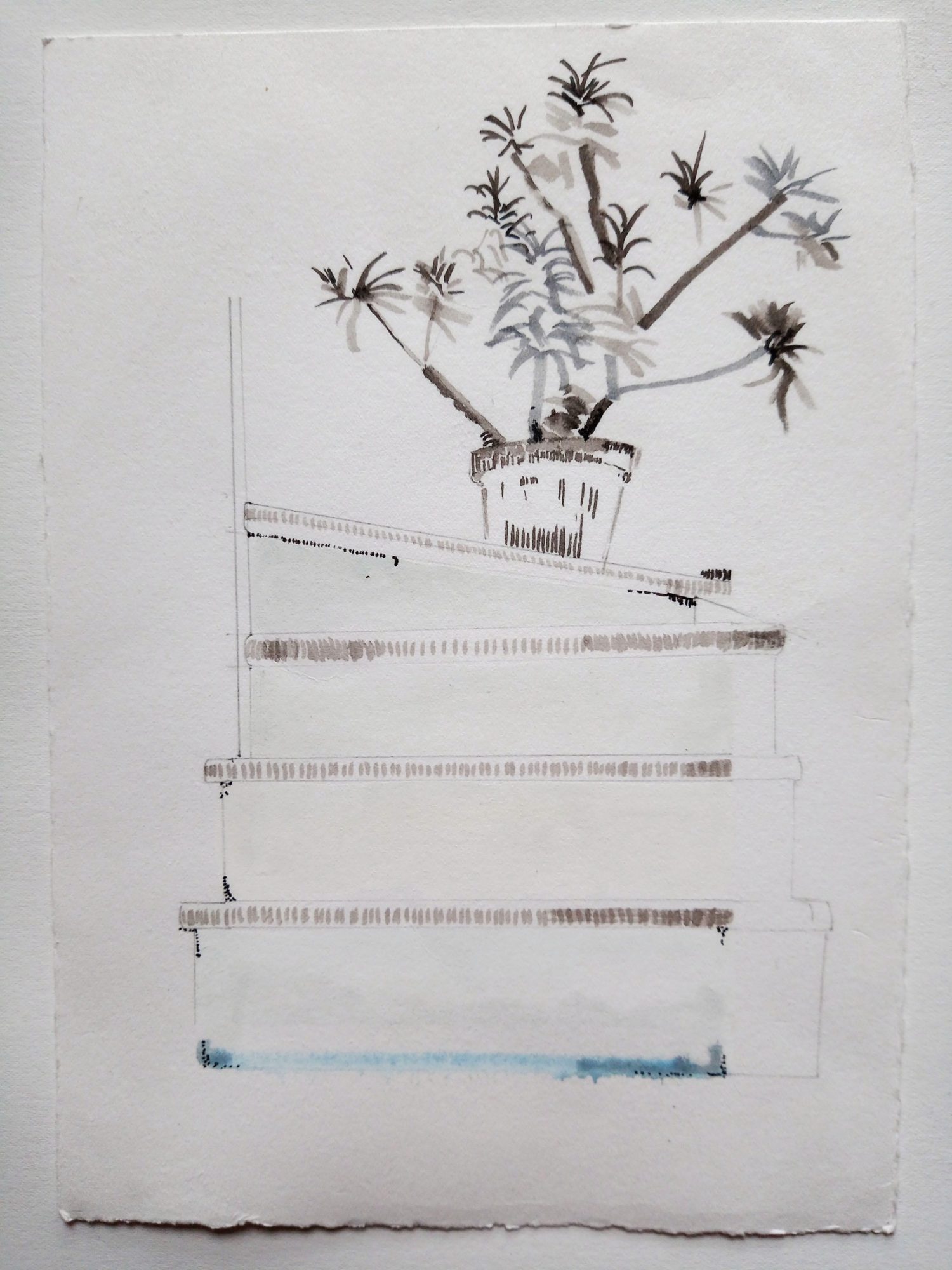 My work focuses on the regeneration processes in the natural world, the emergence of new life in flora and fauna. These propagation cycles intrigue me, and I am also fascinated by the effect of seasonal changes in light intensity. My research for this project has involved continuous observational studies, in domestic and outdoor spaces. When choosing my subjects, I am often drawn to apparently banal spaces or structures, which might otherwise be overlooked. I try to use the simplicity of line to investigate the experience of depth. In my drawings and prints, intense areas of detail tend to compete with areas of deliberate emptiness, aiming to unbalance the viewer. Through the suggestion of a void, I seek to approach apparently mundane spaces with a conscious freshness of perspective, combining precisely painted images with the sense of openness produced by woodblock printing.
