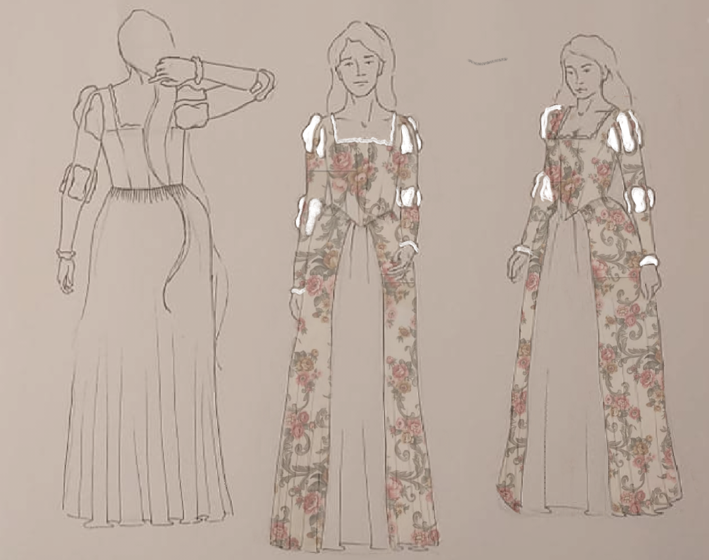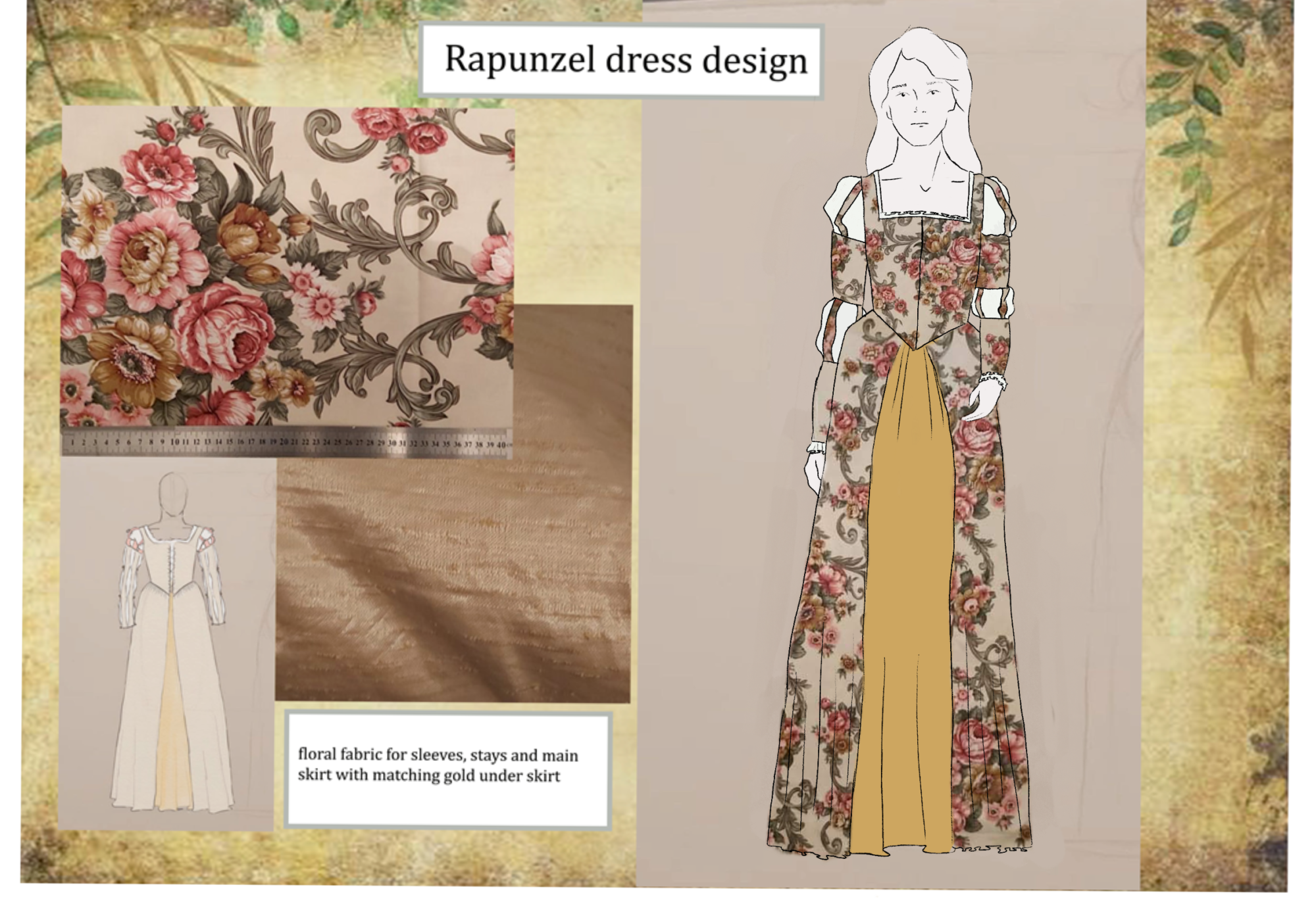 For my final major project i decided to base my designs on a film script that was a close adaption of the the Brothers Grimm Rapunzel. I based my designs around the time that the story would have originally been written, the 1500. While reading the script I found myself relating to the life of Rapunzel and her experiences, I drew a comparison to my own life in the current state of the country during 2020. Looking at the themes of fearing the outside world and the feeling of isolation . I then decided to based this concept for a film during a fictional pandemic in the 16th century. The story takes place over 18 years and features five main characters.