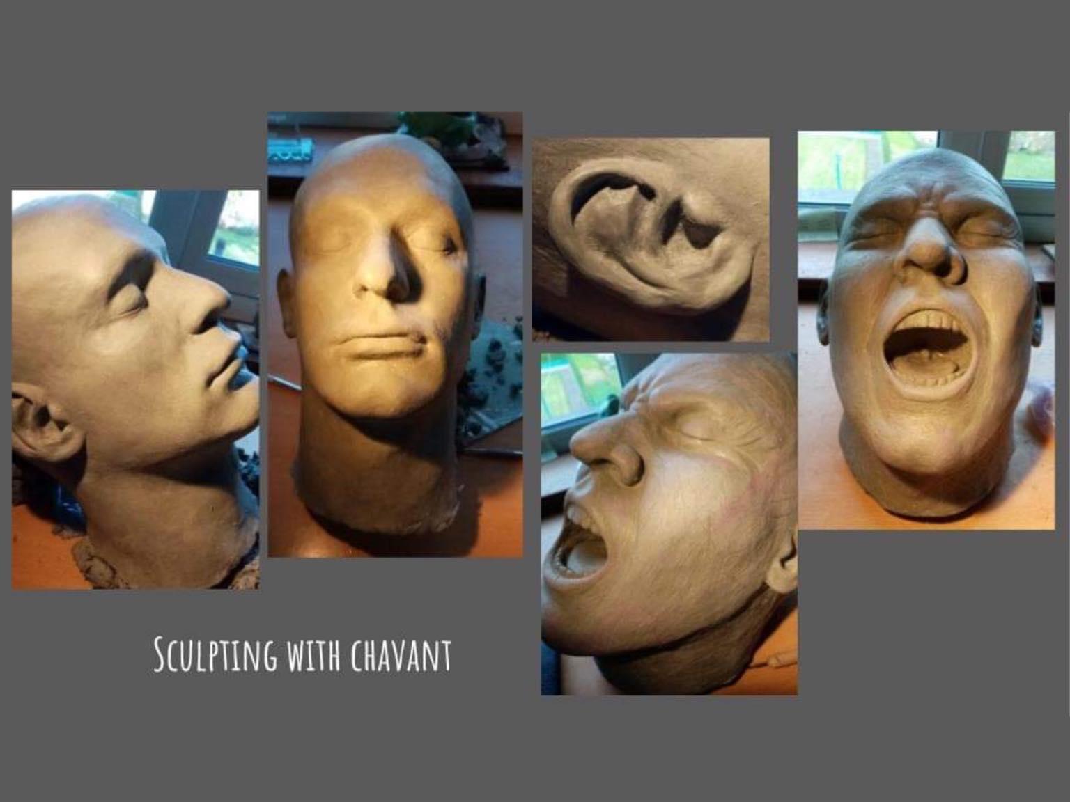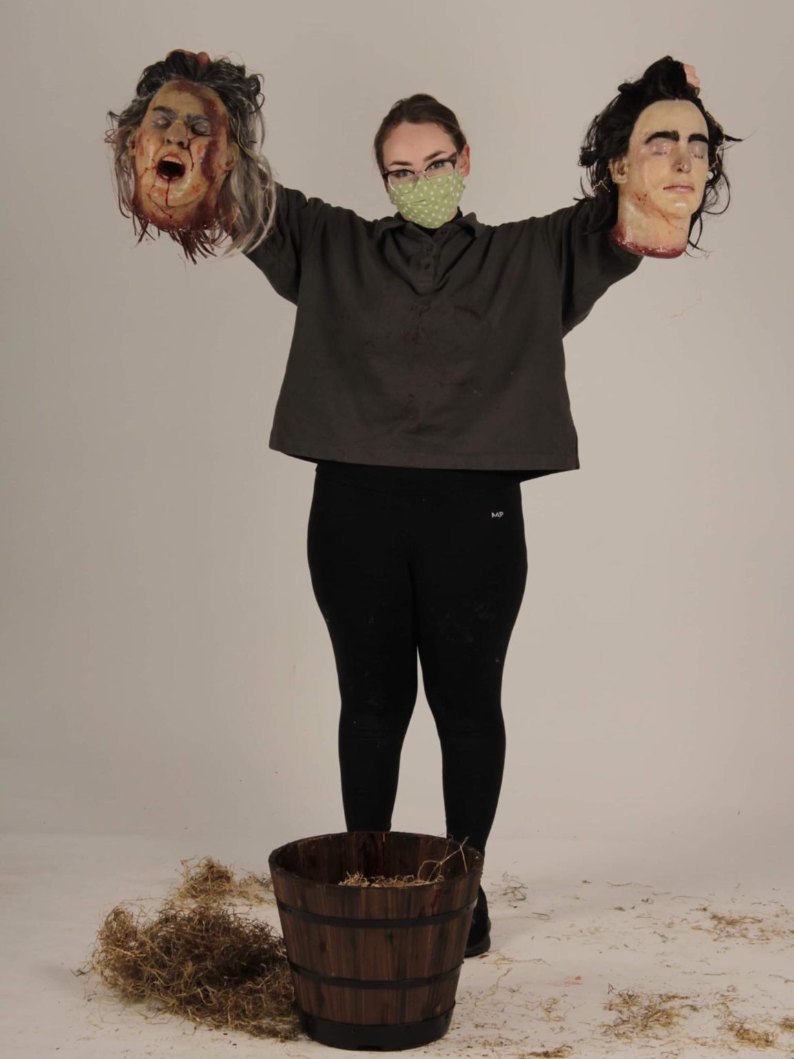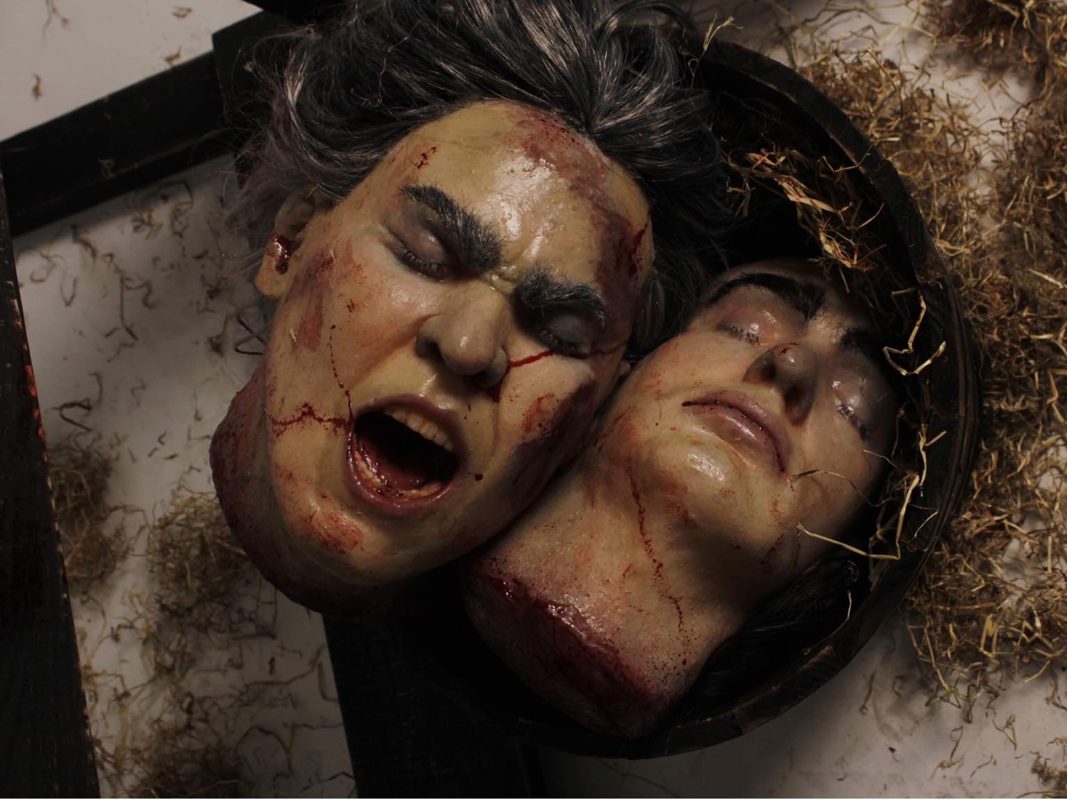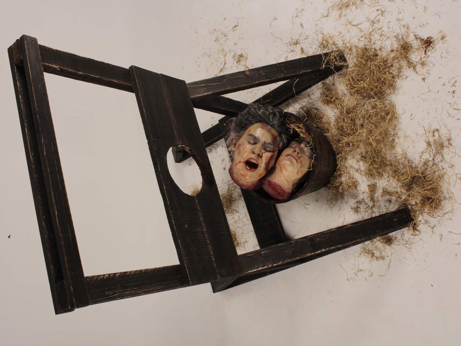 My final project was about producing two silicone head props to be used in a death scene of a tv show set during the French Revolution. The heads were accompanied by a handcrafted guillotine. This project involved lifecasting, sculpting in chavant, molding, casting, and painting in silicone. The finishing touches were hair punching, wig attaching, and fake blood.