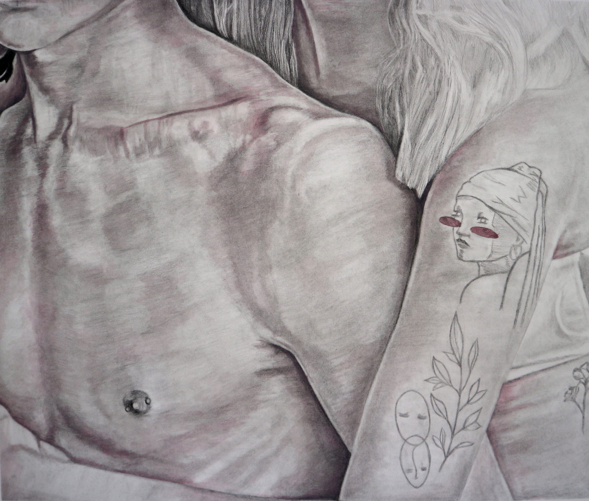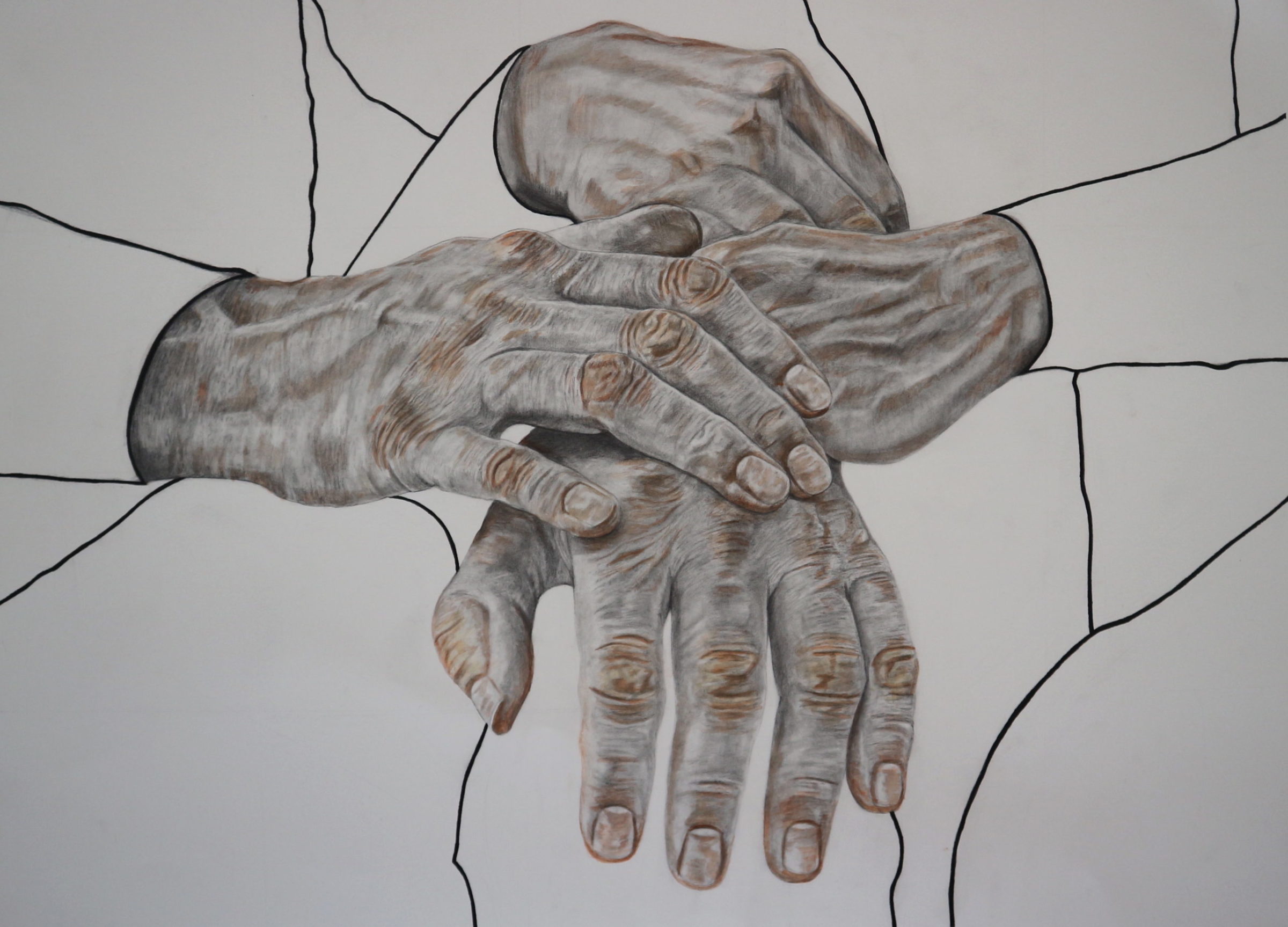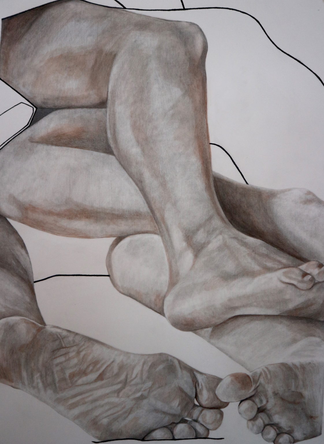 This series of drawings explores moments of physical touch, in the everyday. Each image depicts a moment of fellowship, with a particular focus on points of contact person to person. The purpose of Katie’s work is to exhibit simple acts of touch as an important and inherent form of human connection and communication.