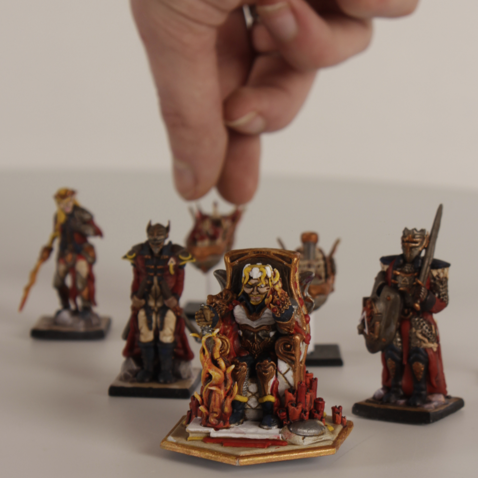 Throughout the project I designed, sculpted/modeled and printed 6 unique characters, 6 buildings and 2 hero units. I also practiced hard edge modelling creating modular tile designs gaining a high competency in 3D printing and many digital programs.