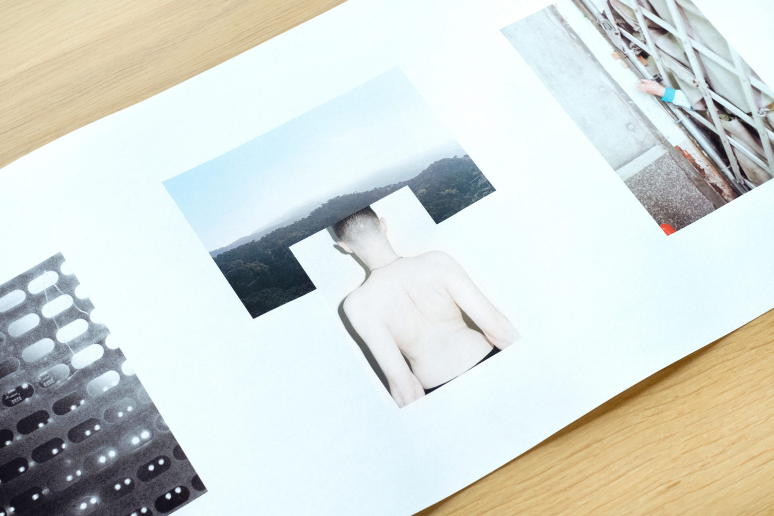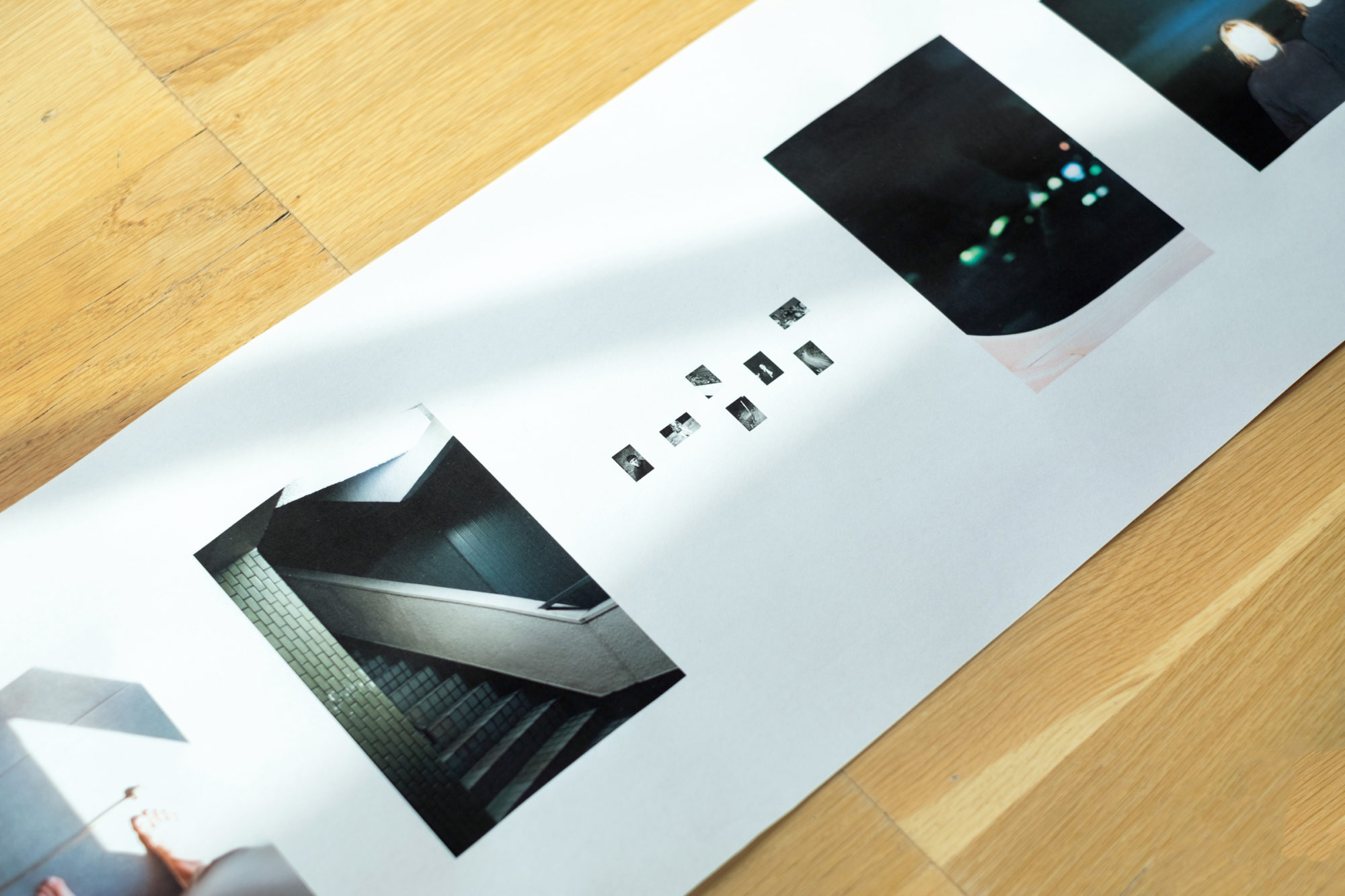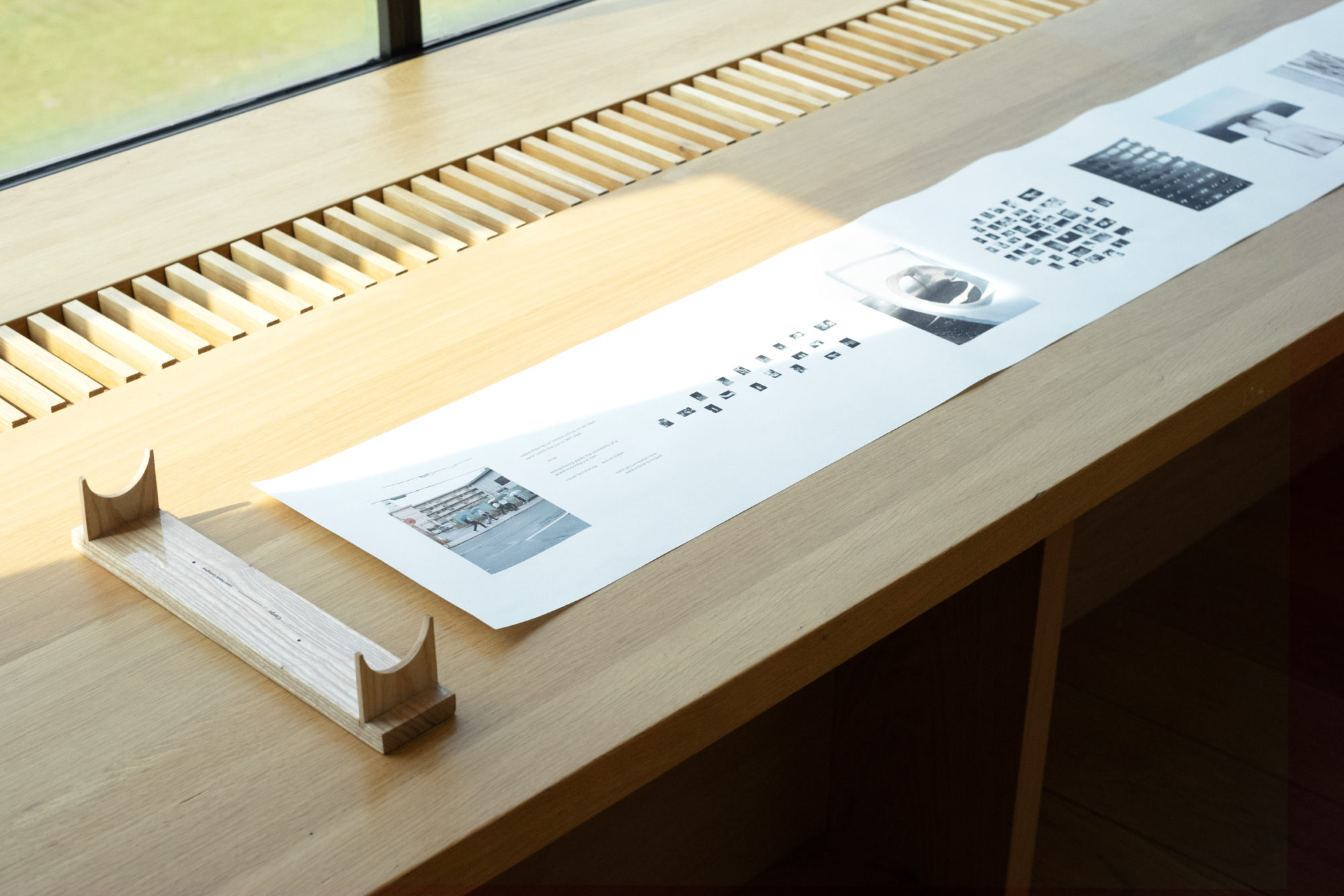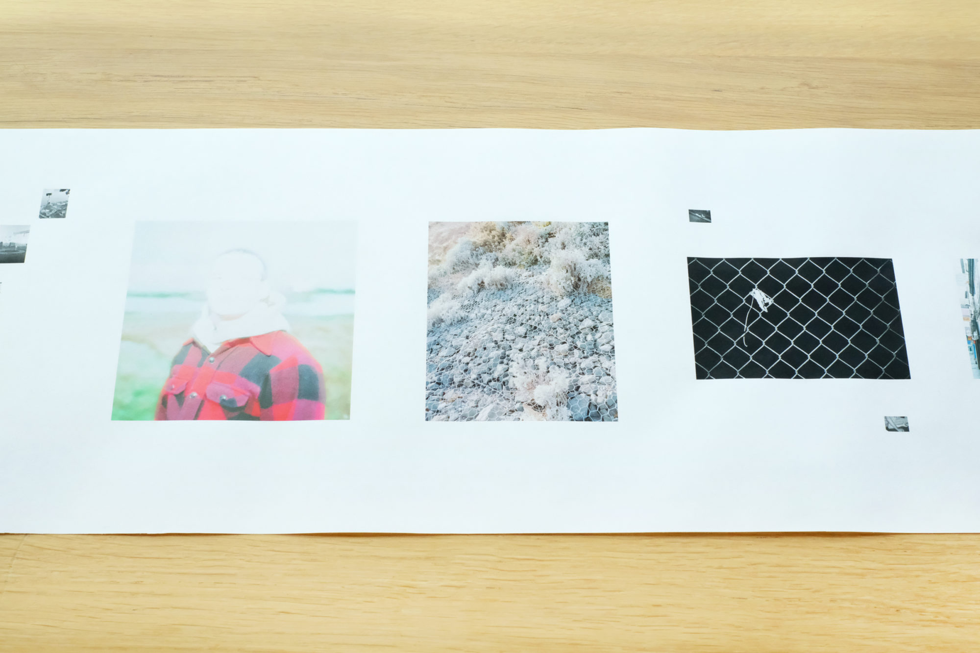 ‘Cargo’ acknowledges the compression of time in the virtual strati by utilising the scroll as a form to engage with the spread of time and visualise this erosion by means of layered imagery. It’s black and white photographs express themselves as reference to an outside world. Yet, they are inherently fragments of psychological data that present no apparent coherence beyond a reflection on real time and space as it unfolds in conjunction with the present form of the cloud.