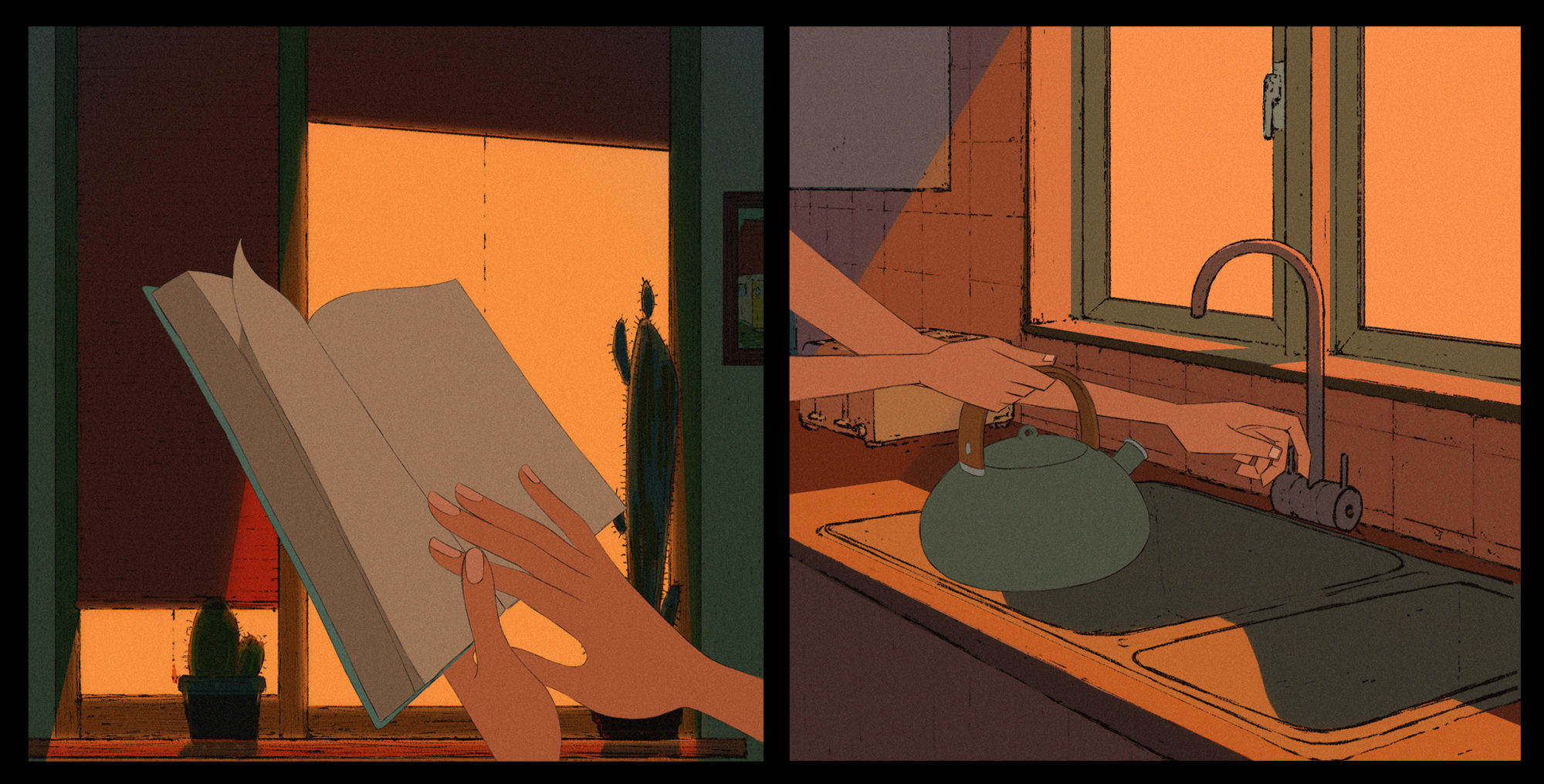 Here is a selection of shots and development work from our animated short 'Small Hours', a graduation film I co-directed with Christian Spurling, who designed the layouts and backgrounds while I was the lead animator and character designer. The film focuses on two people getting increasingly lost in a train of thought, transitioning from one memory to another. I’ll also be featuring my 2D character and effects animation showreels as well as the teaser for our film.