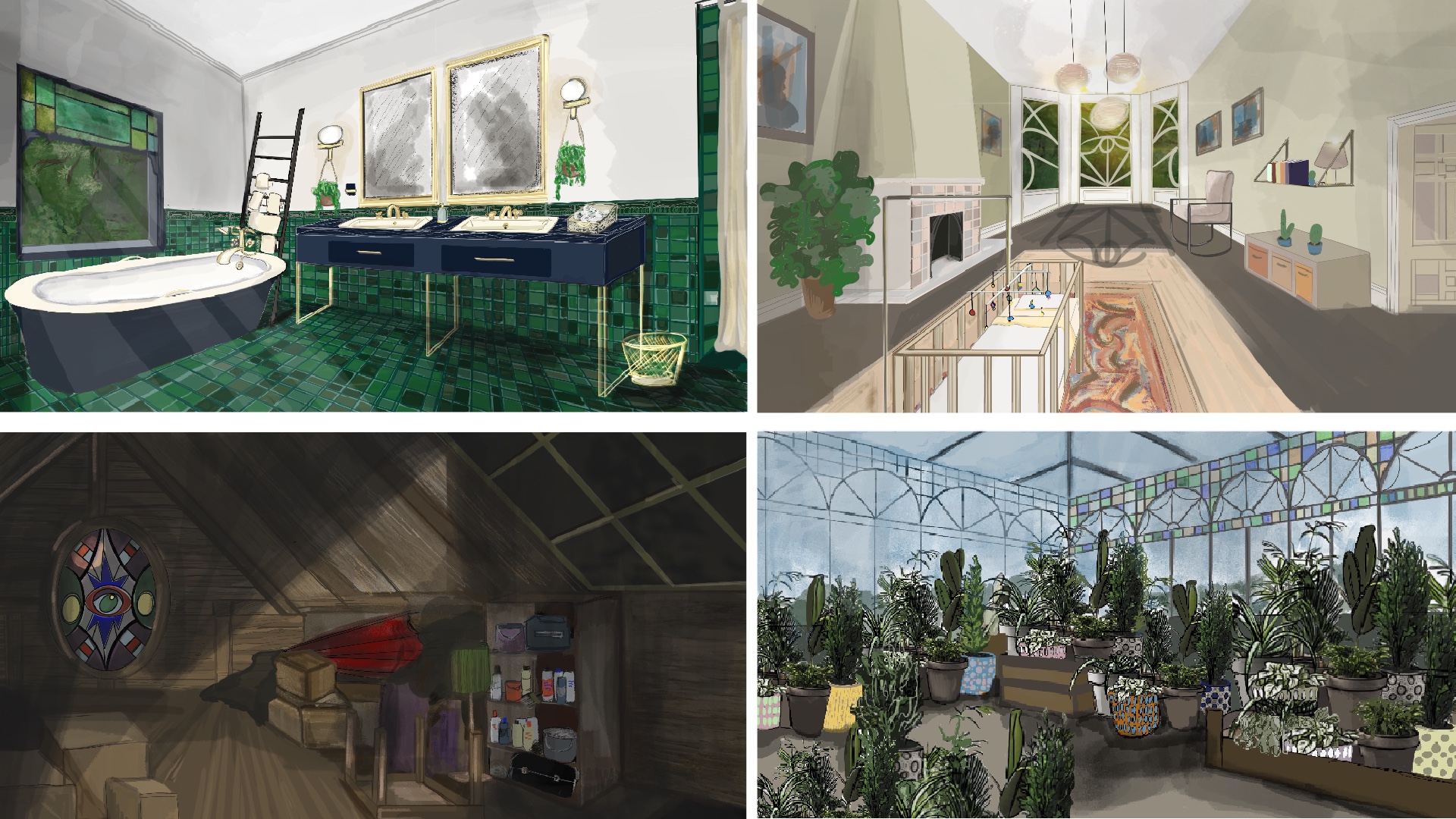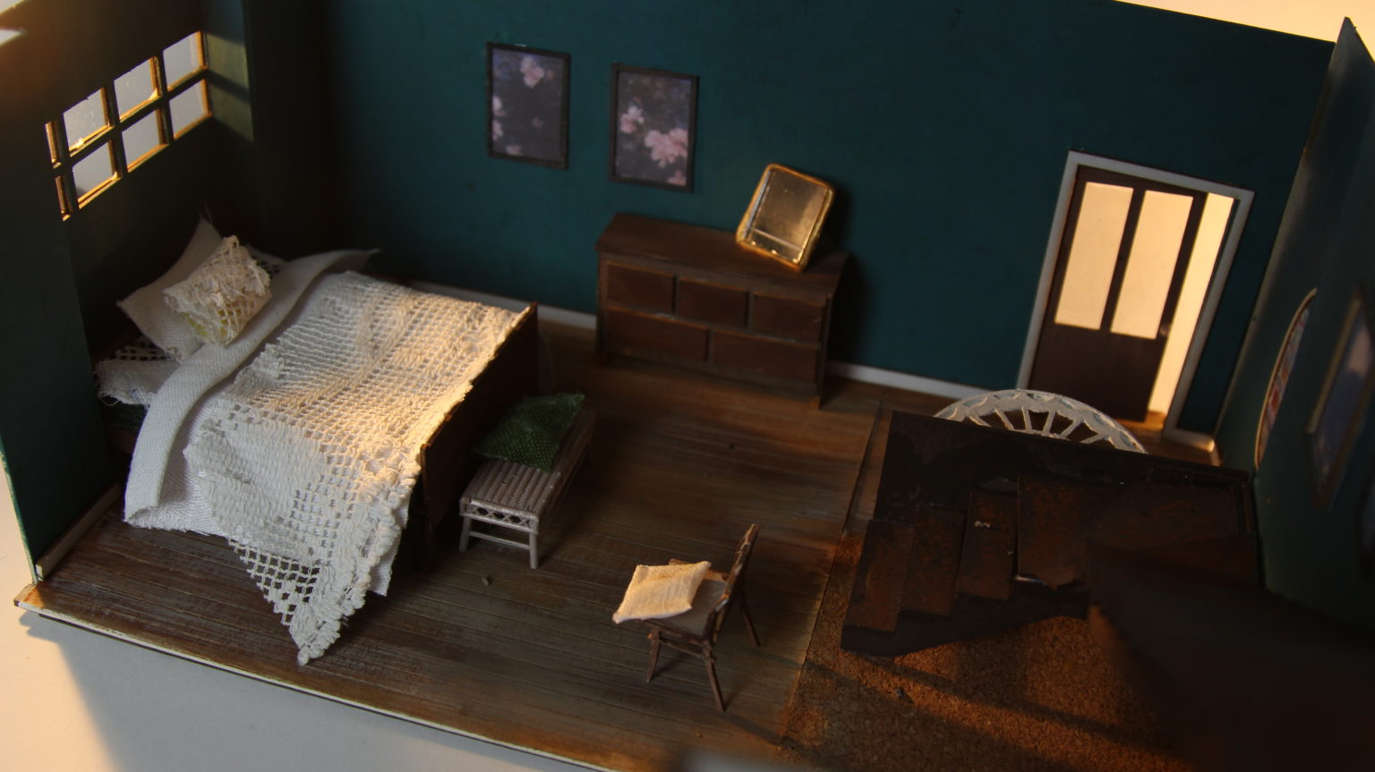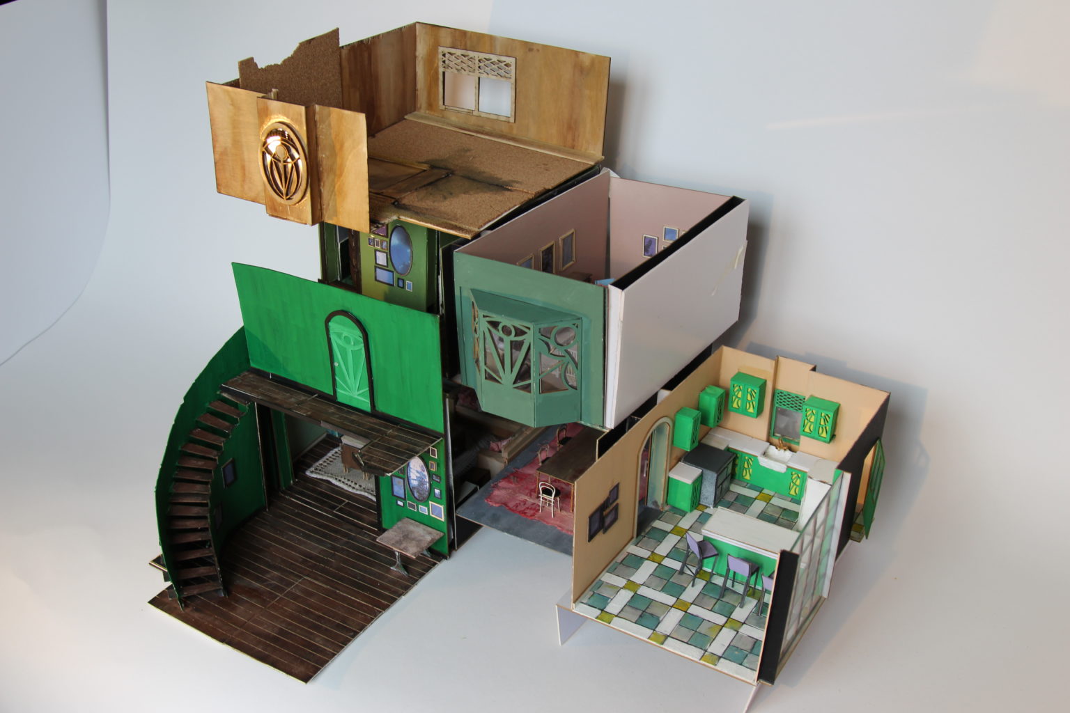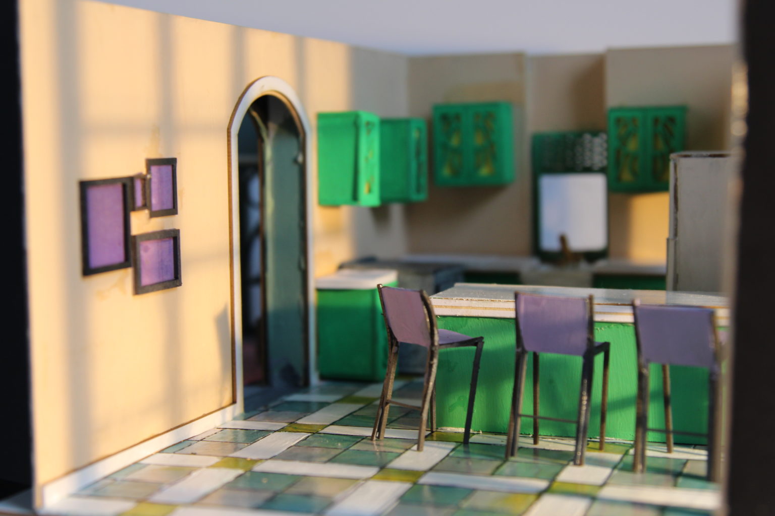 For my major project this year I focused on the re-design of a 90's classic thriller, 'The Hand that Rocks the Cradle'. The original film takes place in a Victorian home with a minimal colour palette. My aim to to add a sense of drama and suspense to the space to increase the drama felt in the film. I did this by experimenting with colour and patterns to create a more abstracted space. The design of 7 spaces I created acted as a fully realised model of the interior home with a lot of work put into laser-cutting, 3d printing and modelmaking. Throughout the project I also enjoyed my conceptual research on hierarchy, the privileges of modernism in the home and the weaponization of domesticated space.