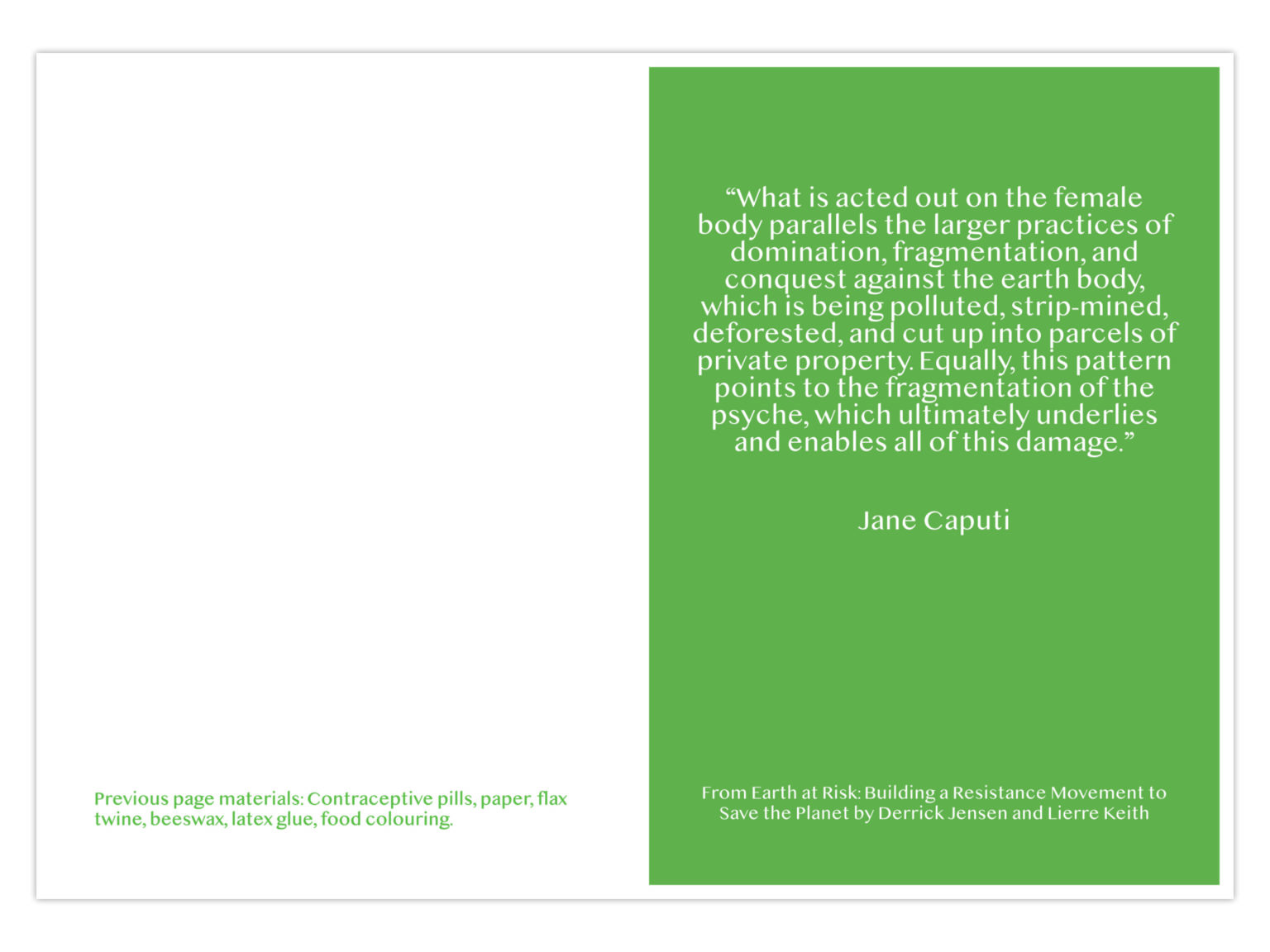 This project was inspired by my interest in intersectional feminism and environmental justice. My references include the Dublin Well Woman Centre's 2020 Annual Report, the Irish governments's proposed free contraception scheme, and writing on the topic of craft and environmental perception by Tim Ingold, among others. I also looked at environmentally focussed project precedents such as Olafur Eliasson's Ice Watch 2014.