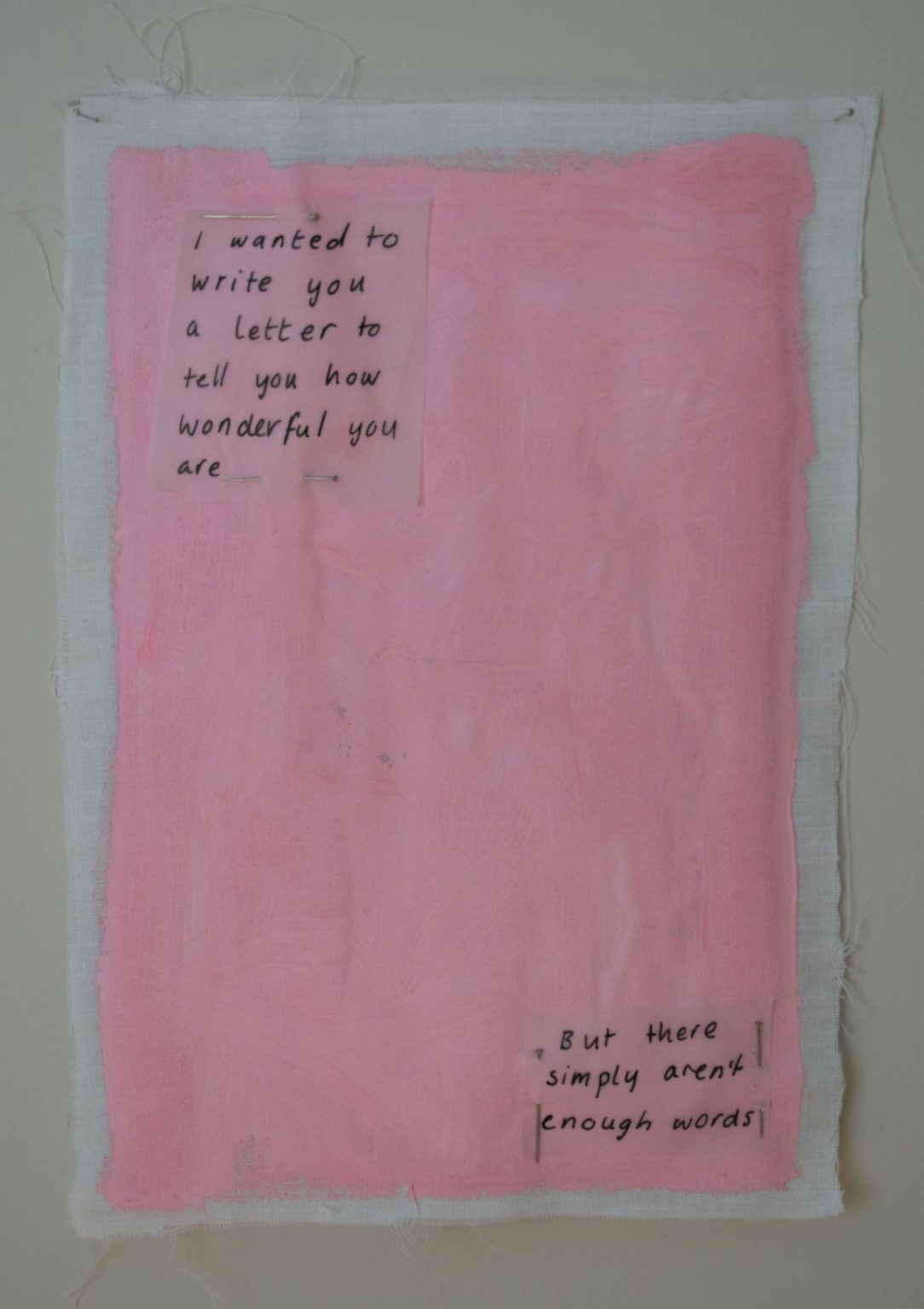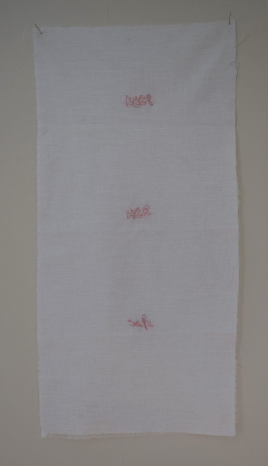 Saoirse Melia’s practice focuses on the relationship between words and perception, and her current work also deals with personal themes of intimacy and mental health. She is interested in the entanglements that exist between words, images and memories, which can change over time. In particular, she explores how differences in composition, structure, size and colour, as well as forms of textual repetition, might affect the process of comprehension. She has exhibited in IADT student shows such as High Heart (Pallas Projects/Studios, 2021), Making the Intangible Tangible (United Arts Club, 2019), and Perceived Dimensions (IMMA, 2018).