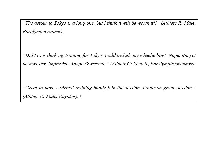 My study employed a thematic analysis of Instagram posts to explore the ways in which elite and Paralympic/Olympic athletes navigated the COVID-19 pandemic. The specific research questions were: How did elite athletes appear to navigate the pandemic: (i) during the COVID-19 national lockdown restrictions and (ii) during the return to sport and competition phase?