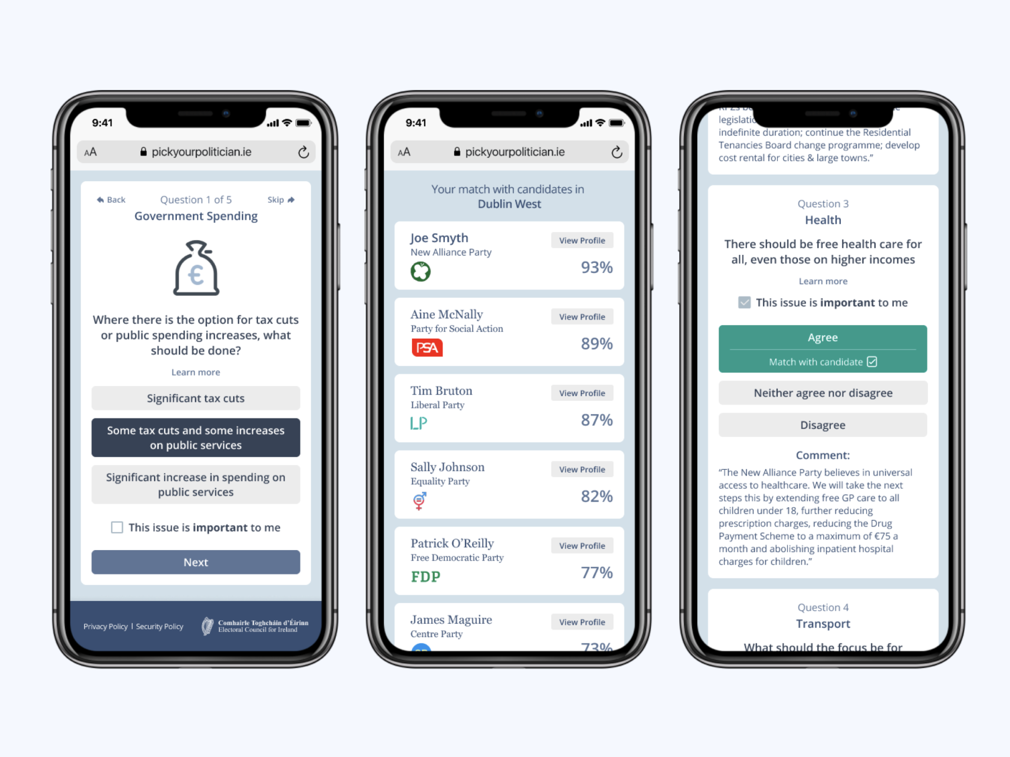 Voter Advice Applications (VAAs) are tools provided to the electorate to allow them to find candidates or parties with similar political viewpoints to themselves. They are present in the majority of EU countries as well as New Zealand, Australia, and the United States and have long been the subject of research into their effectiveness and impact. In addition, interface design has been long recognised as having an impact on the trustworthiness of websites. This project looked to analyse a number of popular VAAs from a user experience lens and carry out a user centred design process while investigating the impact of trust inducing UI principles and enhanced data visualisation on the trustworthiness of these tools.
