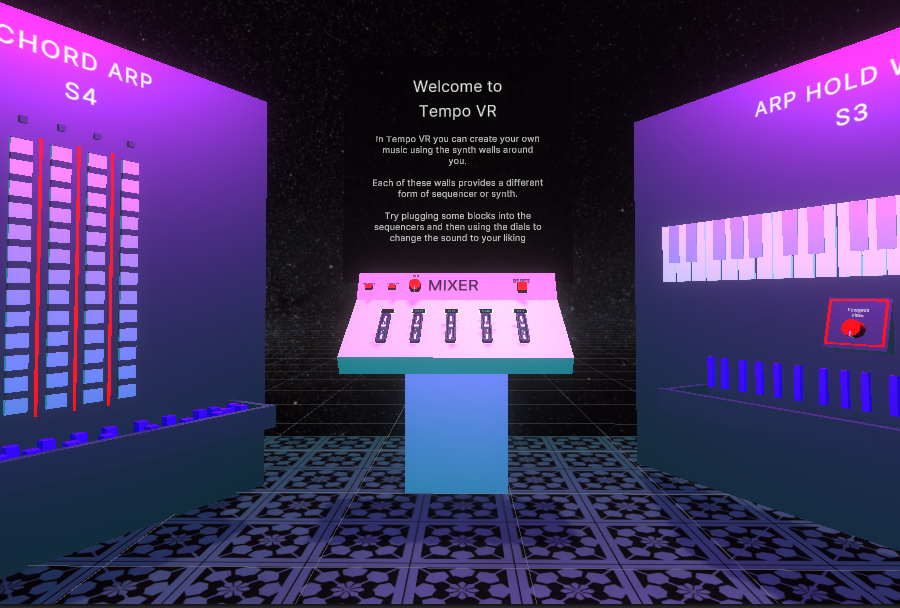 The aim of this project was to construct a VR based application which allowed Users to experience and create digital music in Virtual Reality, with a major focus on synthesis and digital sequencers.