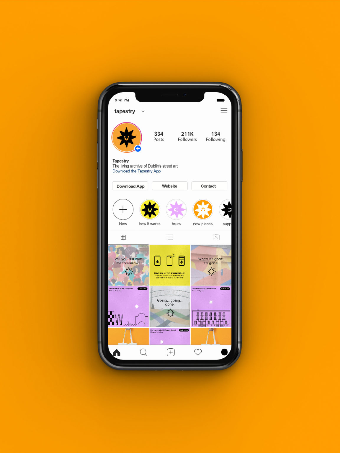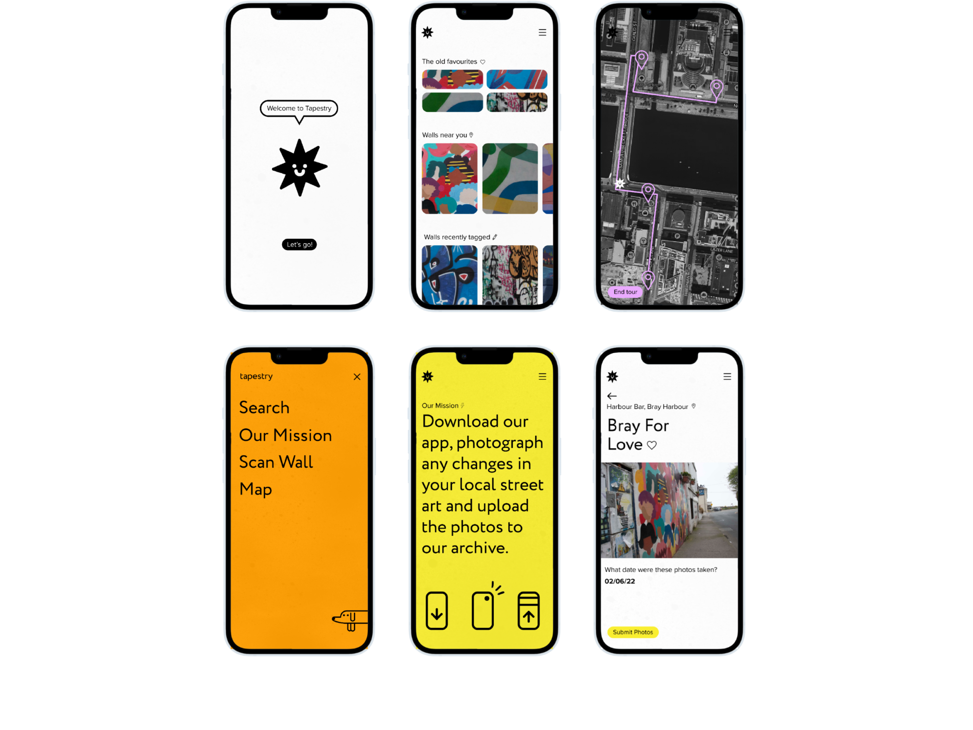 Tapestry is the living archive of Dublin's street art. Our city's street art is routinely defaced and erased, vanishing seemingly overnight. Tapestry’s mission is to record all developments in street art pieces before they disappear. This information is housed on a living, breathing public archive, the Tapestry app. Users download the app, engage with curated walking tours, browse and upload photos to the archive. Together, we can weave Dublin's tapestry.