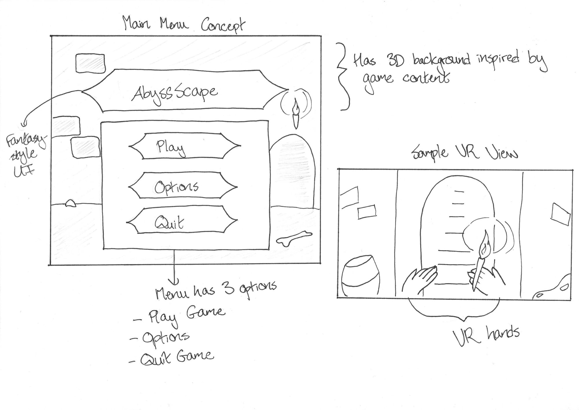 AbyssScape is a virtual reality, dark fantasy escape game, in which the player must overcome obstacles to find their way out of a foreboding dungeon. It was developed for the Oculus Quest 2 headset in Unity 2020, coded in C# using Visual Studio Code, and utilised Unity's XR Interaction Toolkit. The menu theme and ending theme were also composed within Magix MusicMaker, a program which enables the user to arrange premade music loops to compose soundtracks for film, games etc. AbyssScape also aimed to examine the principles of immersion in gaming, utilising elements such as colour, lighting, and sound design to create the right atmosphere.