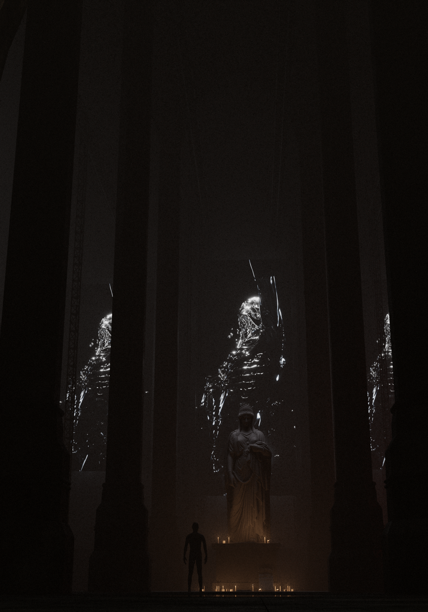The initial idea for the project came from a mental image certain songs had given me. I knew I wanted to make something big and underground, some sort of crypt style environment, like a German techno club if it was run by cultists or a witch coven. For inspiration I looked at nightclubs such as B-018, Printworks and Berghain, and films/games like Suspiria and Dark Souls.