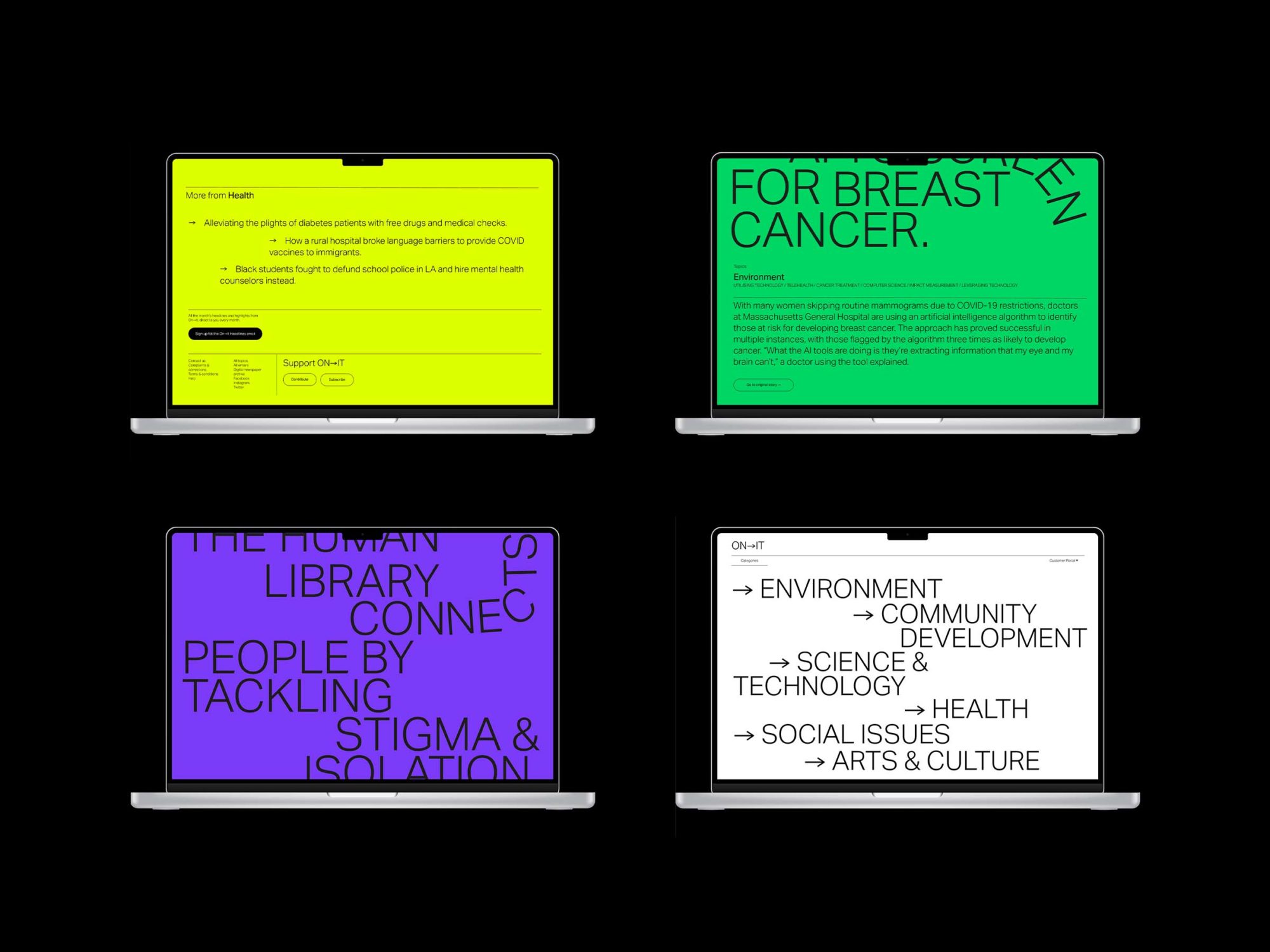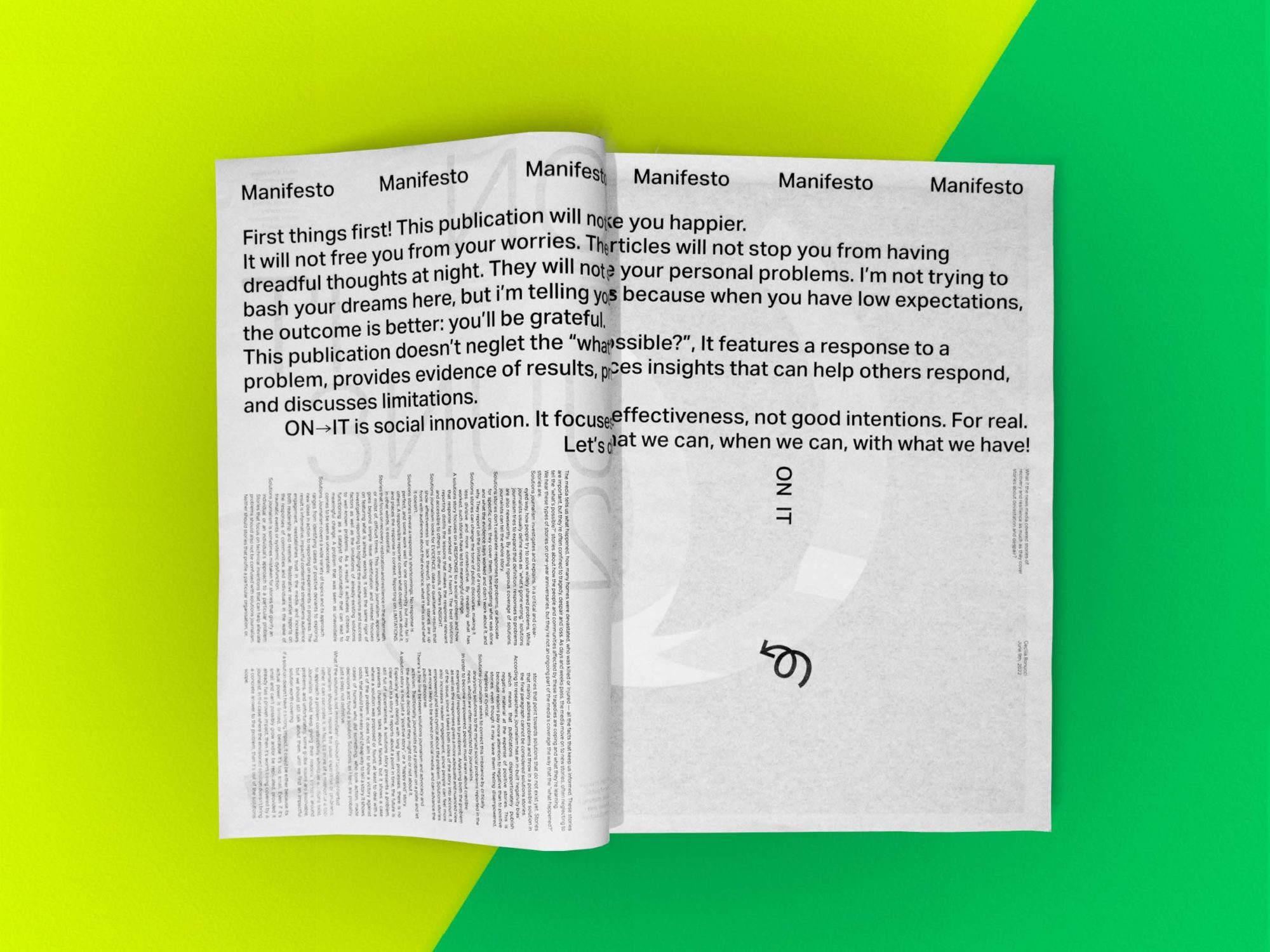 According to researchers, journalism has an in-built "negativity bias" which means that publications disproportionately publish negative material at the expense of positive stories. Such news is inaccurate as well as detrimental to well-being. ON→IT seeks to correct this imbalance by critically analysing solutions to the myriad social problems reported in the news.