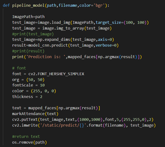 This application will be able to predict via uploading an image and capturing a snapshot of a person’s face. It will also display the attendance to the user. The steps involved in the development were to first gather the requirements and decide which are most important, then research on machine learning and neural networks took place. After this, the model and application were designed. After the design process is complete the implementation step of the process began which included creating and choosing a model and integrating it with an application. Once all of this is complete the objective for the application is reached