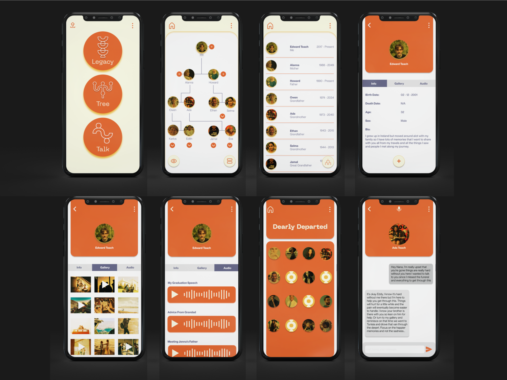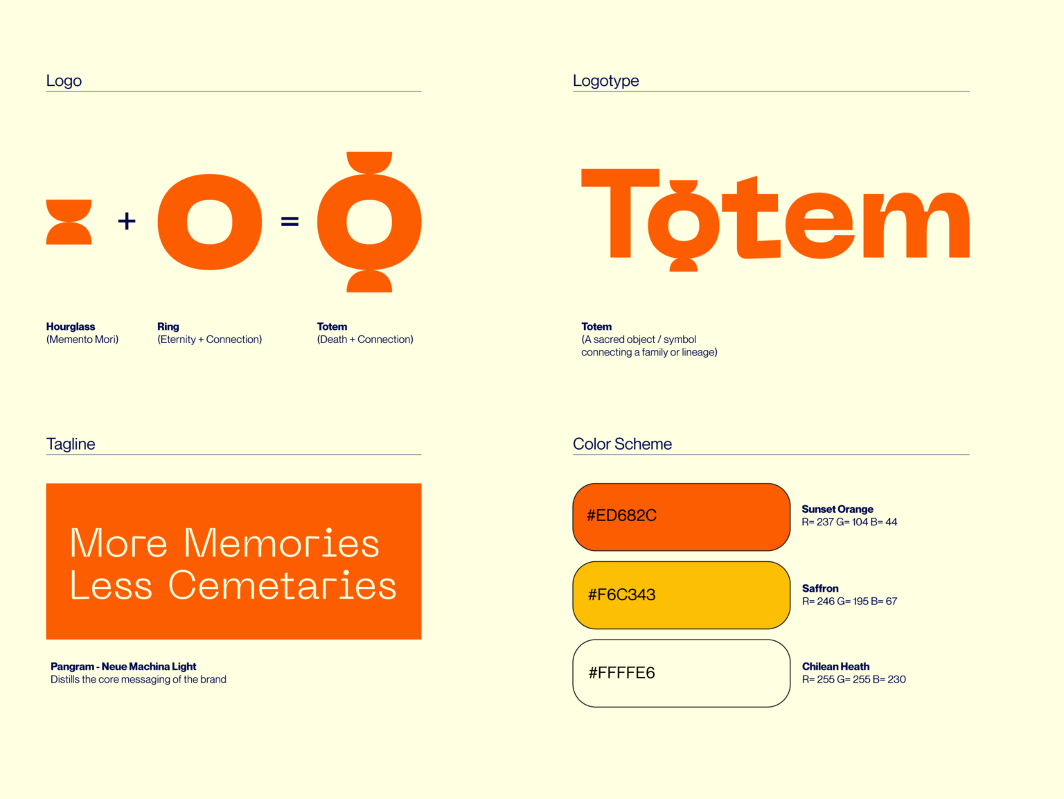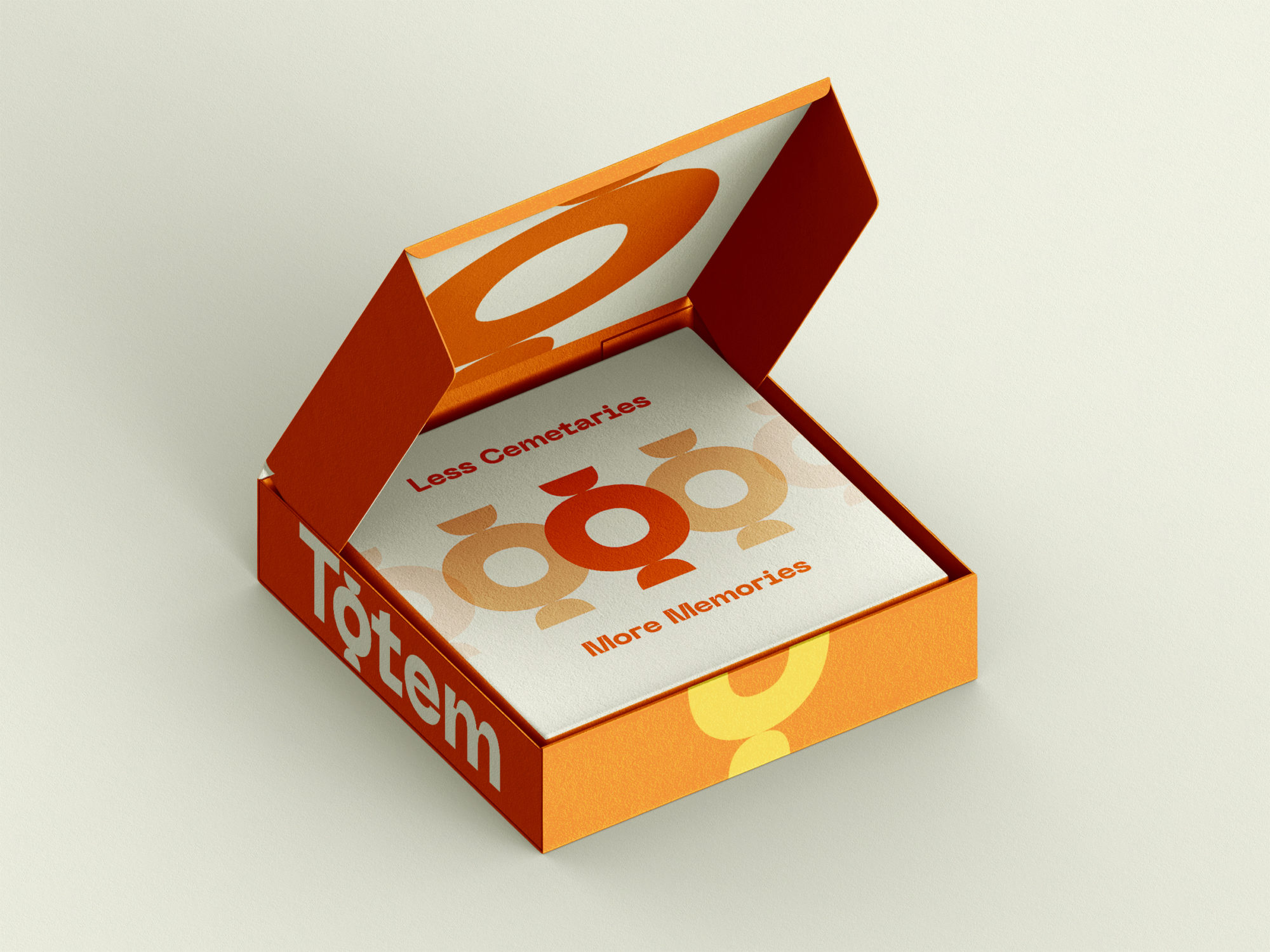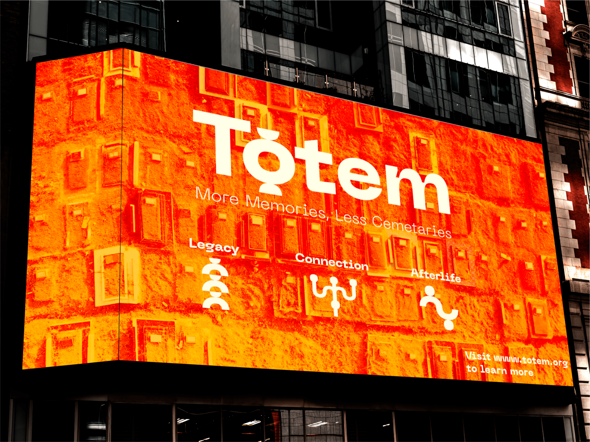 To illustrate this story I have designed a brand identity and promotional video for the company that highlights how the Totem Ring collects data and can keep the users' data safe in a blockchain vault that only loved ones have access to. The mobile app I designed is intended to substitute the physical graveyard as users see their family and friends connected in a digital afterlife where their most cherished moments can be shared with family when they depart.