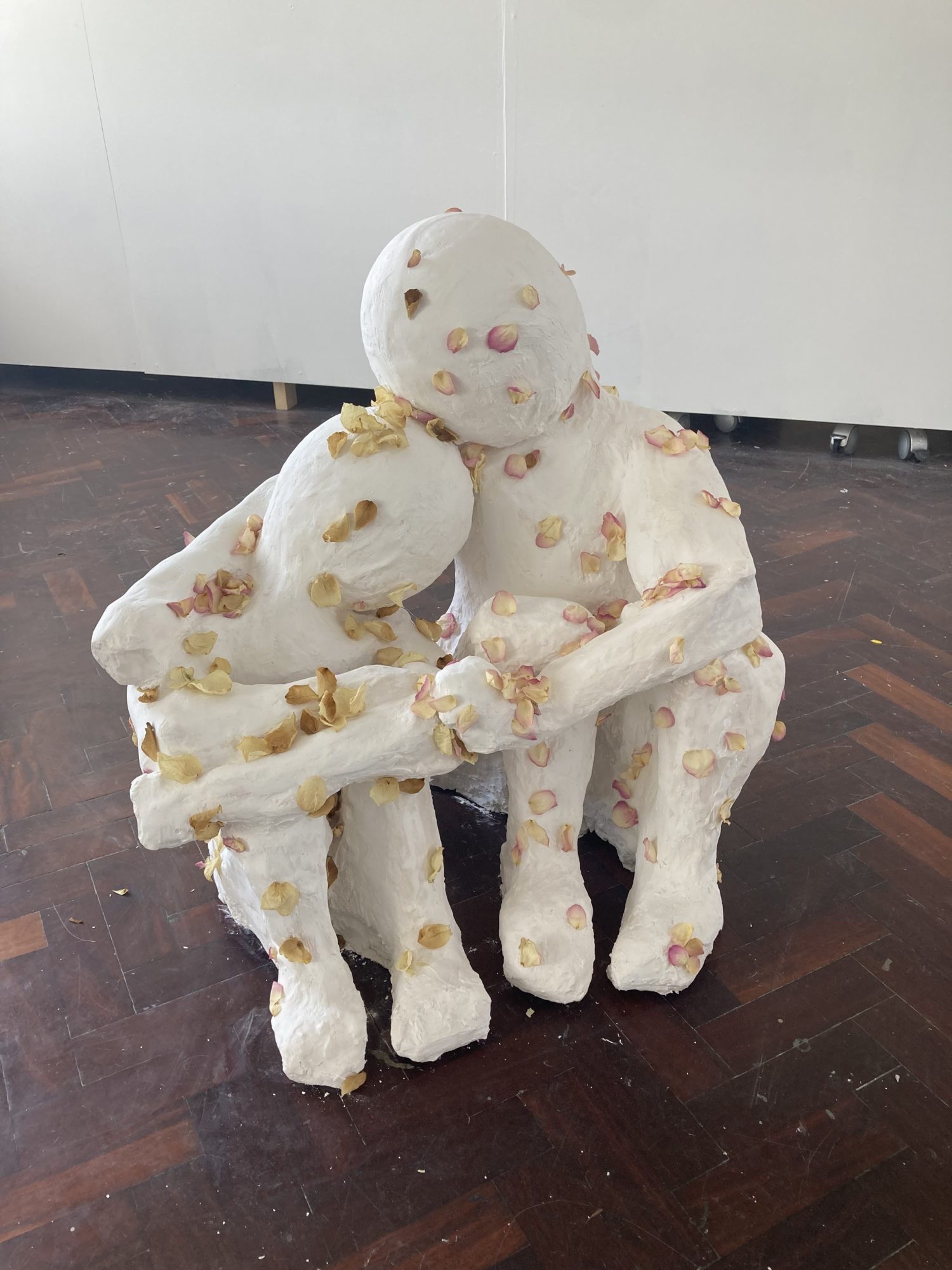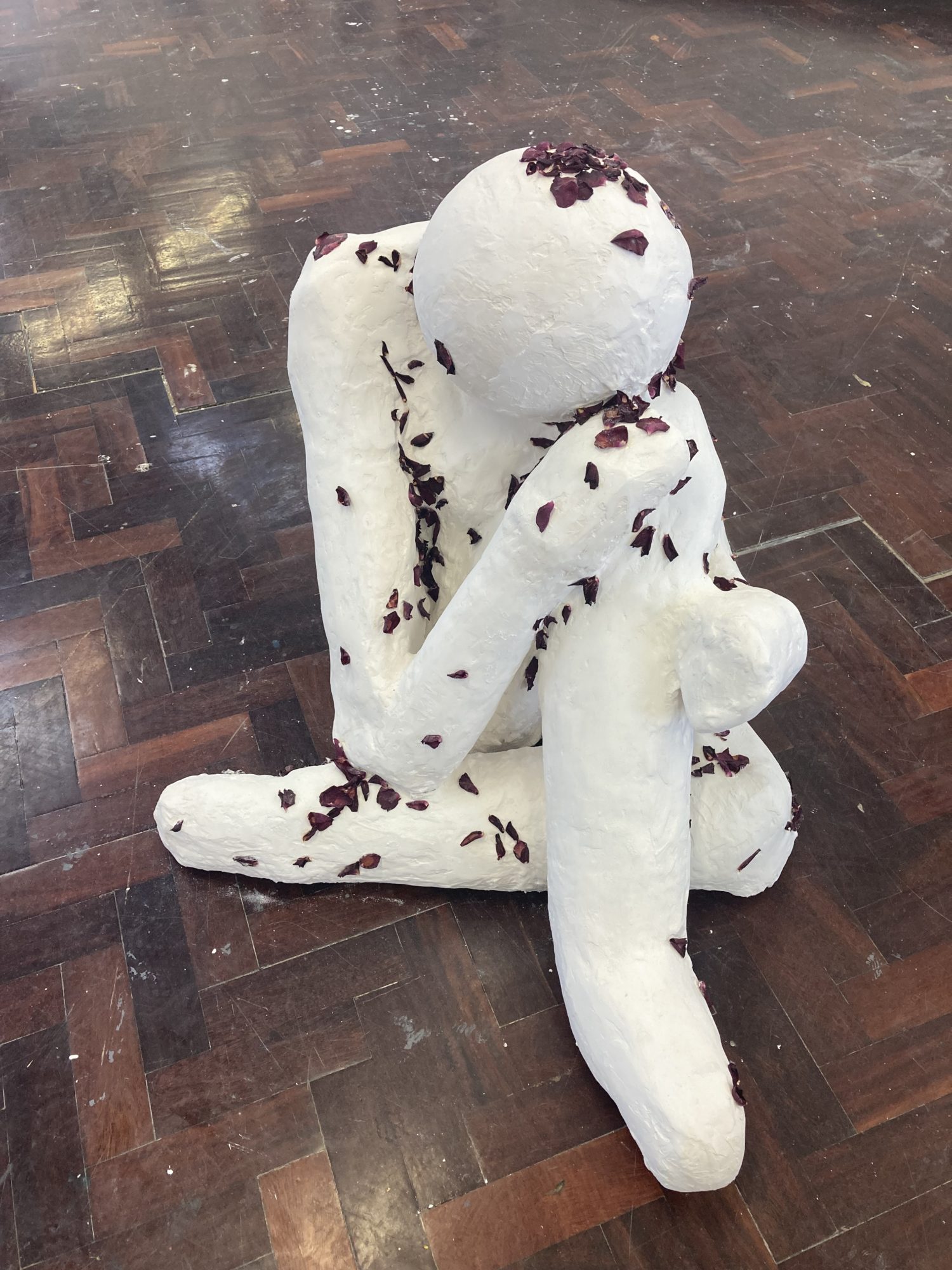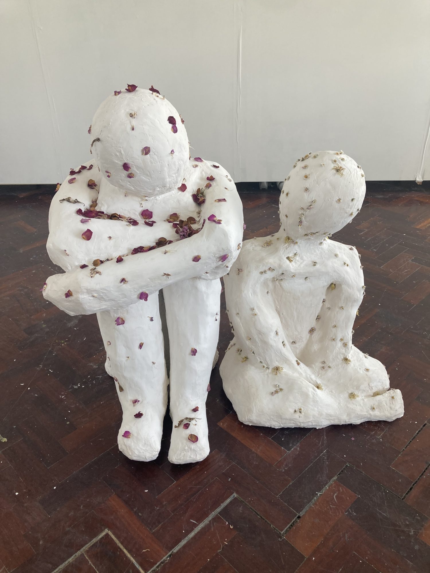 My project explores what it means to be a woman in Ireland, focusing on the underlying social pressures and the feelings of vulnerability often associated with womanhood. Through sculptural installations, often incorporating sound and figurative forms, I examine issues faced by women over many generations, many of which are only now being addressed. I am interested in playing with the idea of scale, to imply a range of different ages. My research includes a series of audio interviews, exploring how women see themselves, and my approach draws on my own experience as a young woman living in Ireland. I have recently been exploring methods of including audio in my work, such as the use of QR codes. Some of my works are created with plaster bandage as this material has medical associations and is used in surgical casts to assist with the healing process.