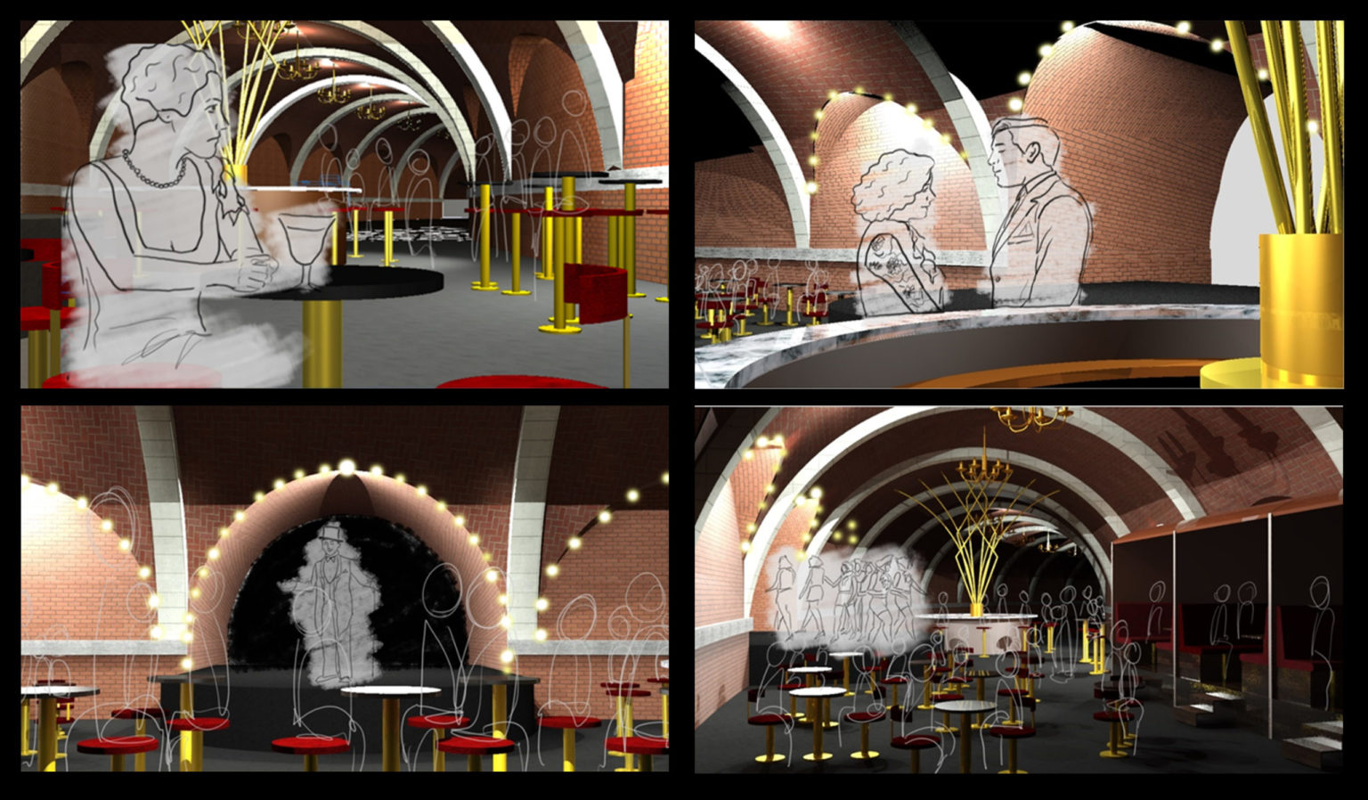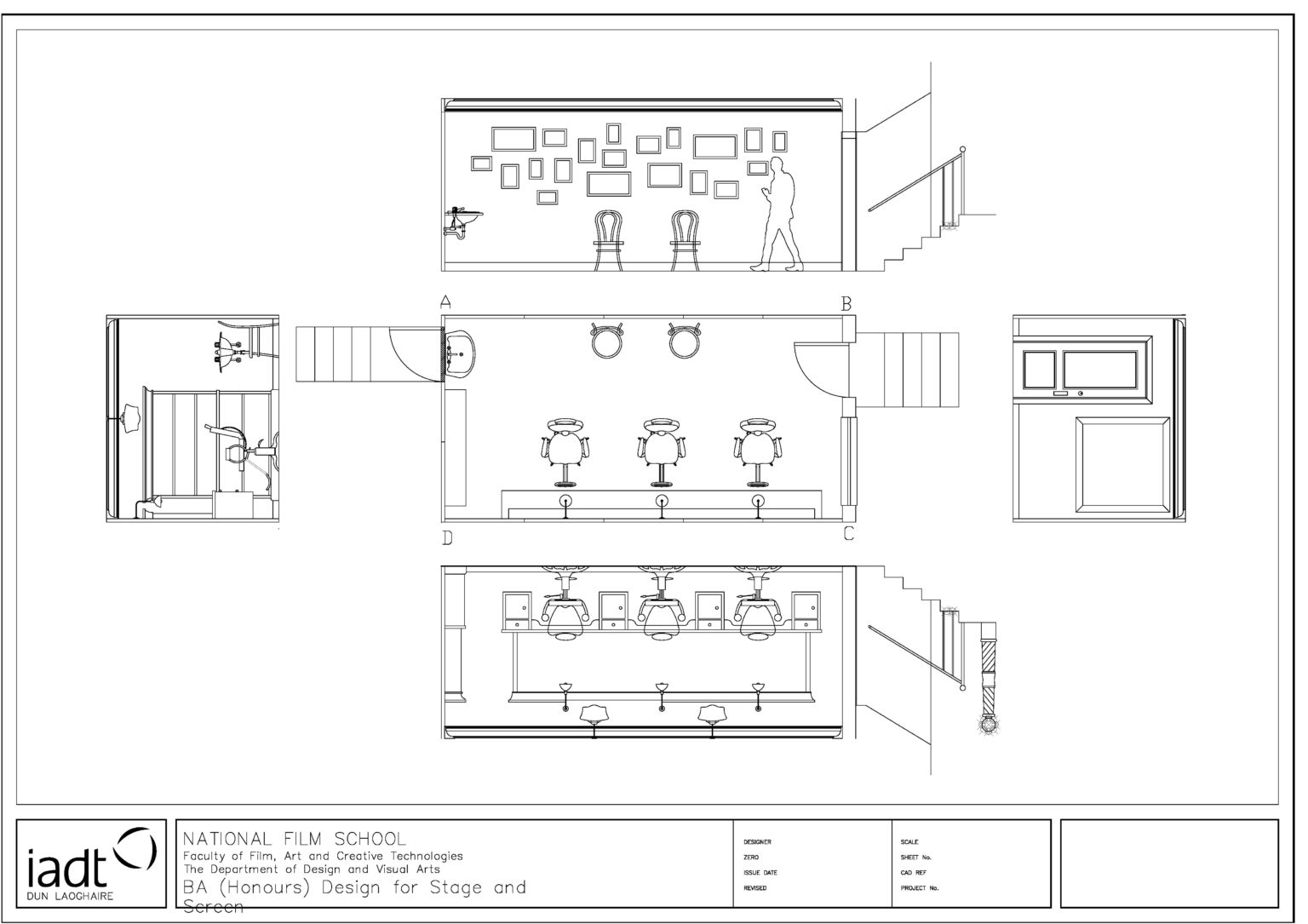 My aim was to focus on two main locations, the barbershop, to design a historically accurate, time-specific set, and the speakeasy, to design a fictional space where I could push my imagination and creativity further within the parameters of a functional film set.