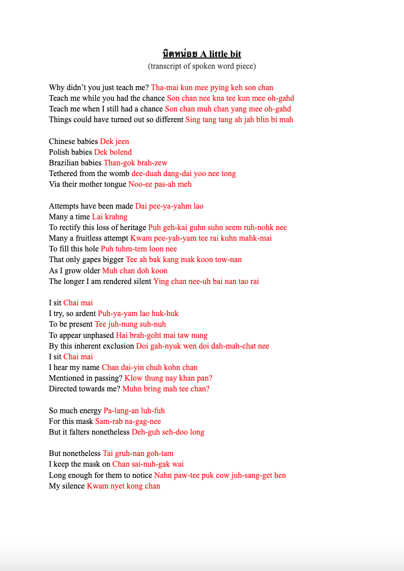 To create work for this project, I travelled to Thailand in early April where I captured my experiences with my mother and extended family. I documented and explored the themes mentioned previously and utilised the different spaces and resources available to me through the use of photography, video and audio.
