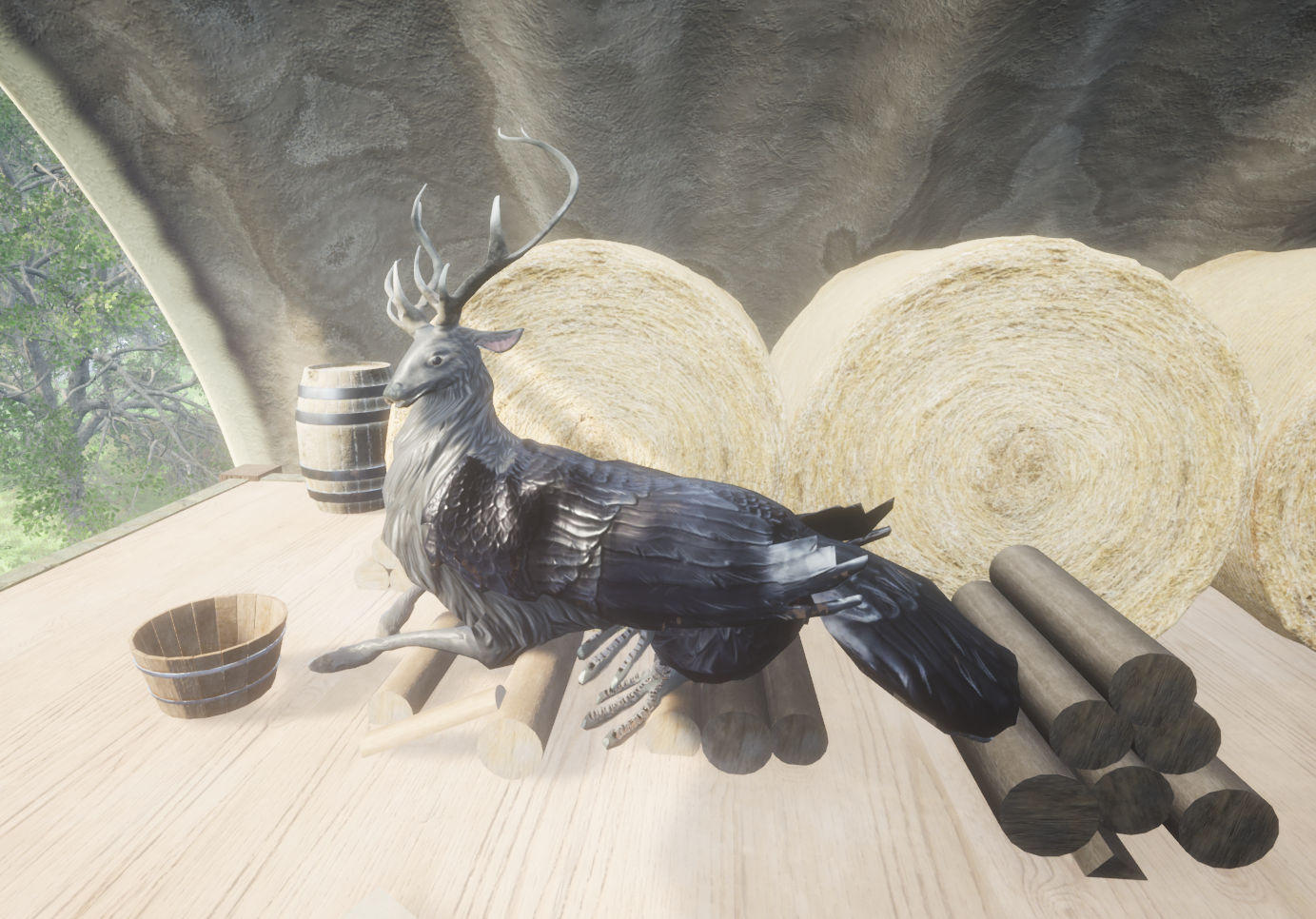Following the classic trope of the player starting as a simple farmhand, the game starts out in a barn. However this houses mythical creatures instead of the stereotypical farm animals.