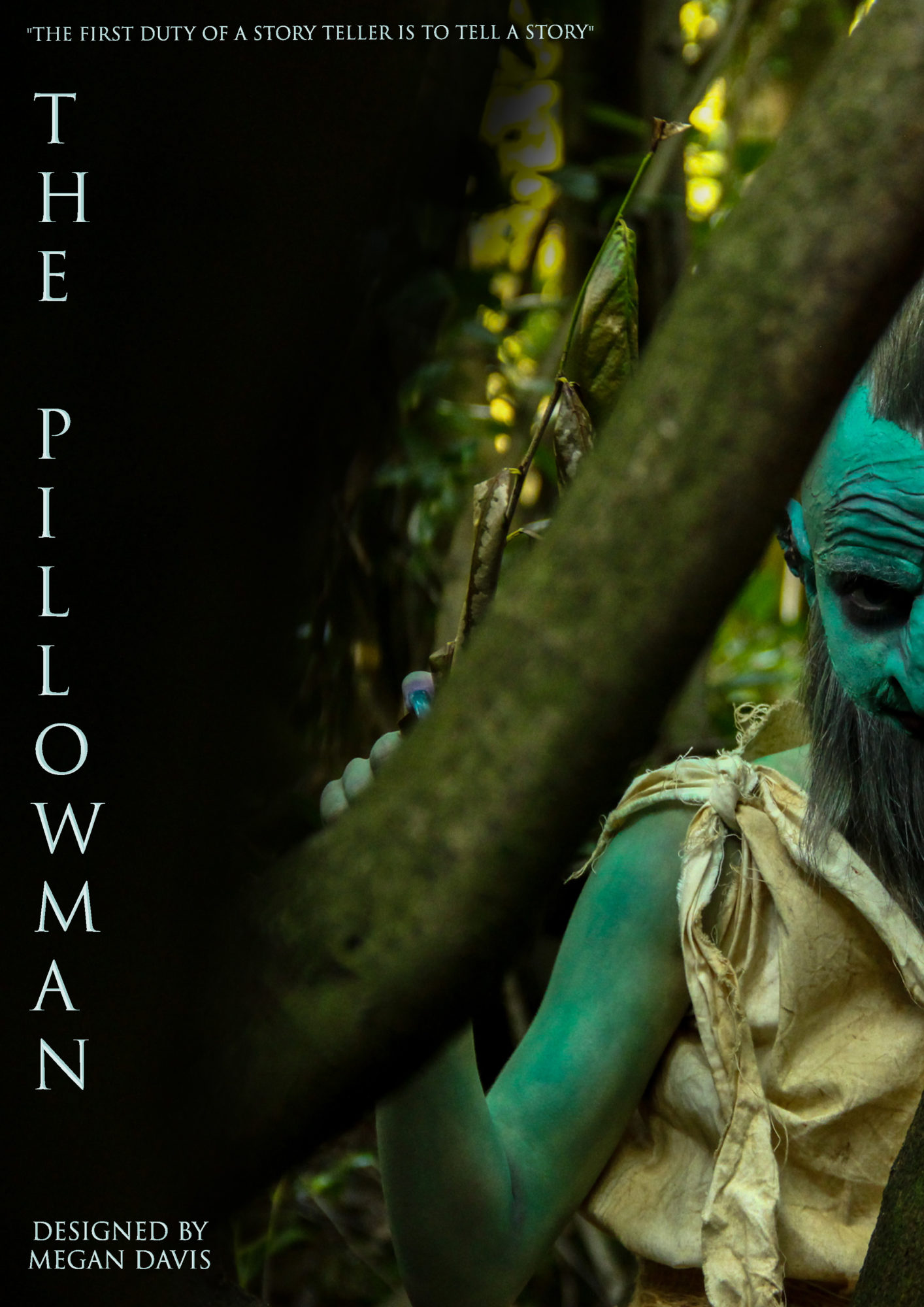 This project is based on The Pillowman, a play by Martin McDonagh. Growing up in the Irish countryside of Co. Wicklow, I heard many stories of Irish fairies and evil little creatures and how they can terrorize mortals. I have always had a great interest in these mythical beings, so for my final project I really wanted to focus on this Irish mythology to produce a concept of what these might look like. Upon reading the script I could imagine supplementing the characters from the short story “The Little Jesus” with a fairy as a new concept for this play.