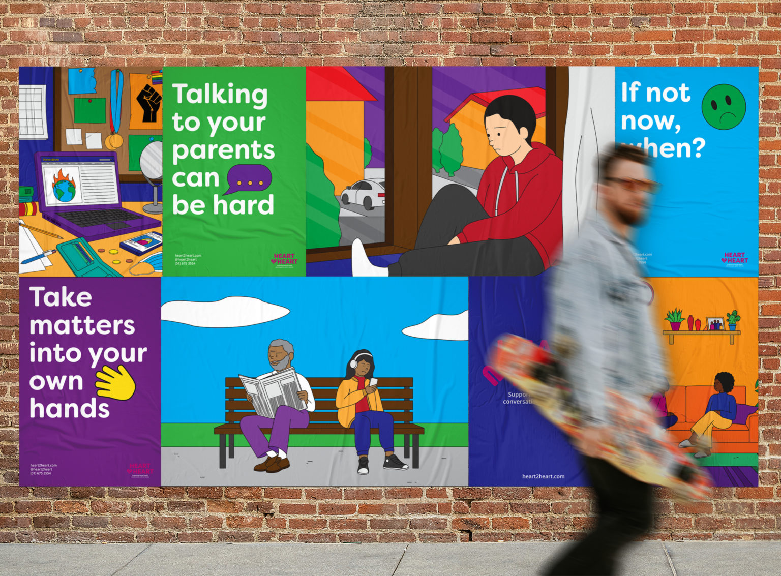 A lot of families aren’t in the habit of talking about mental health. Consequently, many young people report being afraid or too uncomfortable to tell their parents about it as they do not want to upset them. The HEART2HEART campaign aims to bridge the gap between the older and younger generation, by giving the latter the help needed to start a positive discussion about their mental wellbeing with their parents. A toolkit with printed support materials is provided to help young people navigate their mental health and encourage them to start their journey of speaking up, creating a familial support system.