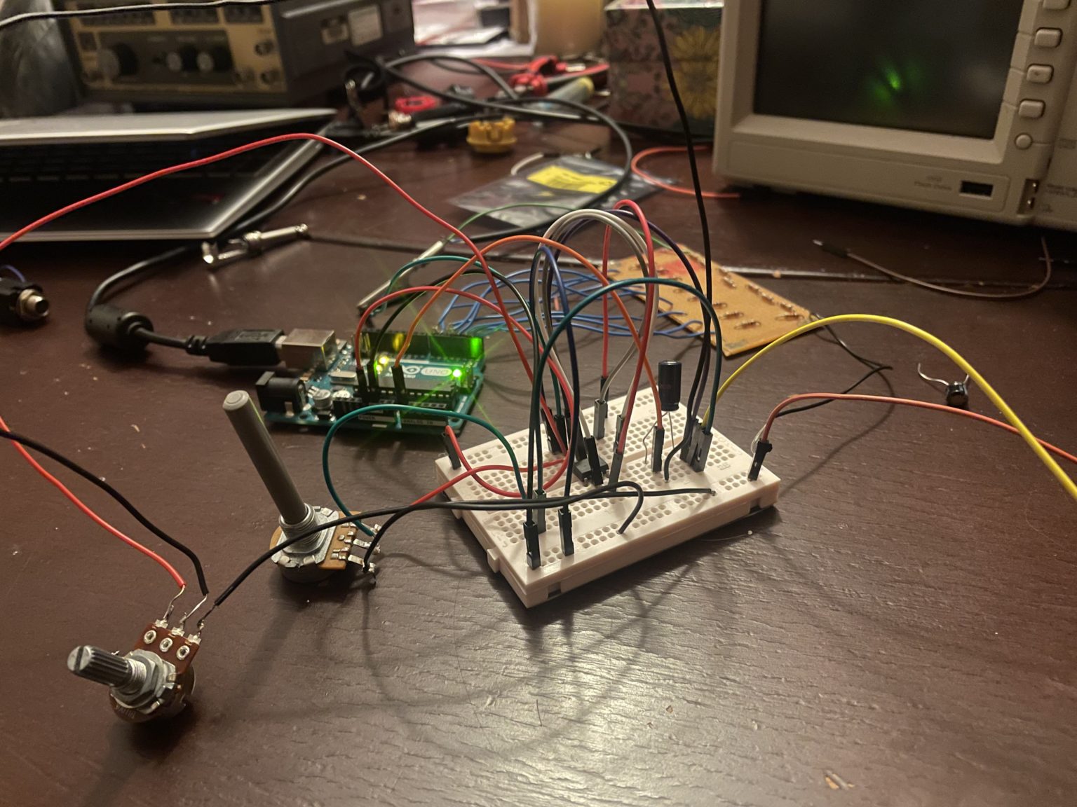 The audio output can now take commands from the Arduino IDE (the software integrated development environment) and produces various sounds and audio waveforms. The user can adjust the amplitude for creative purposes.