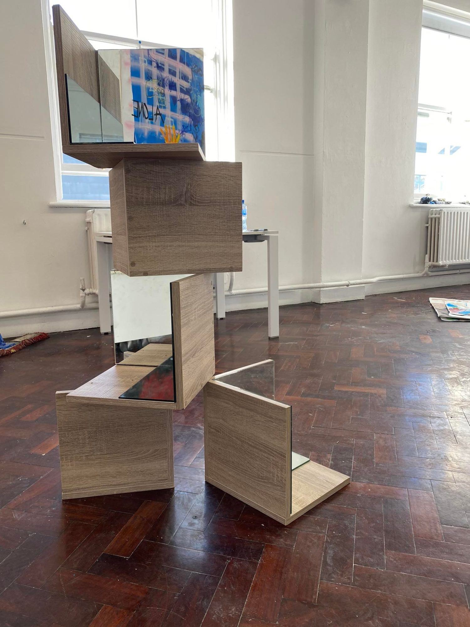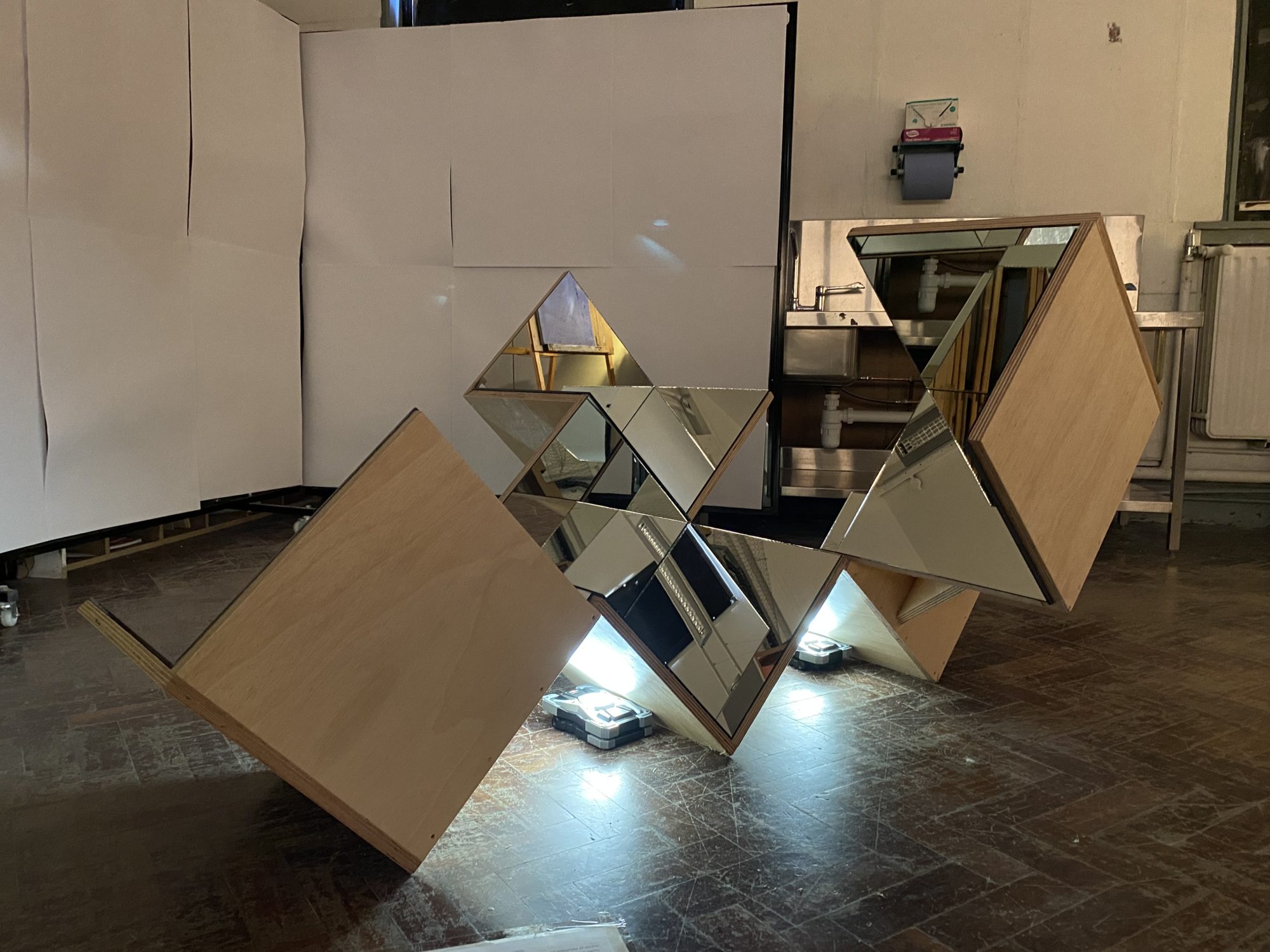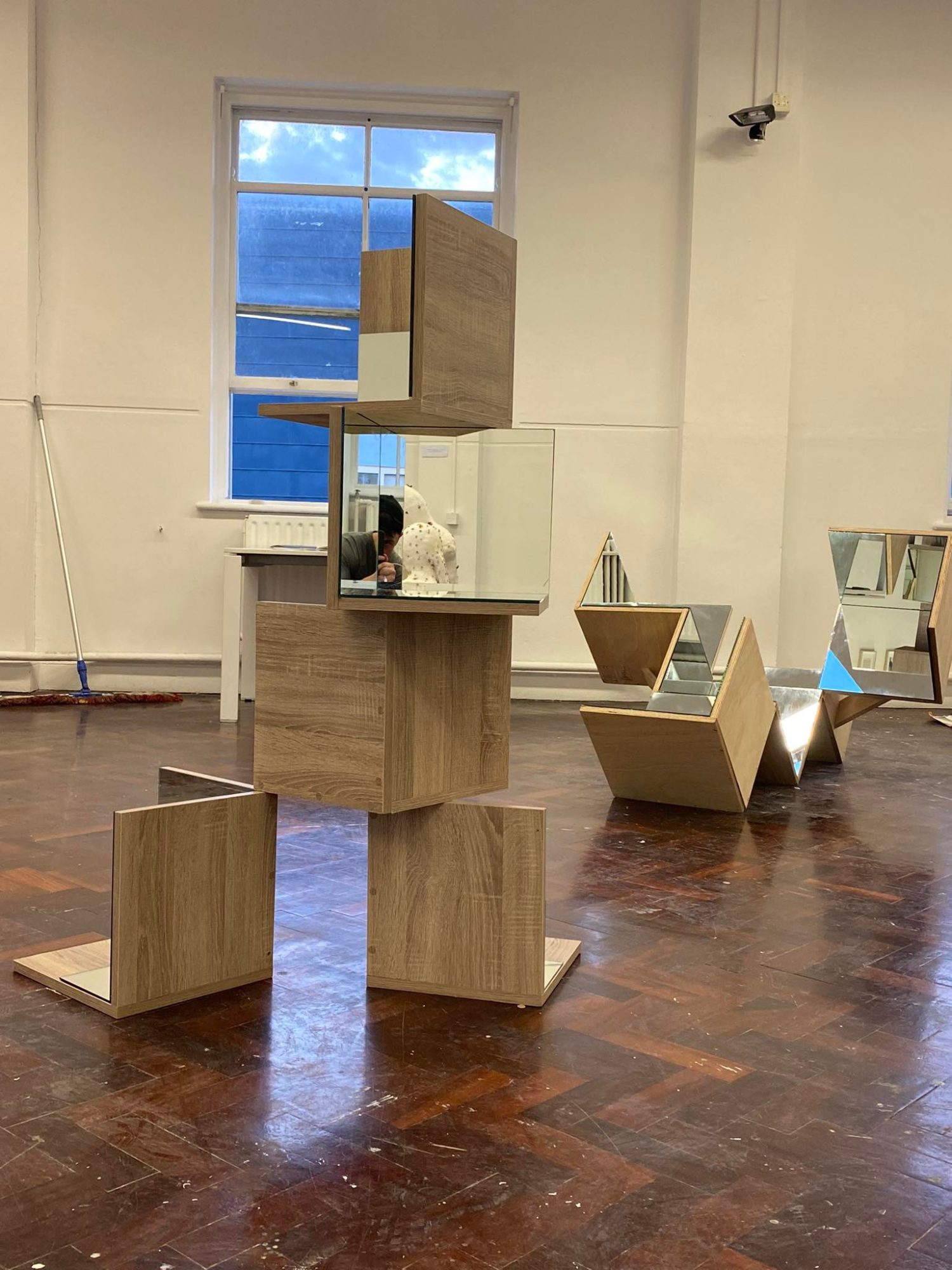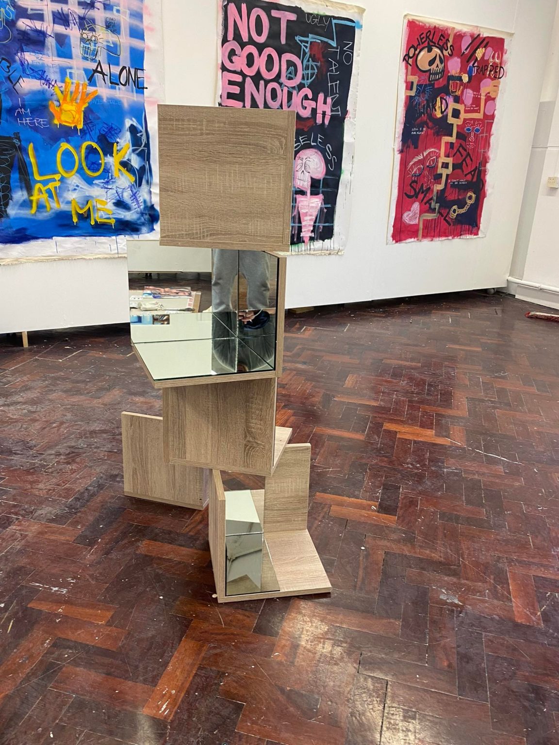 My ideas as an artist have stemmed from what I find to be most topical in my life. Social issues have made a clear impact on my work and these are combined with my own emotions at the time of making. As a sculptural artist, the materials I mainly work with are wood, mirror, reflections and space.