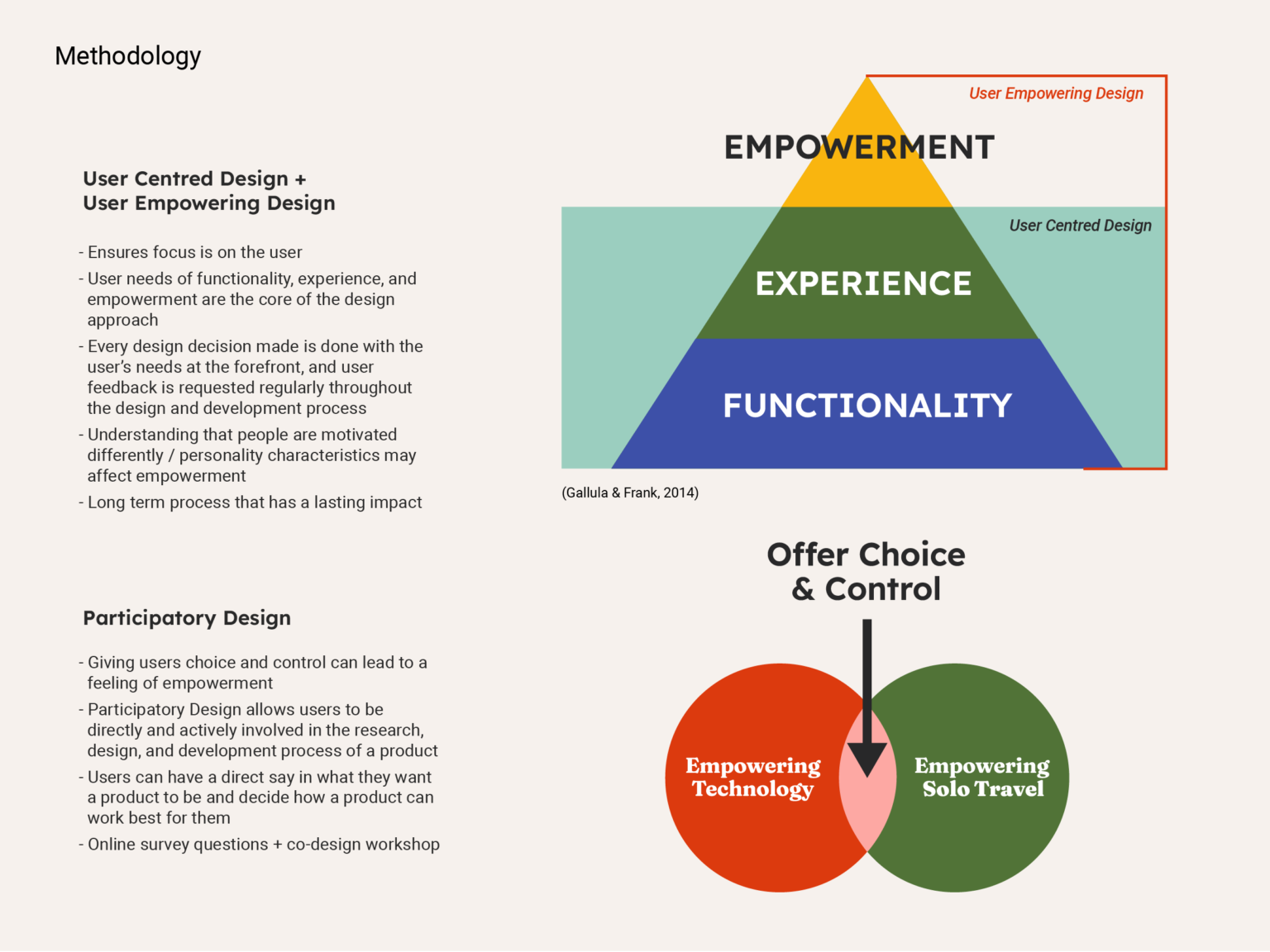 There is currently no design methodology that focuses specifically on user empowerment, so for this project I brought in elements of User Empowering Design developed by Gallula & Frank into my design methodology, as well as participatory design.