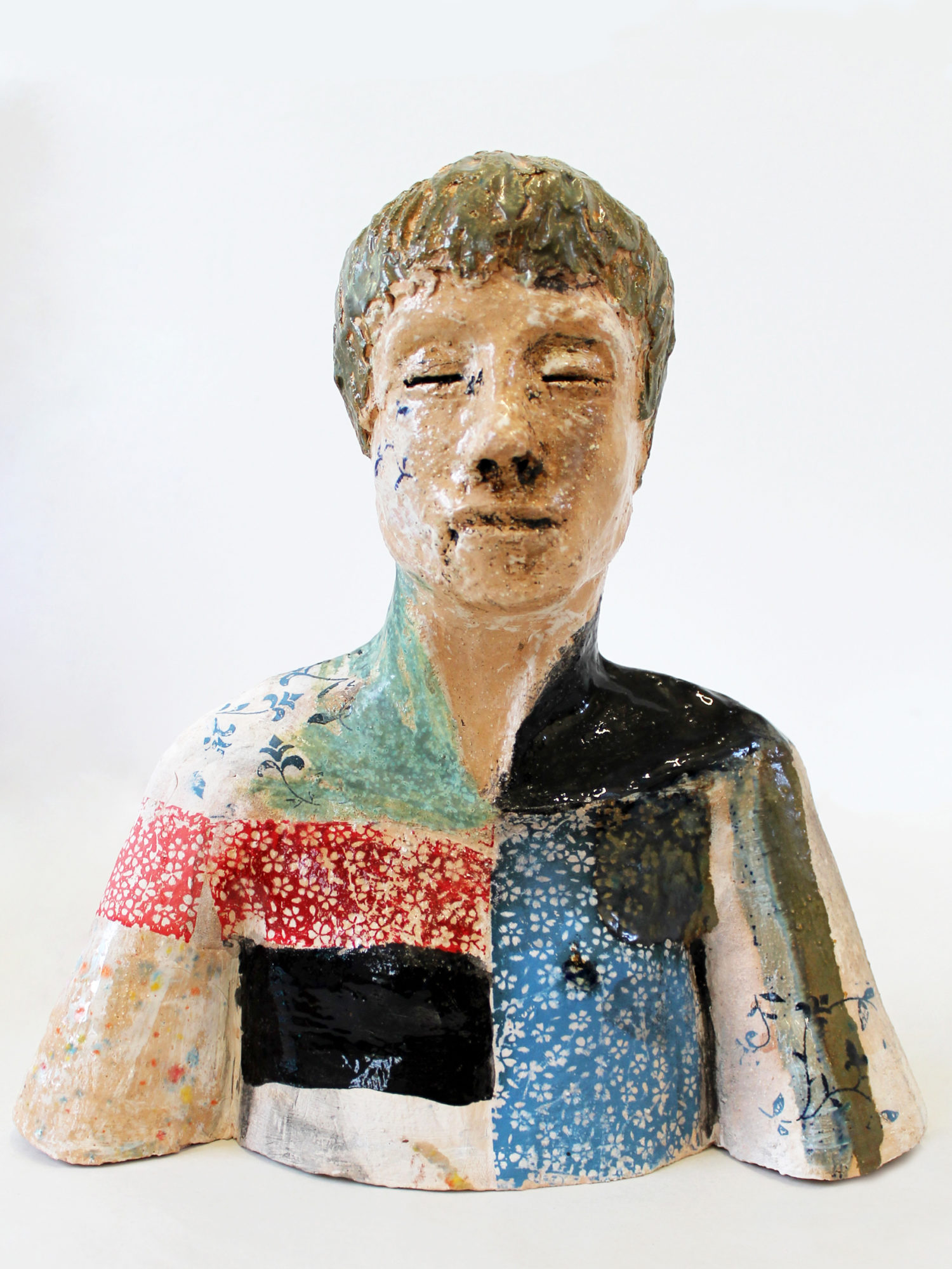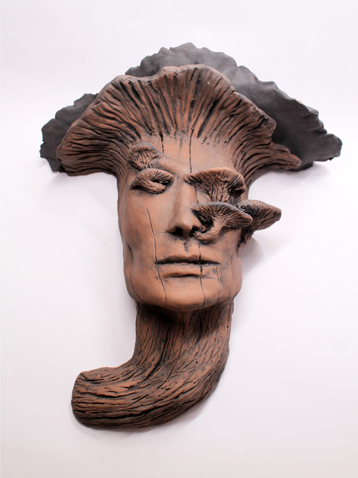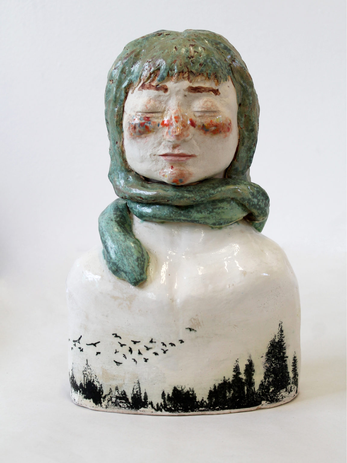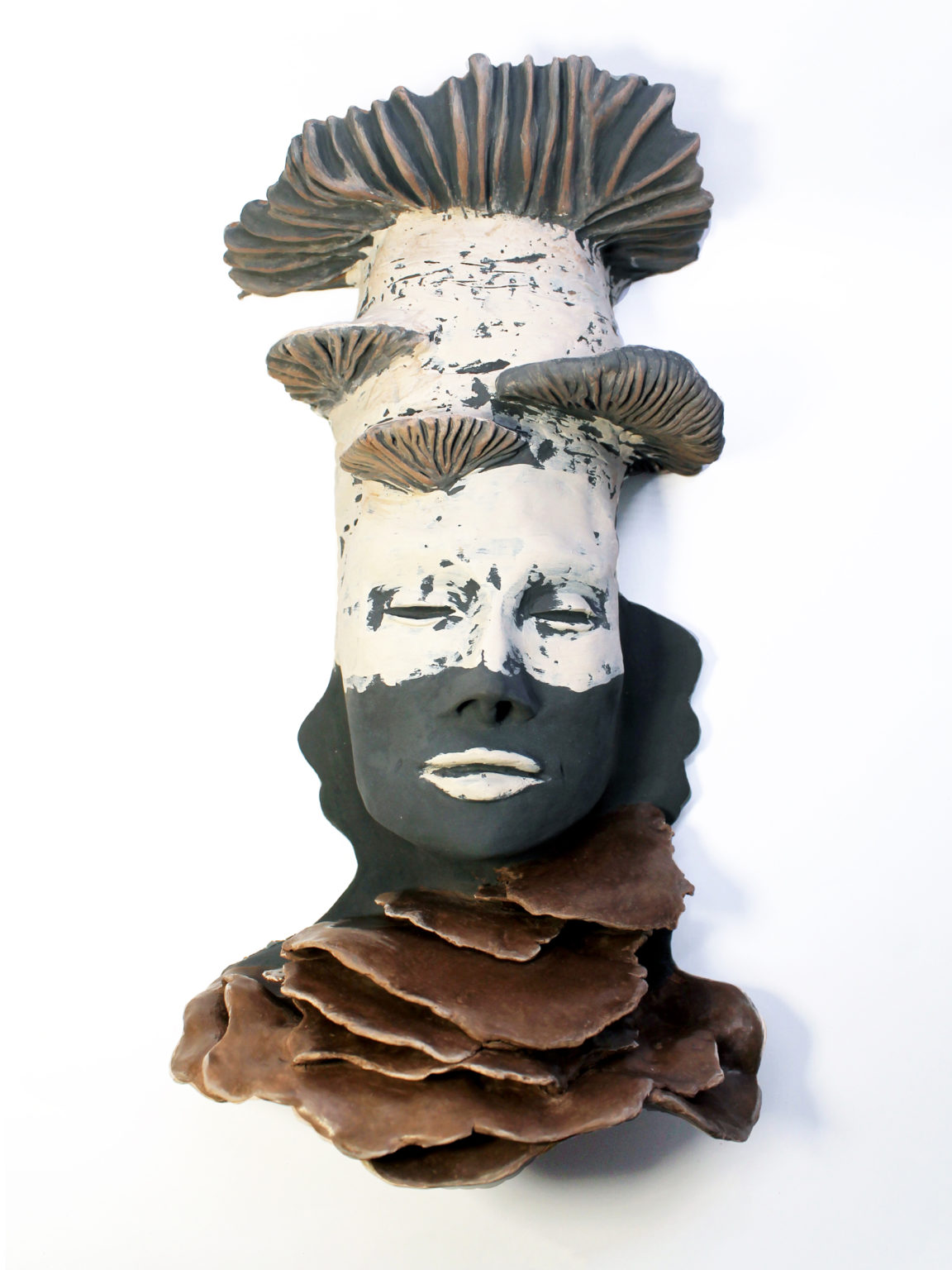 My project involves the expanded use of ceramic materials and processes. I create clay figures that reference female fertility idols, traditional connections with the land/earth, and ideas of the sacred feminine. The figures sometimes incorporate surface decoration, created using underglaze and image transfers, that references parts of flowers. I am interested in the possibility that my figures might each have a background story. These narratives might relate to the story of being a woman and experiencing life through a woman’s body. My work is also a means of dealing with issues of grief, loss and mortality. Some of the figures have a kind of dreamlike/ nightmarish quality. They are both a part of nature, and at war with it. Some incorporate elements of fungus, suggesting an organic connection to the earth and the possibility that they might returning to nature, decaying into the ground.