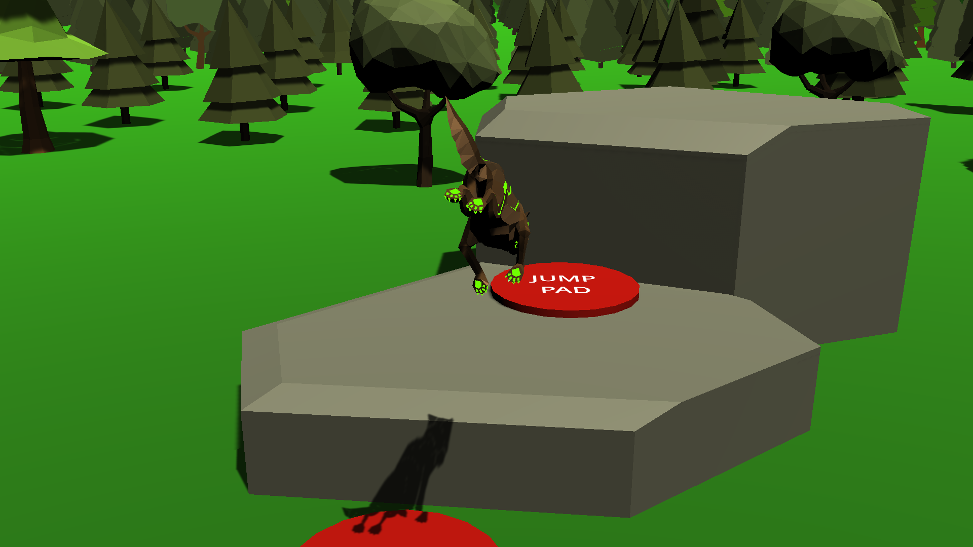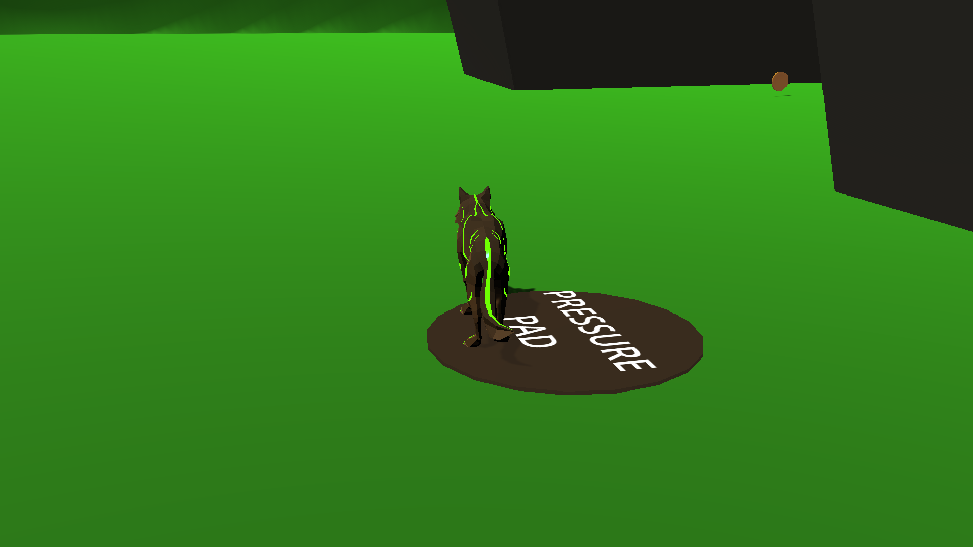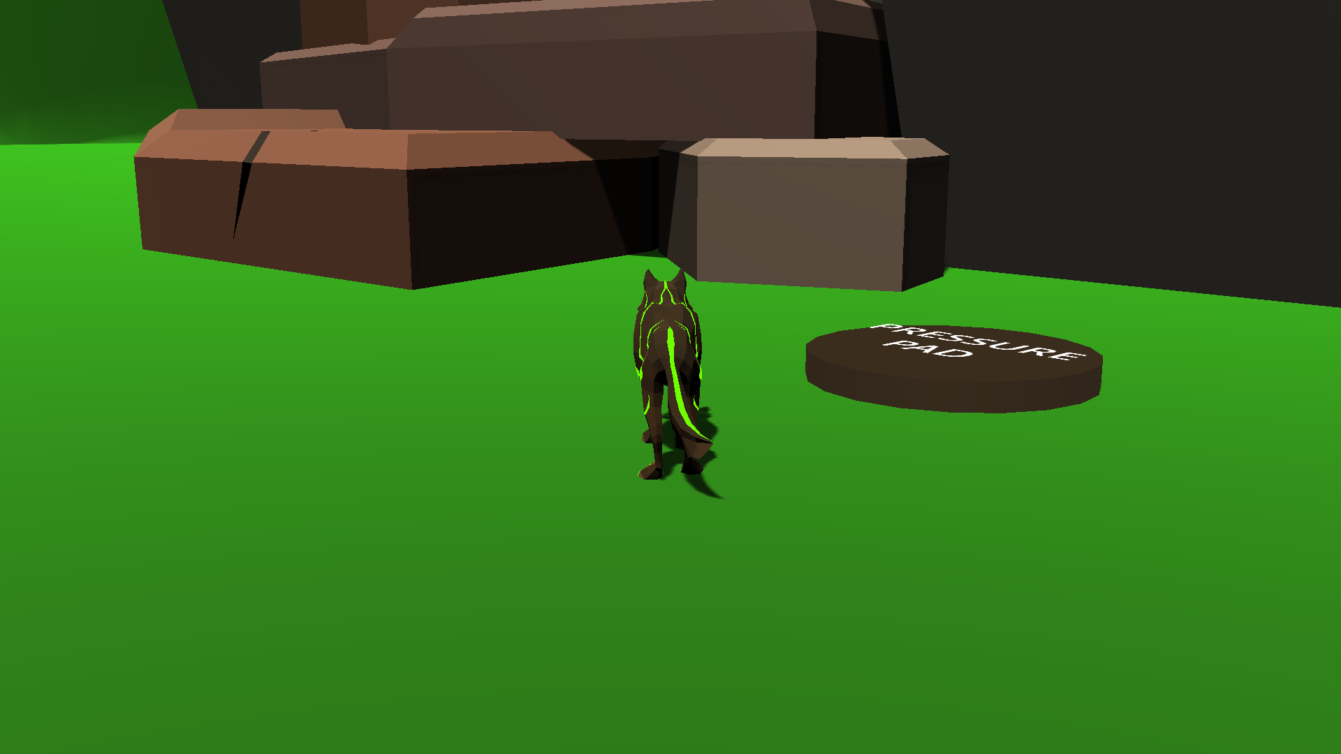 The test level developed for this project focuses on aspects of level design created specifically for quadruped characters. Quadrupeds possess their own unique abilities and limitations compared to humanoid characters. For example, quadruped characters cannot pick up items or use handheld tools, as they do not have arms. Because of this limitation, many are also unable to use ladders and other similar means of accessing high areas. One way to solve this is to allow the quadruped to pick up and hold items using their mouth, as well as using moving platforms or wind tunnels to access higher areas. Both of these solutions allow quadruped characters to perform the same actions as humanoids, but using methods better suited to their abilities and limitations. These limitations also require objects like switches to be at an accessible level to quadrupeds, usually ground level. Such objects include pressure pads, usually used for unlocking new areas when the quadruped steps on them, or jump pads, which can be used as an alternative to wind tunnels or ladders.