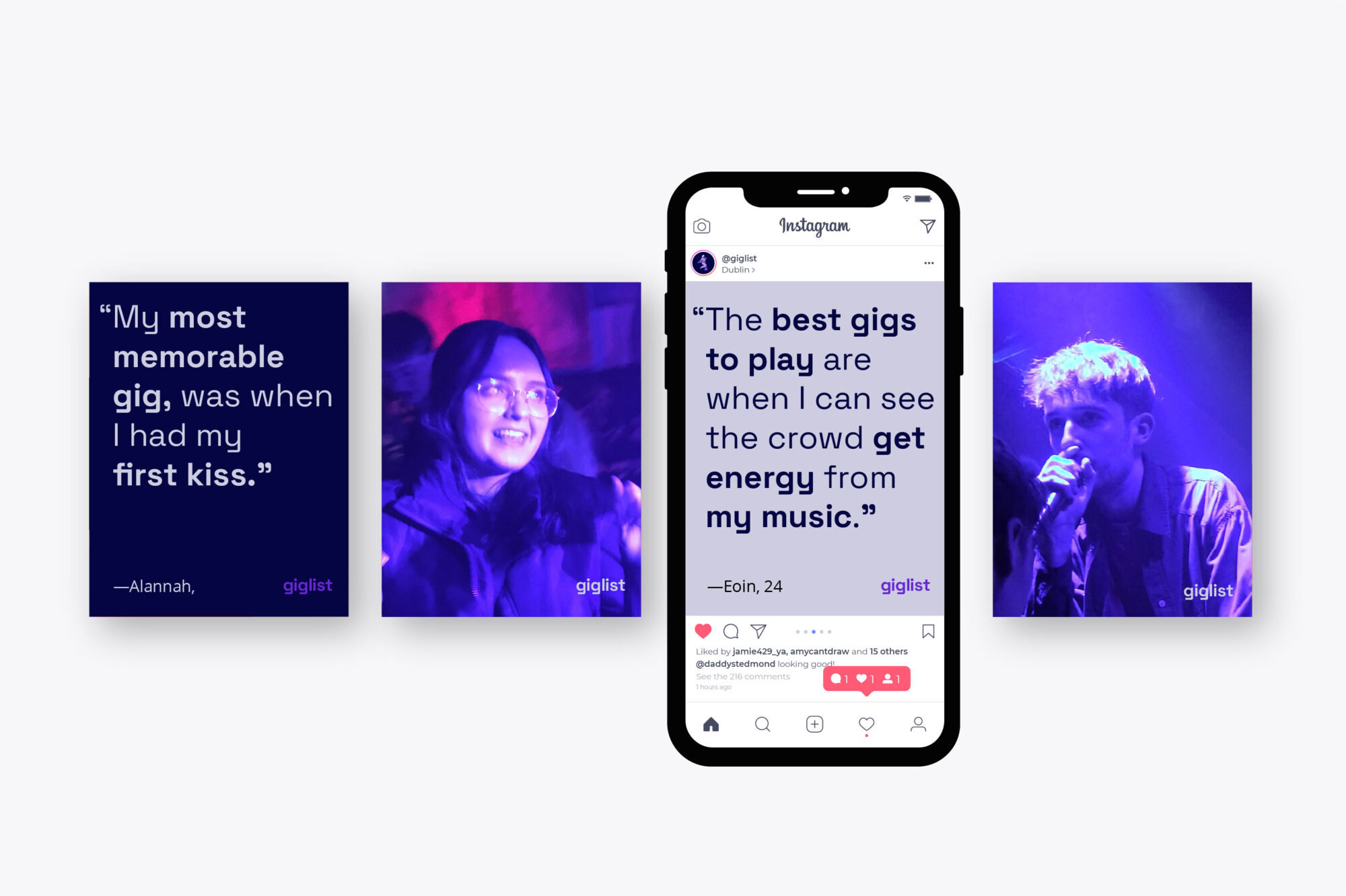 The brand copywriting also focuses on the aspects that are unique to small live music events. This app is promoted on the artist’s social media pages as well as at all live shows associated with gig list to increase the users of the platform.