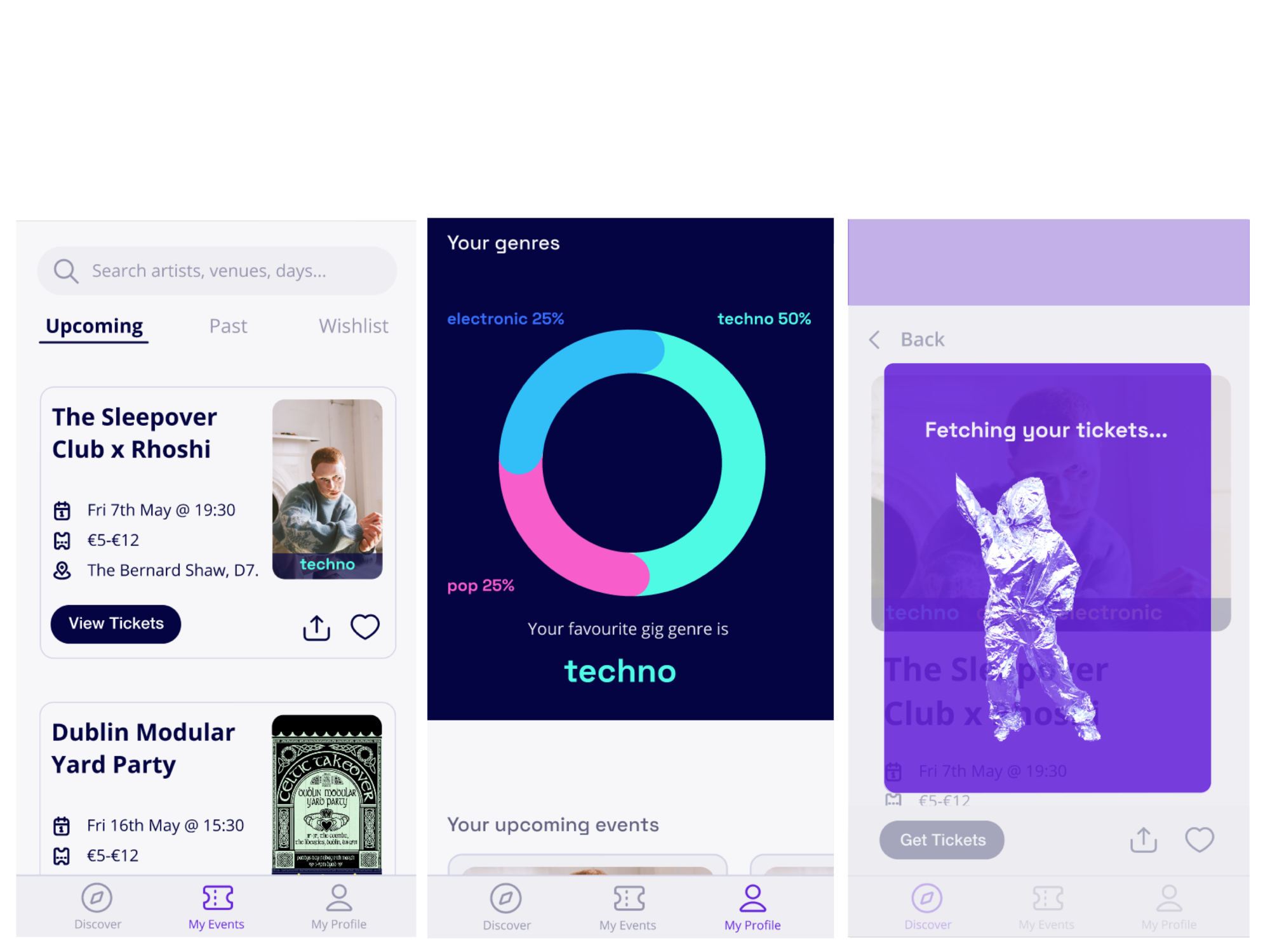 It does this by promoting these artist’s live shows on a digital repository that is easy to navigate and has a fun and eye-catching visual identity. By promoting small gigs it creates greater accessibility for the apps target audience who are 18-30 year olds. By bringing these gigs to this audience giglist helps build communities around music and creates support networks for the artists. Basically, it's a groupie generator for emerging artists, and fun event engine for audiences.