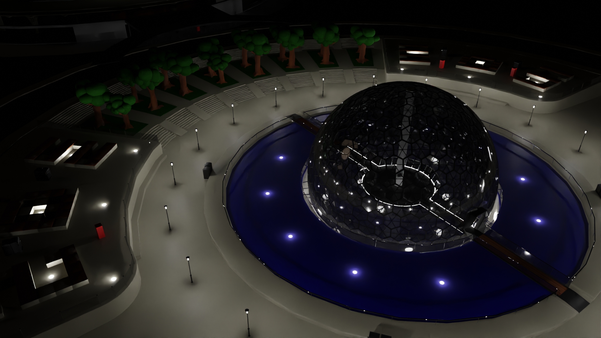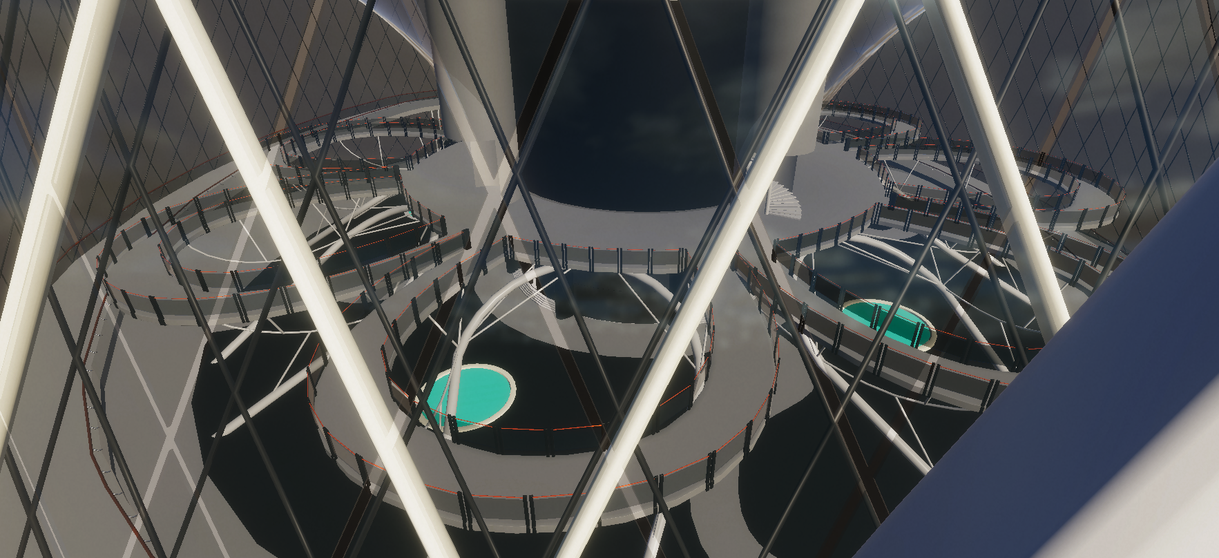 I will be making a real time presentation rendering of a proof of concept Vertical Garden that is self sustainable, multifunctional and reduces both carbon footprint and consumption of available space along with appropriate size and dimensions mirrored closely to our world. The goal is to present this to a handful of architects and investors interested in possibly designing such a building in the future as discussions behind population and climate have become frequent. However a massive compromise needed to be taken in creating such a complicated structure, originally set to have twelve primary sectors with a collection of floors, The overall gardens interior had to be reduced to merely 3, Upon my decision, I went about designing the public conservatory, the Aquaponics Maintenance Floor and the opening entrance/foyer including an outside courtyard to give off a sense of scale to the average pedestrian.