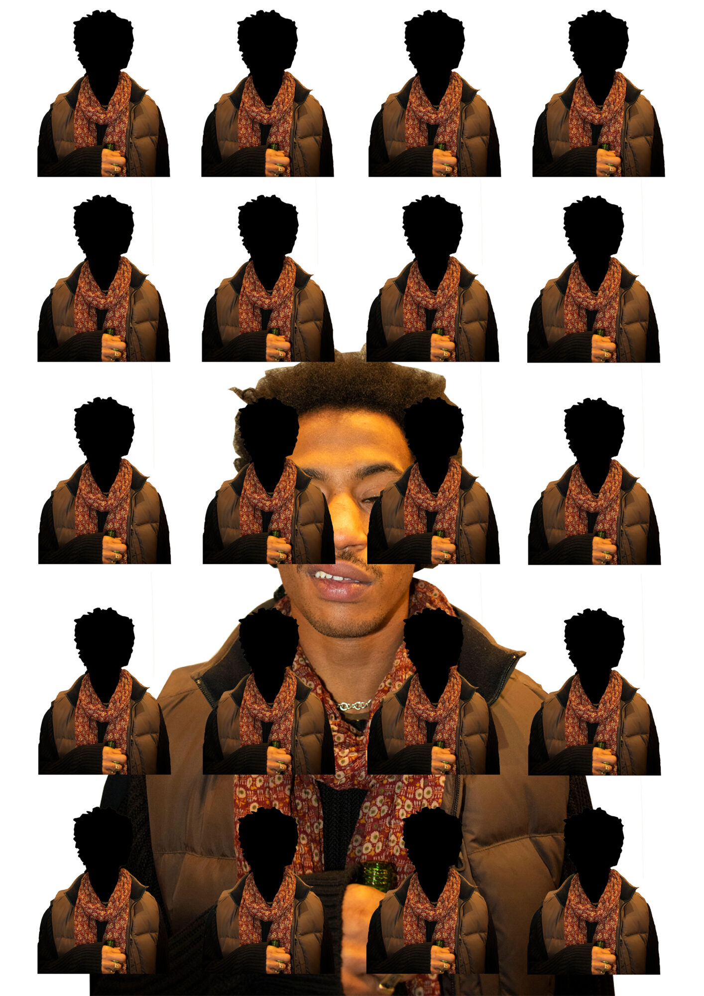 Through the use of mixed media and photoshop manipulation Bolger creates new spaces within his portraits. Finding that straight portraiture was no longer satisfying him, he began to explore ways to morph and elevate his images using cues from his love of hip-hop music and culture, fashion and film. The resultant images are playful manifestations of his influences and the close understanding he has of his subjects.