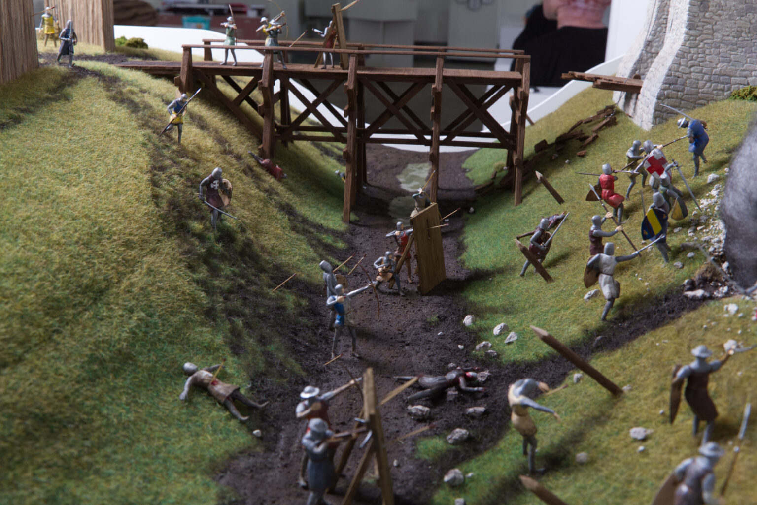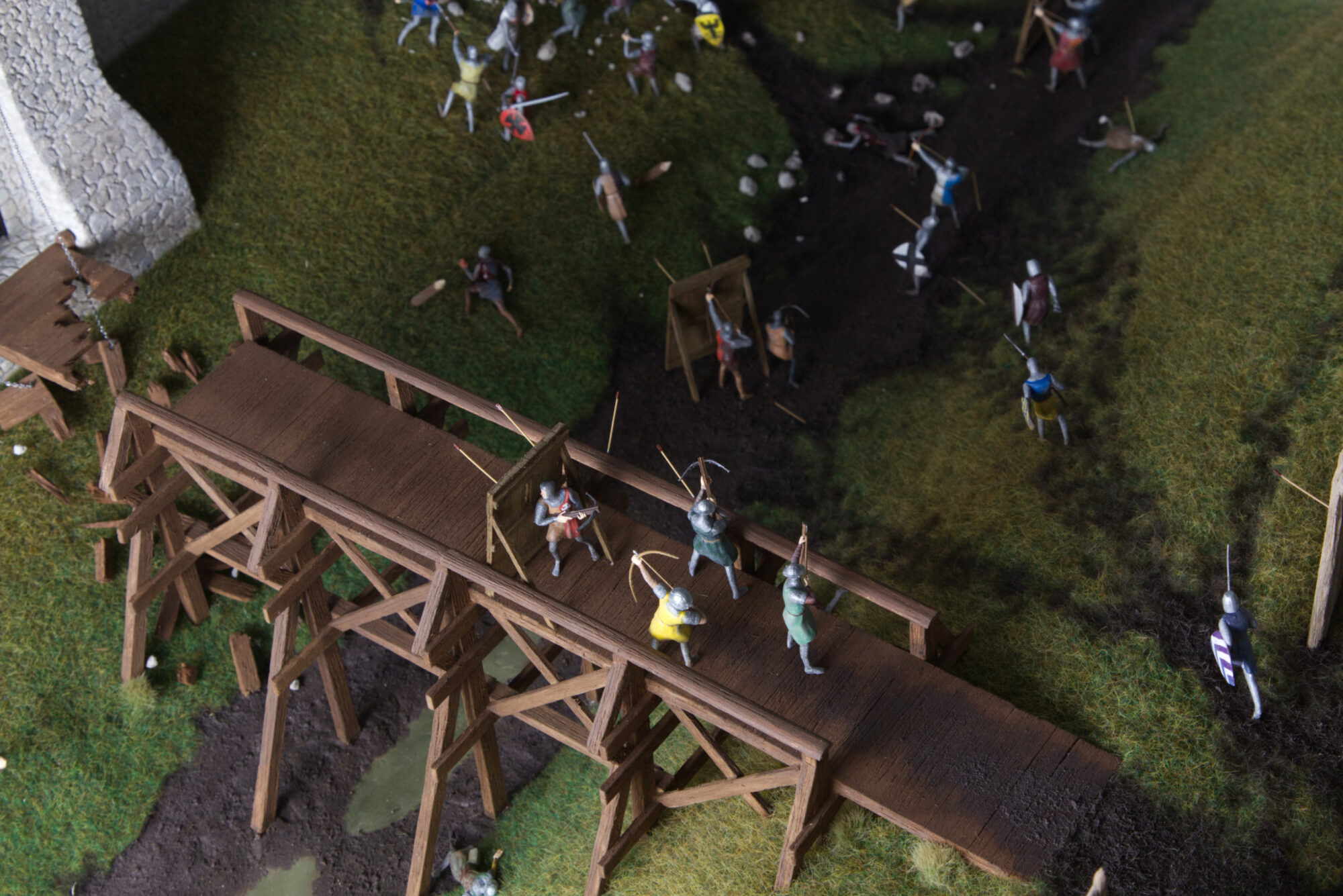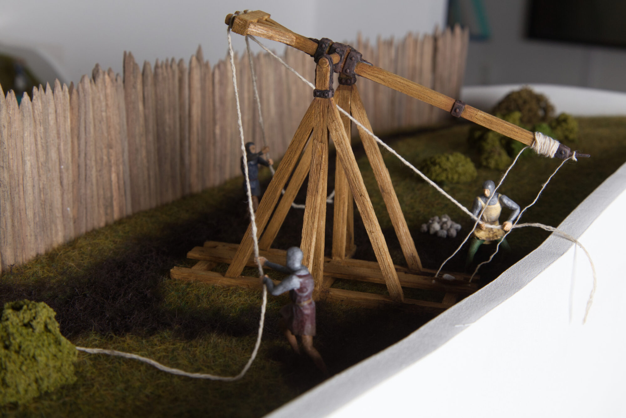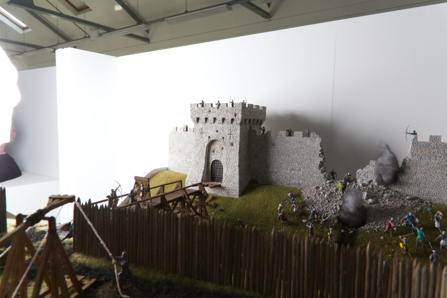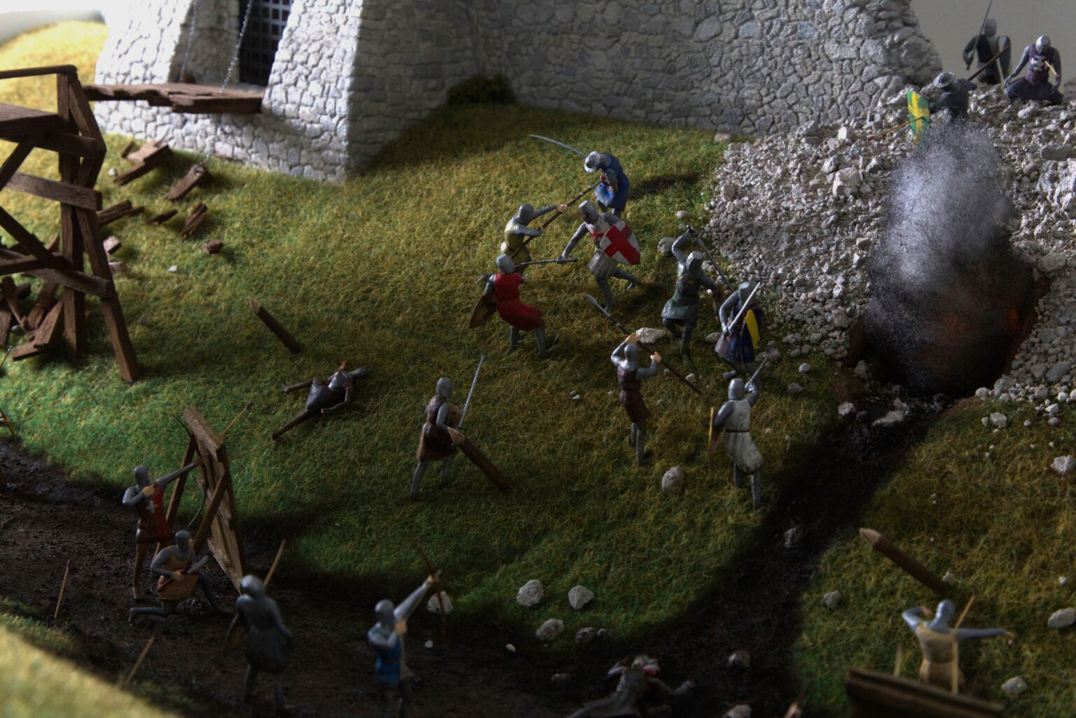 My project is a Diorama depicting the siege of Rochester 1215 CE. It is historically accurate and is intended to interest people into the methods and aesthetics of an early 13th century medieval siege. It is also meant to captivate viewers with the dynamic action within the diorama. It is a meter by meter in length and width and comes apart in three sections for transporting. The castle parts are made up of blue foam and all slotted together during fabrication, but are all glued now. The three sections of the base are also made of blue foam. Everything was plastered and then painted over and detailed. I digitally made the soldiers and 3D printed them. I also made use of LED lights for smoke and fire. I wanted to do a piece that incorporates much of what I learned from the course and also one that would expose me to more new things. I hope this may lead to the historic museum modelmaking business or just history in general in some way.