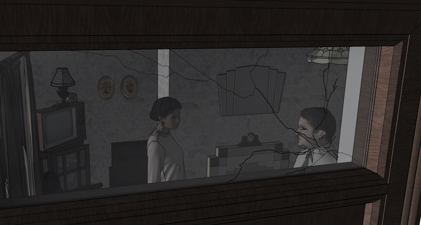 For her major project Ellen designed the set for Tom Murphy's 'A Whistle in the Dark' as if it were a film adaptation of the original play. For her minor project she designed the set for a production of 'The Tempest' by William Shakespeare if it were to be shown in the Abbey Theatre.