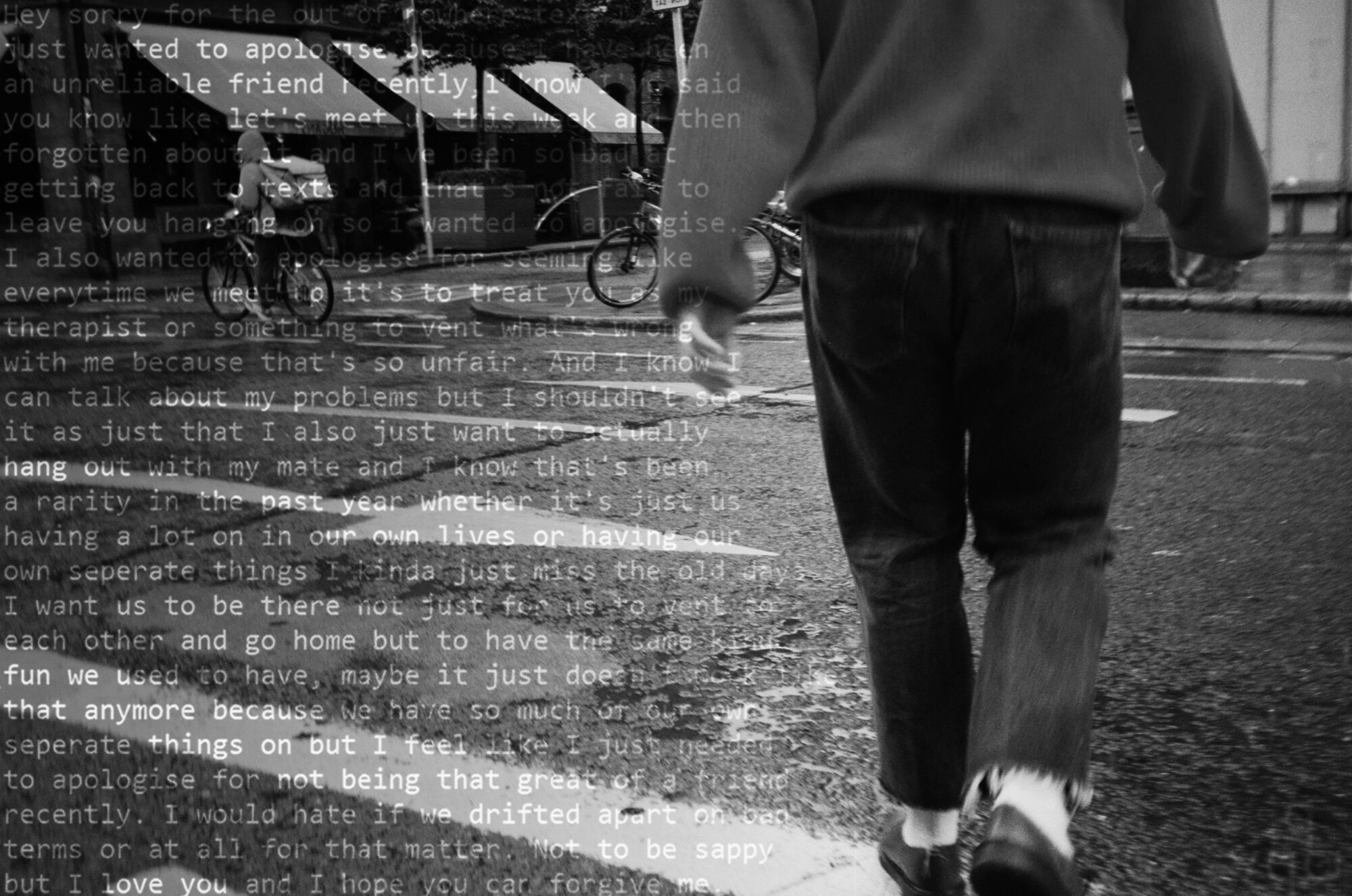 Kenna believes that the texts and letters we write to each other are some of the purest and most honest pieces of ourselves that we have- we all just want to be heard by those we regard as closest to us and it is this desire which Kenna hopes to communicate, as what we all hope is that nothing is left unsaid.