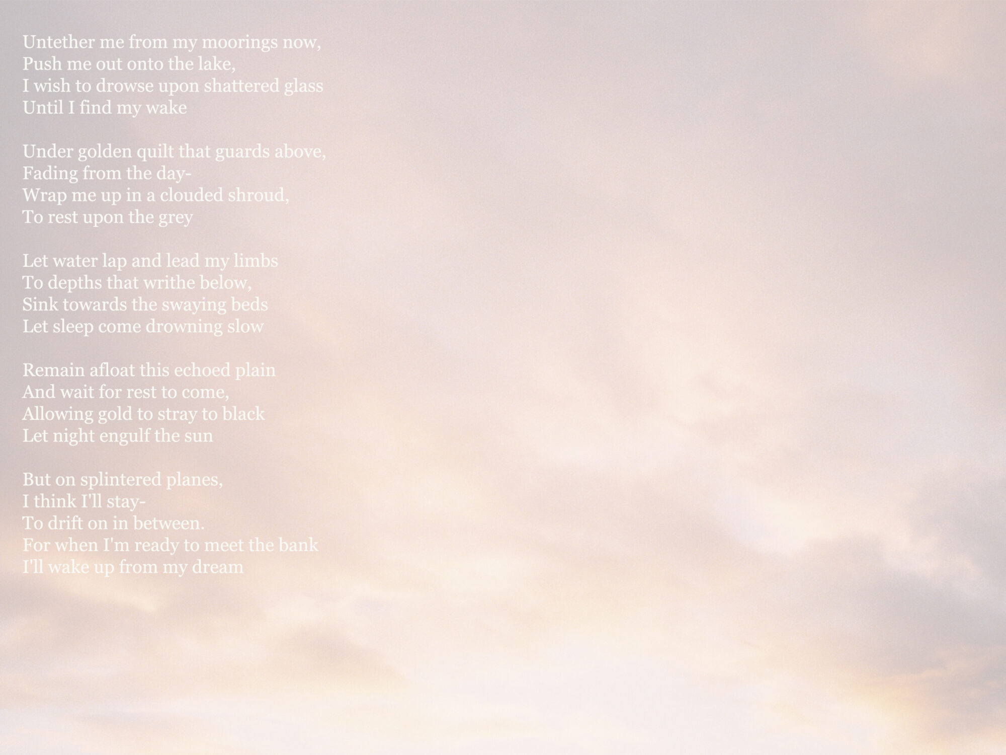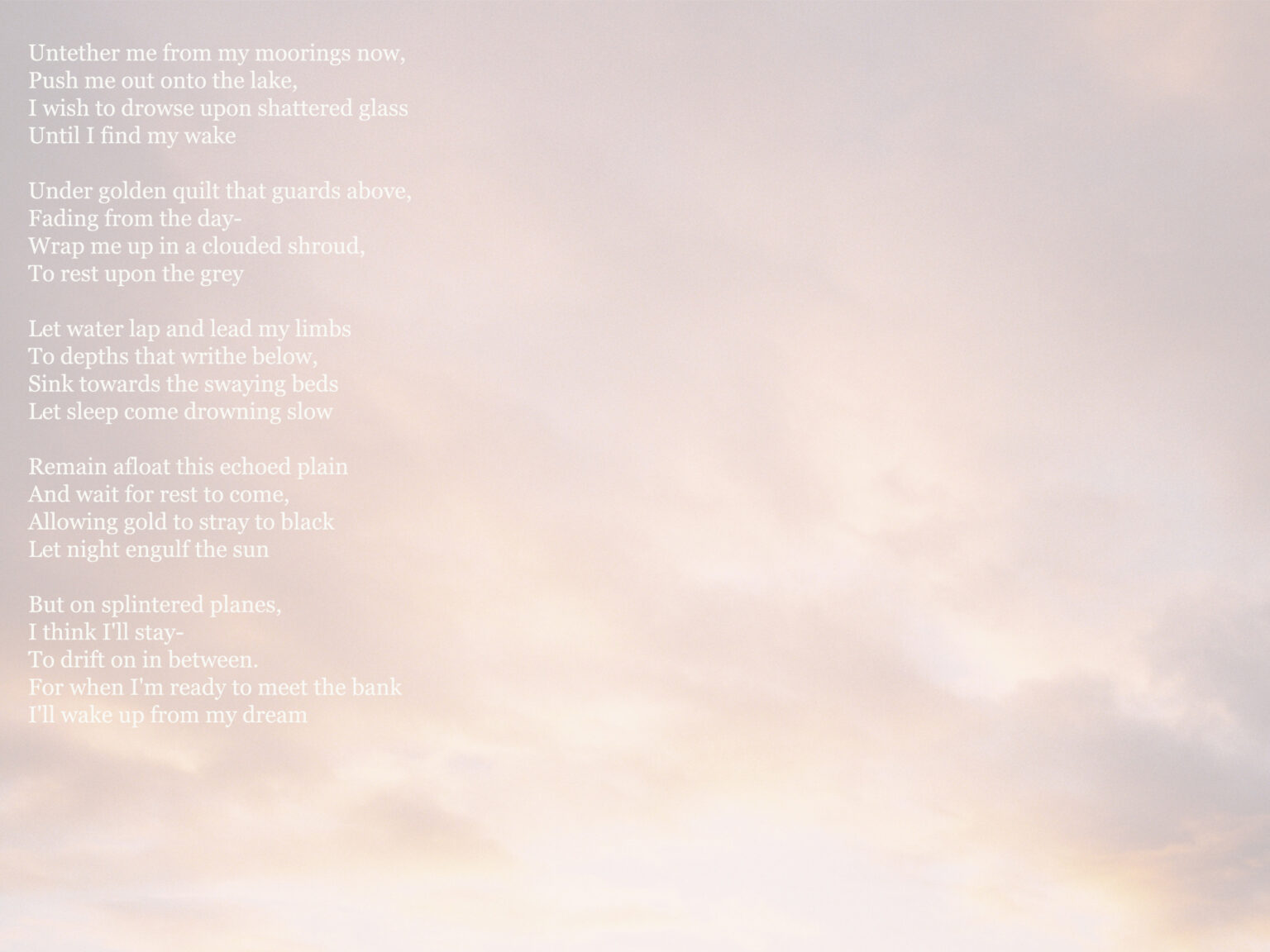 Dublin based writer and photographer, Eva Kenna has been pursuing the craft of storytelling since she was young. Dedicated to the union of written word and image, her work features poetry that encapsulates varying themes such as love, loss, and grief which are supported by impactful photographs taken all over the world. Hoping to pursue a career in both photography and writing, Eva plans to continue her work after college in varying locations in order to tell as many stories as possible.