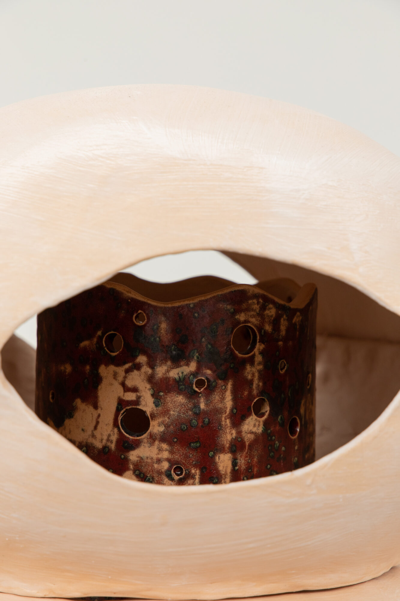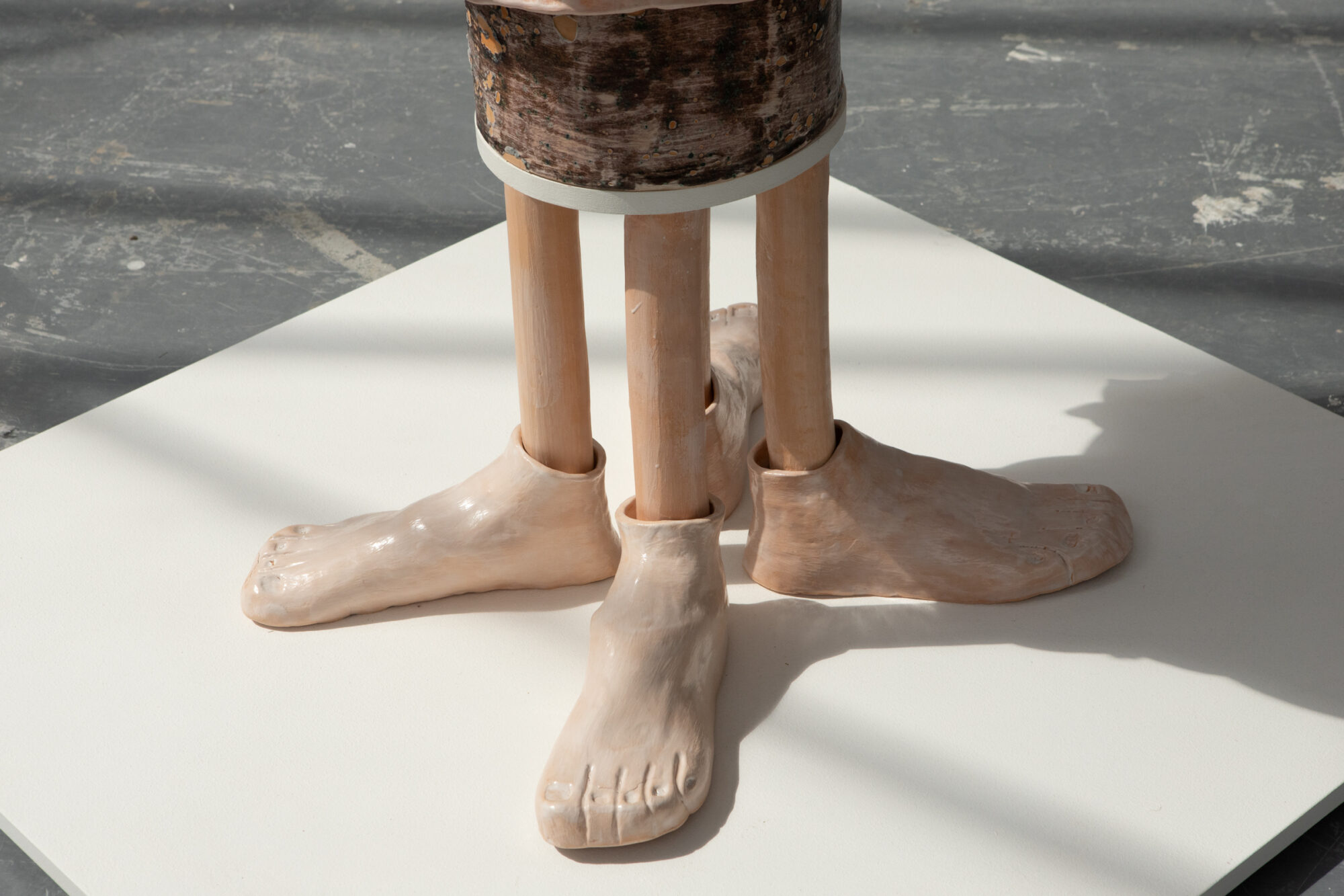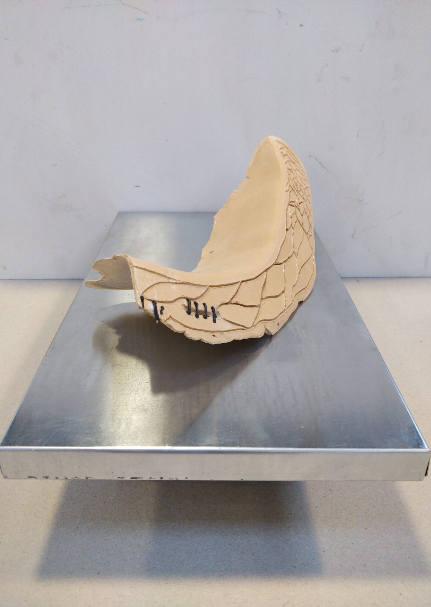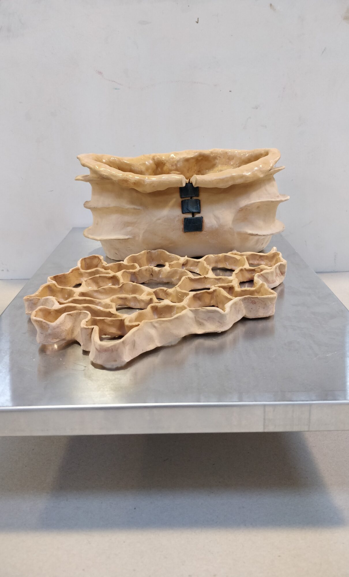 Jill Clinch is a Scottish artist who has previously worked as an emergency nurse and labour ward midwife. She’s specifically interested in the human physiological processes of homeostasis (maintenance of life) and putrefaction (decomposition in death) following trauma from disease, accident, or surgery. She interprets these themes through clay and metal. Her practice includes hand building ceramic sculptures and adding found or bought objects. She is currently researching the global practices of organ donation, the science of bioprinting and tissue regeneration and its future in creating artificial organs. She exhibited in In the Making: Milk at Pallas Projects in 2023.
