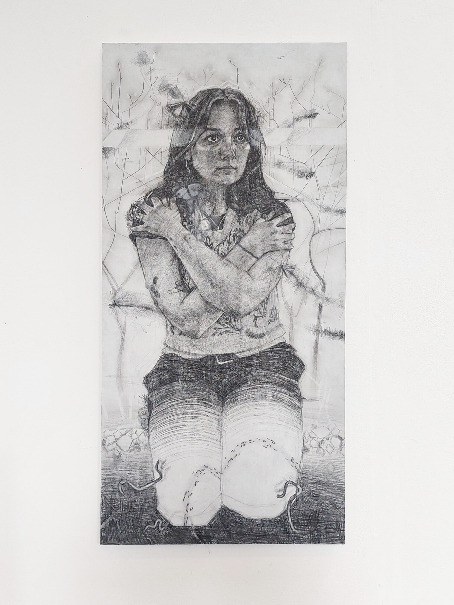 Hetty Lawlor is an artist highly influenced by her upbringing in the countryside of Co. Mayo with a focus on portraiture alongside native Irish wildlife. She works primarily in coloured pencil for detail and acrylic paint for larger blocks of colour. Her work explores the complexities between human ‘owned’ space and the natural world. She is interested in the tension between these positions. She has exhibited in the RHA (2019) Compton Verney, Birmingham (2022), Pallas Projects (2023), The Customs House Westport (2018) and the Clifden Arts Festival (2022). She also appeared as an artist on Sky Portrait Artist of The Year.