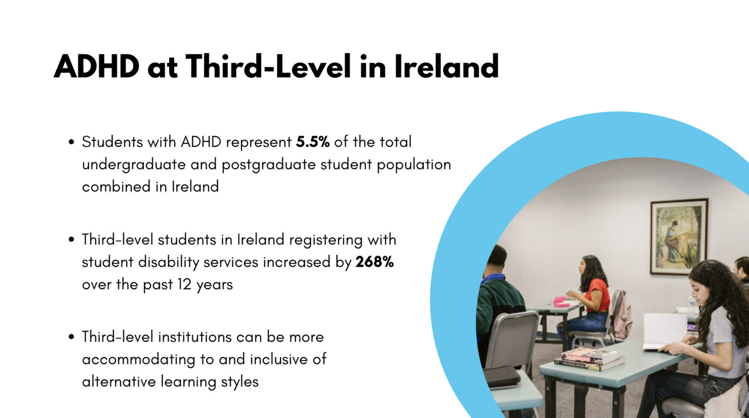 The purpose of this study was to explore and describe the lived experience of third-level students with ADHD, with academic reading, and also to understand how customisation of an academic reading tool impacts the user experience. With the number of third-level students in Ireland registering with student disability services increasing by 268% over the past twelve years, there was a need for conducting further research, particularly in the context of third-level students with ADHD, to strengthen existing but limited evidence.