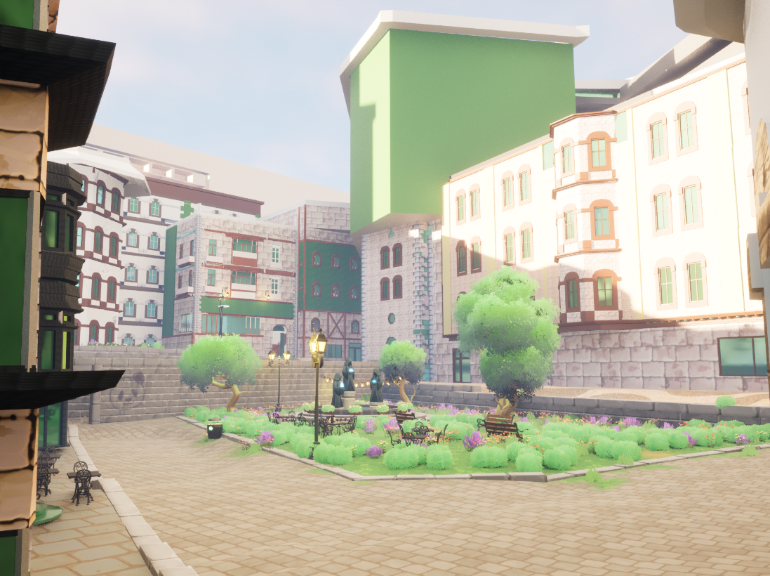 After stumbling across a genre of climate fiction called Solarpunk during previous worldbuilding project, I instantly fell in love with the lush cities and close-nit communities. After further researching the genre I found that there are very few videogames that use Solarpunk as a theme, and none of which are a 3D exploration experience. I thought I could try my hand at creating the experience that I sought for. To be able to walk around a gorgeous, technologically AND environmentally advanced cityscape is something I aim to create with this project and continue to work on and pursue after the fact. I used Substance Designers powerful node-based texture generation to make the majority of textures used. I used Blender to create assets and Unreal to render it all and turn into a playable level.